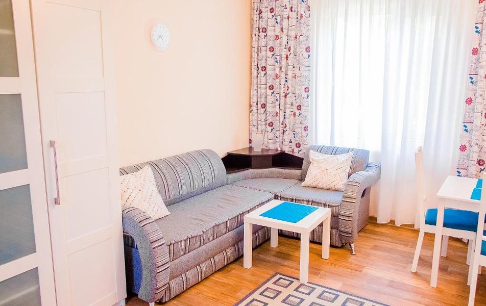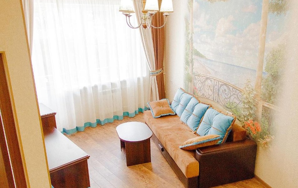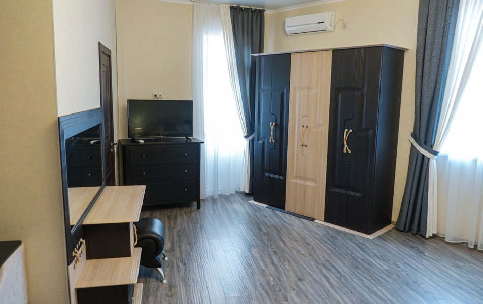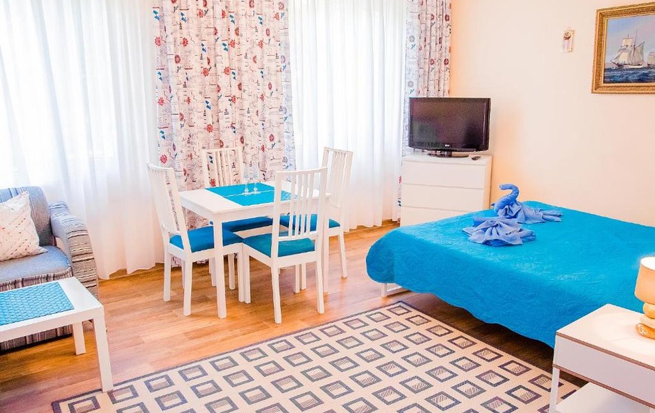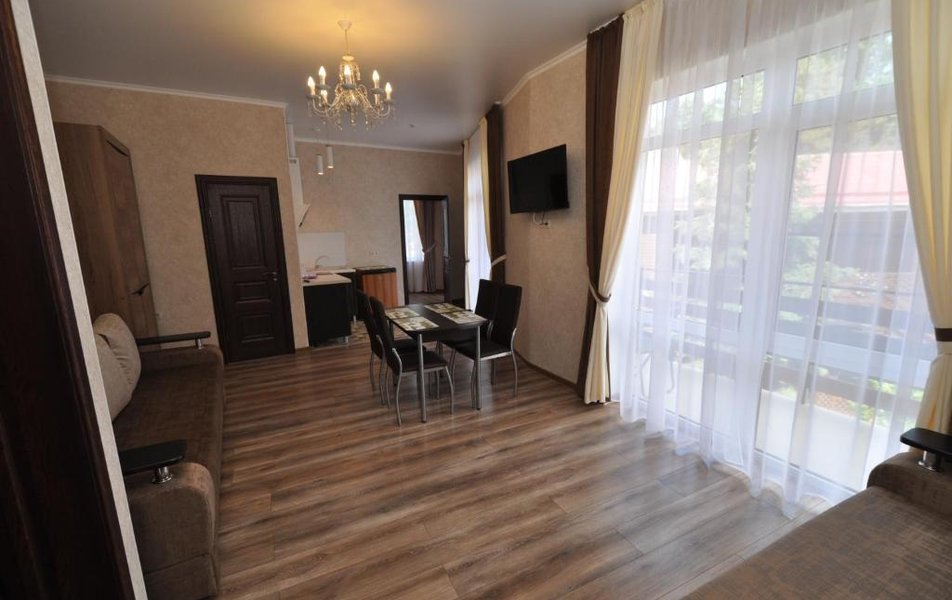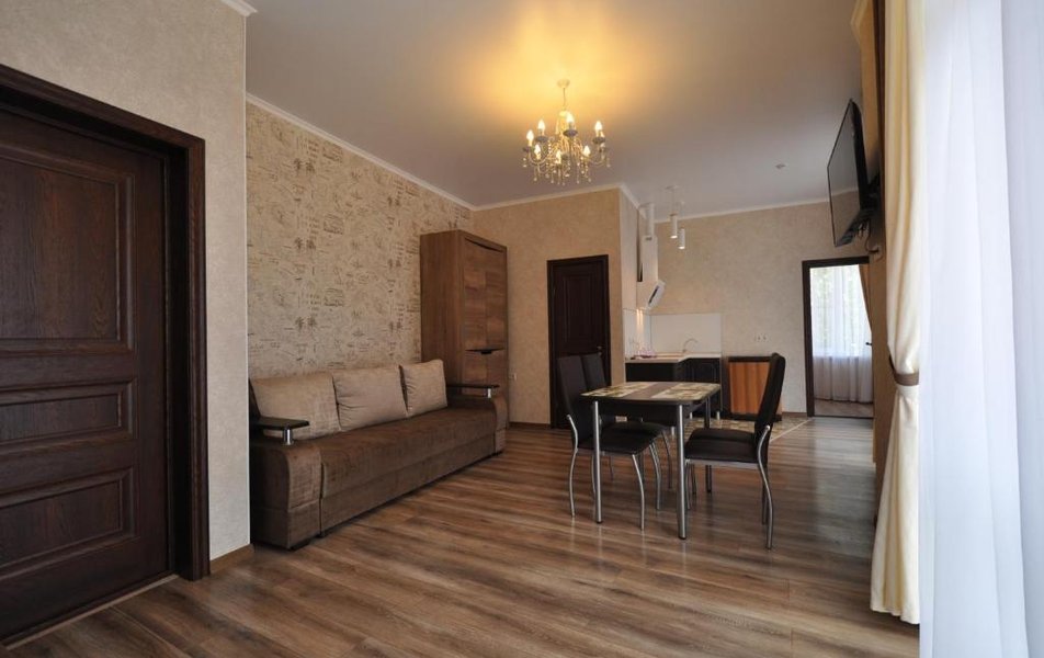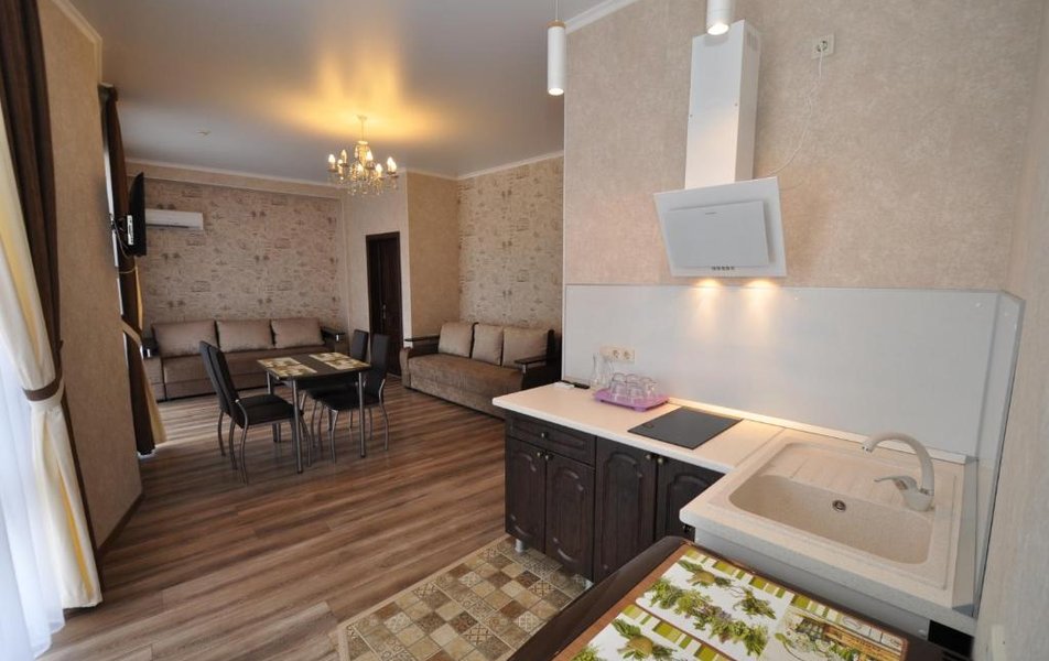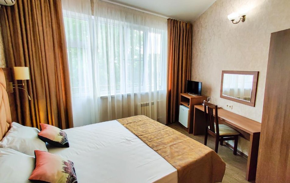 Одыхали с коллегой с 7 по 11 сентября. При въезде пришлось пробираться в Морские рифы через другой отель (они находятся на одной территории), потому что звонка у двери не было, а пользоваться мобильным в роуминге не хотелось. (висит табличка с номером телефона отеля у входа). Территория отеля действительно вся в зелени, есть беседки, столики, мини бар, из которого вечером доносится музыка и где можно посидеть,отдохнуть. Нас поселили в основном корпусе, на 2-м этаже. Сам корпус видно, что старый, кресла, диванчики и прочее-изношено, чувствуется тот самый запах старины) Но сами номера в хорошем состоянии, в них сделан милый косметический ремонт, есть кондиционер, хоть и маленький, но плоский телевизор с достаточным количеством каналов, так что перед сном есть что посмотреть! Wi-fi работает только в холле на 1-м этаже и еле еле на втором, в номере не работает. Заказывали завтраки,обеды и ужины здесь же за отдельную плату, еда домашняя, комплексные обеды: первое,второе, салат и компот. Мне все нравилось, где еще поешь обычную столовско-больничную еду) Единственное,что первые дни не было кофе, а без него утром тяжко. Заправляет этим пансионатом некая блондинистая дама, которая лицемерно улыбается тебе, всячески пытается сделать все, чтобы ты поверил, что она поможет, исправит и тд. Потом она отварачивается, уходит и забывает про тебя напрочь! Это чудо- хозяйка пансионата, который достался ей от родителей. По ее вине про нас трижды забывали, на нас не сделали обед в день приезда, забыли про нас и на следующий день (не подала она списки оплаченных обедов на кухню), и в день отъезда-пришлось рано завтракать, она тоже про нас забыла и кухне пришлось на скорую руку сооружать нам хоть какую-то еду! За что огромное спасибо девочкам кухни! Ваша хозяйка, она же администратор, она же бухгалтер-отвратительно себя ведет! Нужно уметь передавать информацию по смене, иначе сервис работать не будет! Забыла про еду, про трансфер на вокзал, про нож, который мы просили в дорогу...Зато, когда накосячила в первый день, так к нам подлизывалась, чтобы мы о плохом забыли, что даже туалетную бумагу нам поменяли с обычной "серой" на двухслойную) Мы долго смеялись! А за то, что про наш оплаченный обед забыли в день приезда, моей подруге (у нее был д.р. в этот день) в номер принесли шампанское, дыню и шоколад) Вывод-умеете, когда на вас наорут! Спасибо всему персоналу, кроме самой хозяйки за Вашу работу! Убирали каждый день, меняли полотенца тоже. Сам номер очень маленький, Елена летучая нашла бы кучу косяков по нормам и их не соблюдению, но в целом уютно и жить вполне можно) Маленький санузел, не развернешься, вода из душа стекает на пол, из-за этого вечная сырость в ванной комнате. Есть выход на балкончик, там стоит стол и 2 стула. Курить нельзя, но если соседи не жалуются (балкон длинный общий), то курите на здоровье!) Единственный минус данного балкона-не убирают паутину, а потому вечером мы сначала с диким страхом, а потом с привычкой и смехом бегали от местных огромных свисающих над столиком и дверью пауков. До пляжа реально идти 5 минут через песочные барханы. За нашим отелем строится что-то новое, из-за этого недостроя многие жалуются в отзывах на отсутствие приятного вида из номеров. Выход к морю не самый лучший, идти приходится вдоль забора, по узкой тропинке,а потом за отелем, где лежат стройма