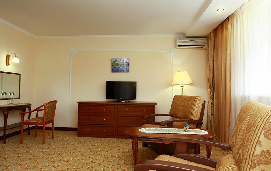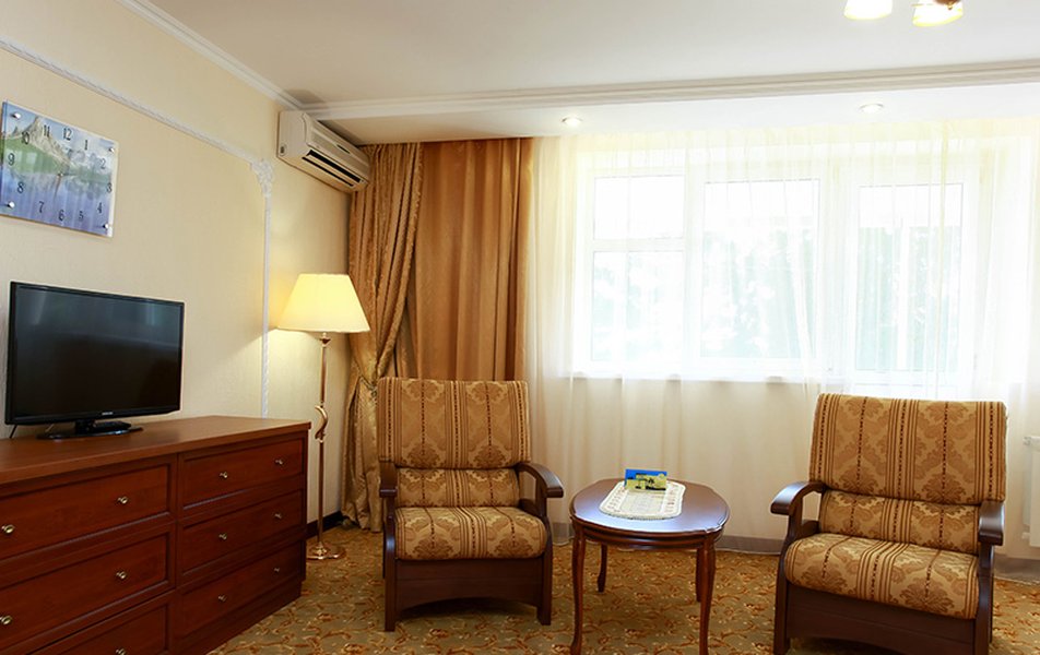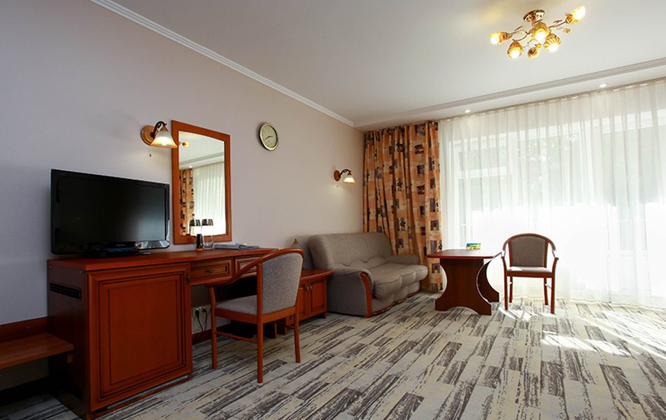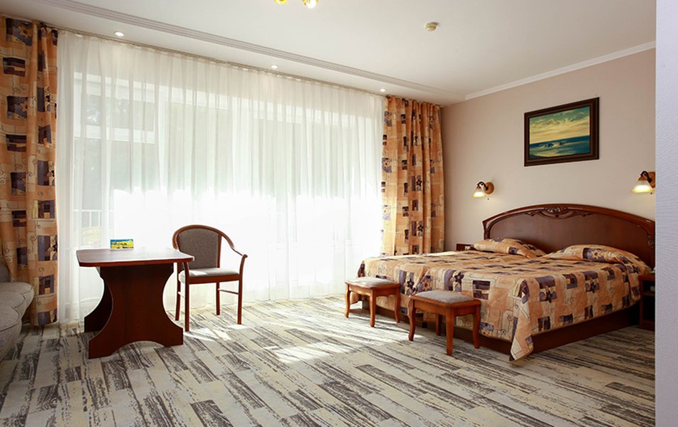 Были в сентябре 2024. Хорошие процедуры (ванны, грязи, как заявлено), великолепный спа-комплекс с разными видами бань, бассейном-джакузи, спортзал. Отличный бассейн под открытым небом. Не очень большая территория санатория, зато большая зона парковки. Есть детская площадка, теннисный корт. Вкусные кислородные коктейли и полезные чаи. Отдельные чаепития по вечерам со сладушками. Хороший ресторан - шведский стол, питание неплохое для санатория. Но есть несколько блюд, фрукты, салаты. Раньше было спиртное, сейчас уже нет. Номера отличные, большие. В номерах есть все, включая халаты, чашки, стаканы, немного посуды, даже электронные часы-будильник. Пляж - автобус-паровоз ездит по расписанию, однако, от себя добавлю, что пляж того не стоит, море ужасное. Есть кинозал, каждый день новый фильм. Анимация... ну не знаю, на любителя. Каждый день вывешивается расписание развлечений. В число бесплатных возможностей входит чай-кофе-напитки в барах, спиртное и мороженое - за доп.плату. Есть экскурсионная стойка и фотосессии. Вода в кулерах на этаже: холодная и горячая. Бювет с минеральной водой. Есть боулинг и бильярд. Детская дискотека. И очень замечательная зам.ген.директора по мед.части, внимательная и позитивная Гребенникова Татьяна Гарибальдиевна. Из минусов: на массаж и к косметологу (платно) попасть невозможно в связи с отсутствием свободных мест. В общем, однозначно, отличный современный санаторий!