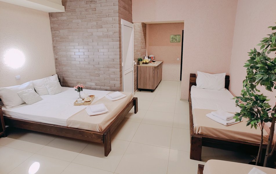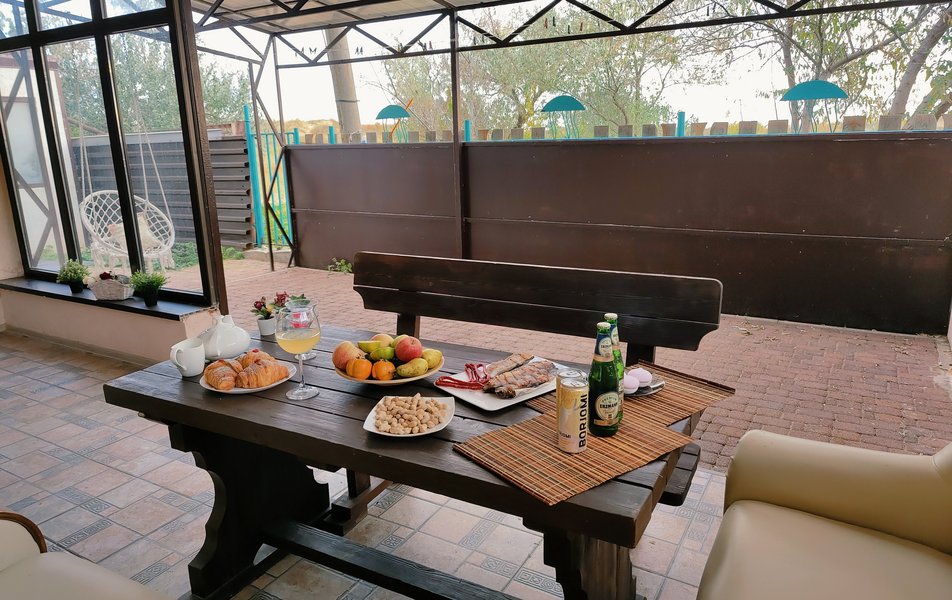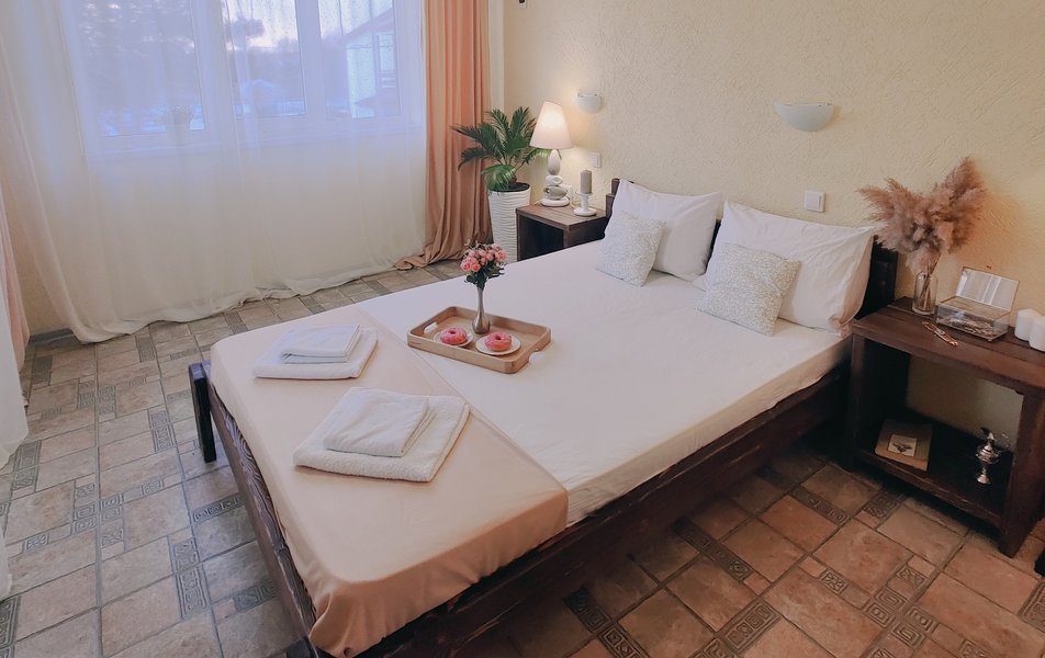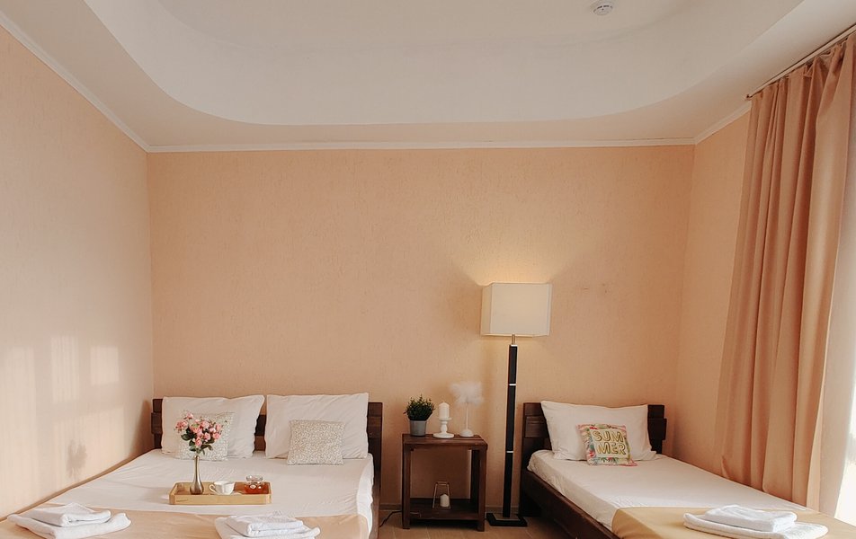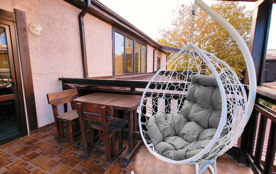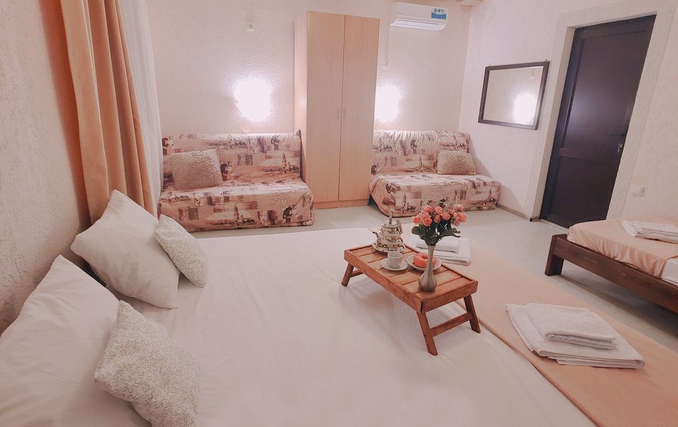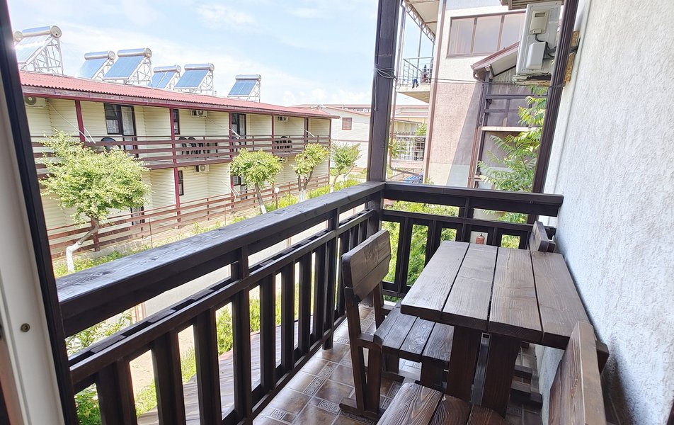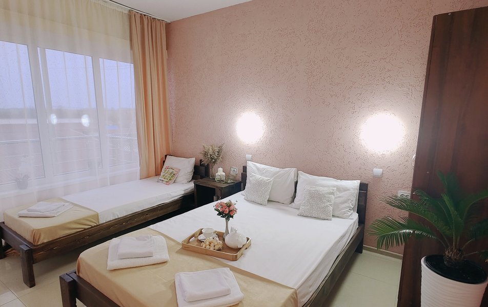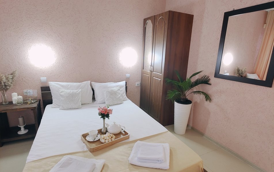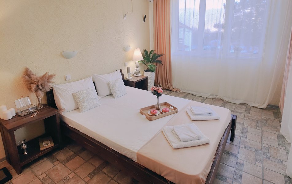 Друзья посоветовали съездить в Благовещенка - очень хвалили и нам захотелось. Бронировали 2х комнатные апартаменты с кухней. Когда приехали - нас встретил приятный молодой человек, всё объяснил, где что находится. Сам номер был чистый, было постельное бельё и полотенца. Но самый топ номера - это шикарная терраса, на которой есть мебель для отдыха - стол, стулья и качеля-кокон. С этой террасы вообще не хочется уходить, такие приятные воспоминания, снова туда хочу. Есть бассейн на территории, мангал, столовая, до пляжа вообще пару минут. И вся территория отеля очень красивая, всё так экологично оформлено, настоящий летний отдых. Очень рекомендую