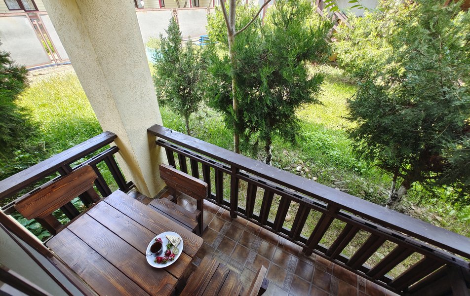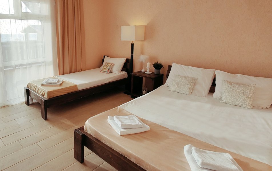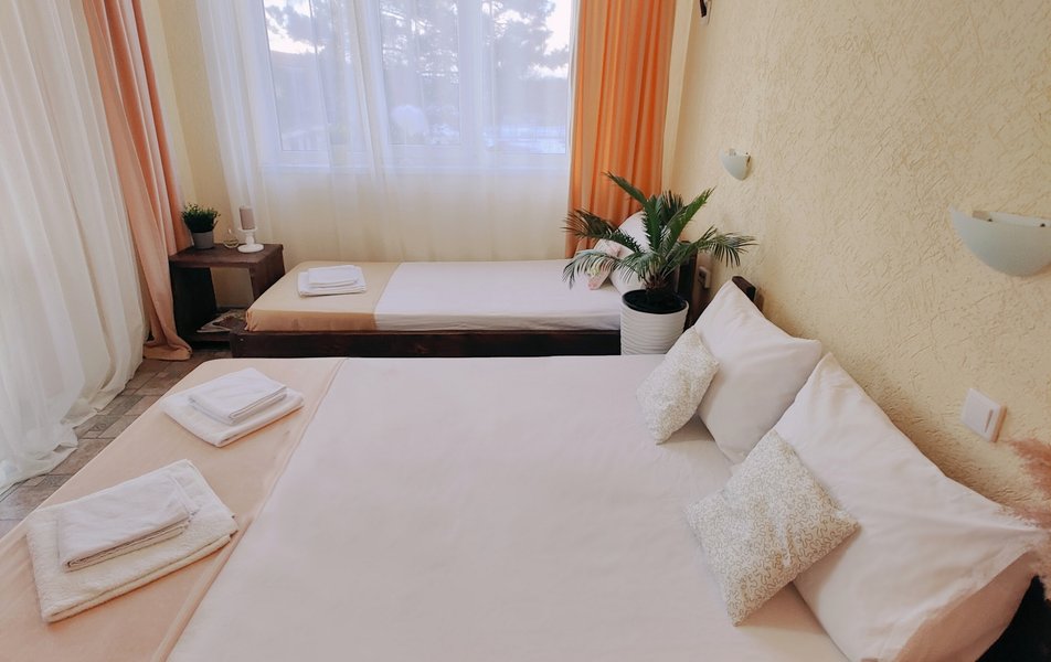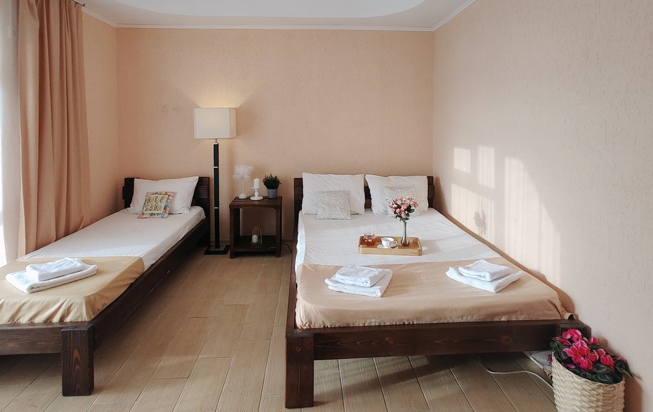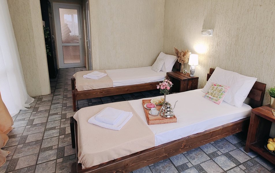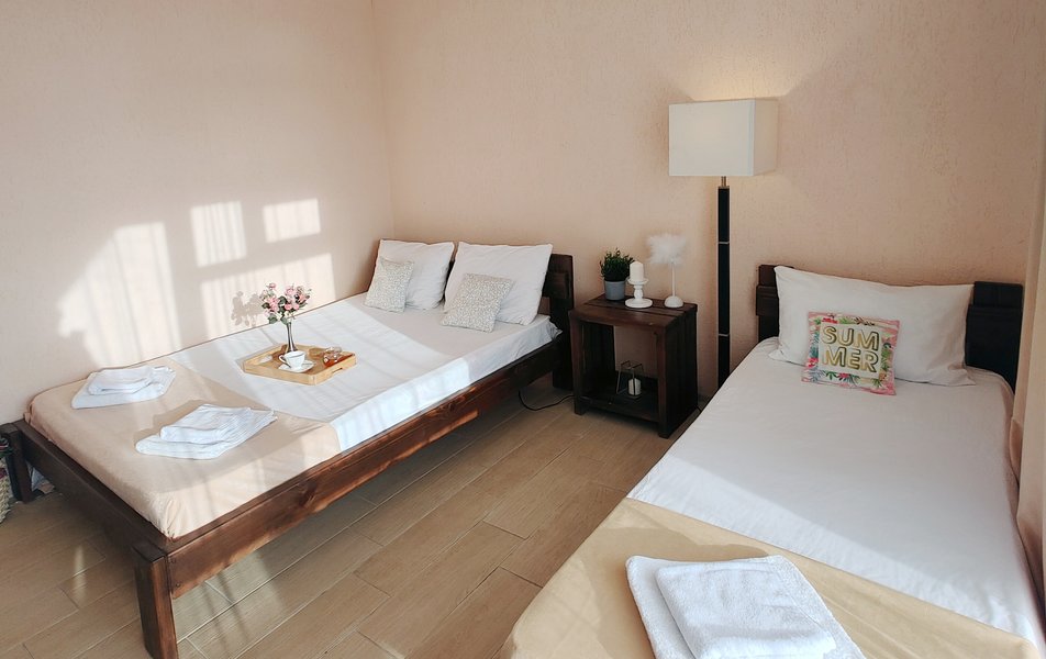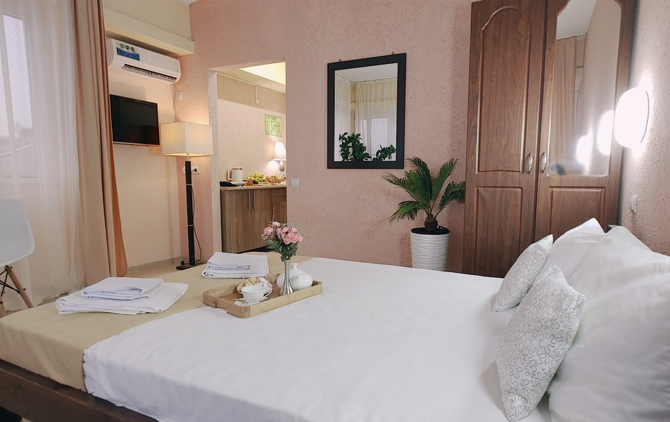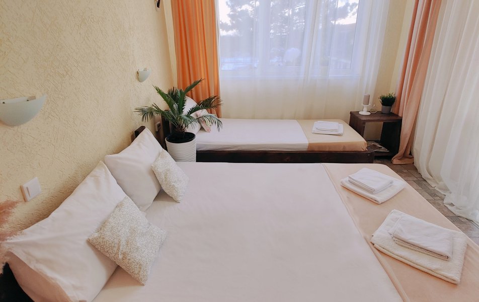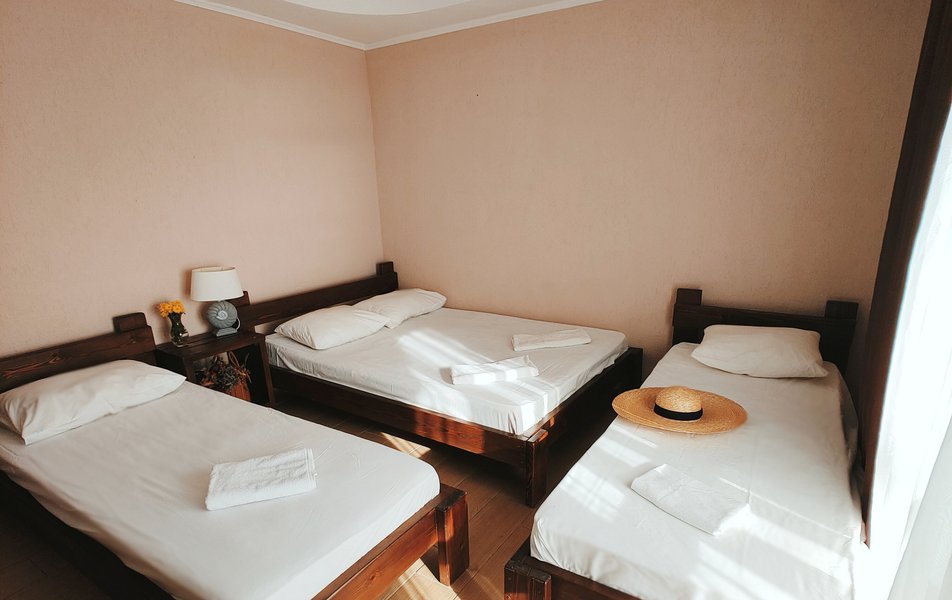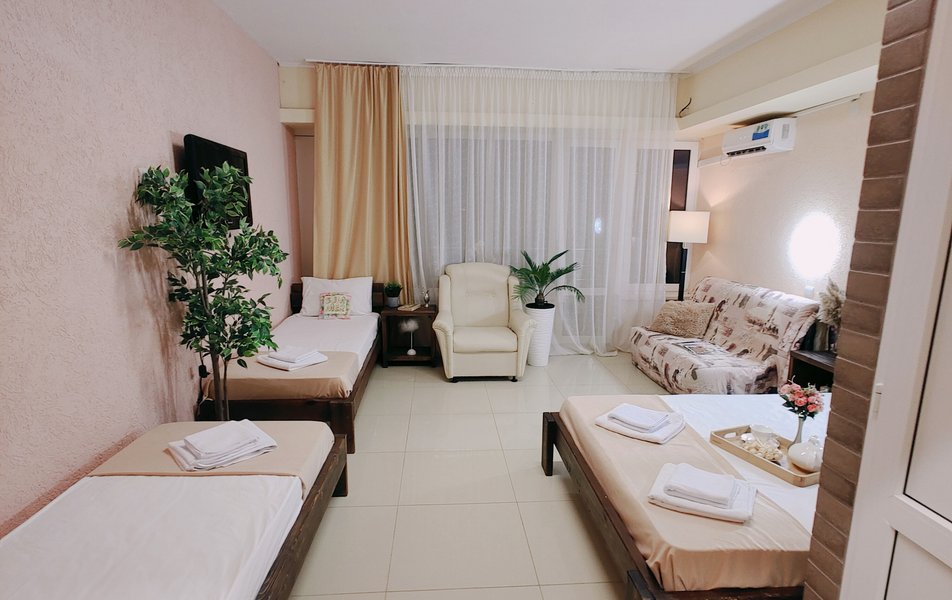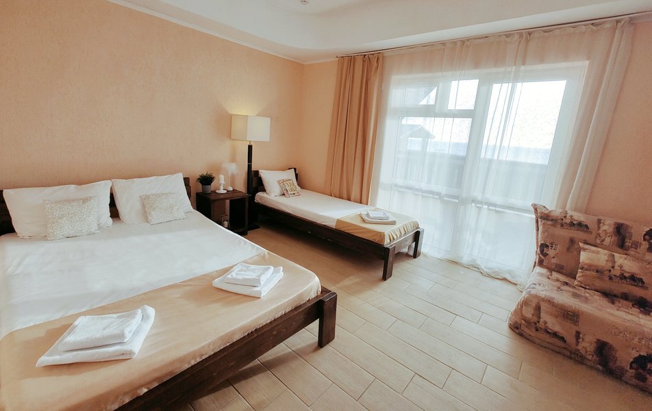 Друзья посоветовали съездить в Благовещенка - очень хвалили и нам захотелось. Бронировали 2х комнатные апартаменты с кухней. Когда приехали - нас встретил приятный молодой человек, всё объяснил, где что находится. Сам номер был чистый, было постельное бельё и полотенца. Но самый топ номера - это шикарная терраса, на которой есть мебель для отдыха - стол, стулья и качеля-кокон. С этой террасы вообще не хочется уходить, такие приятные воспоминания, снова туда хочу. Есть бассейн на территории, мангал, столовая, до пляжа вообще пару минут. И вся территория отеля очень красивая, всё так экологично оформлено, настоящий летний отдых. Очень рекомендую