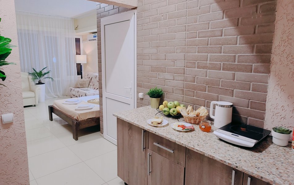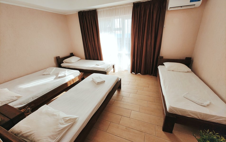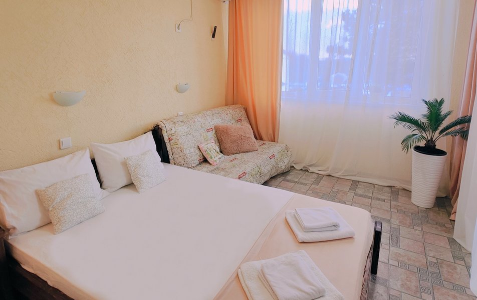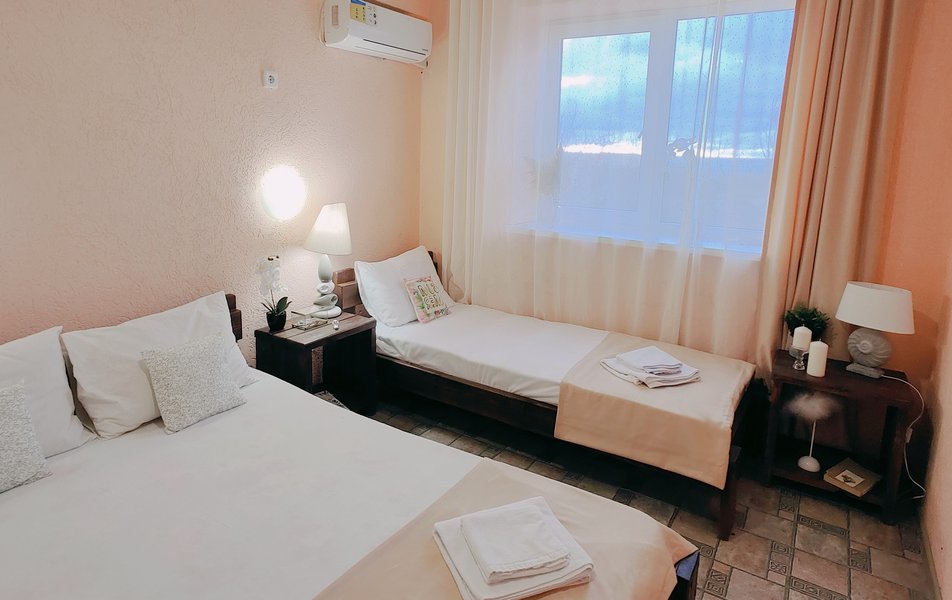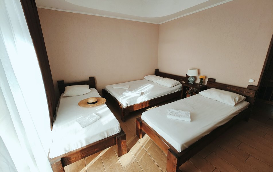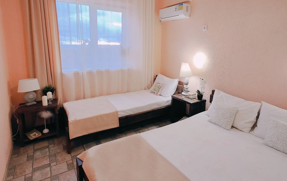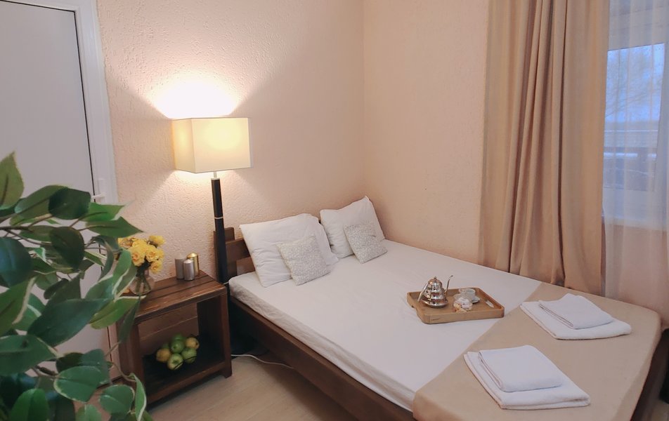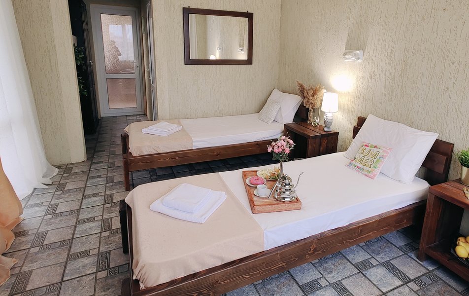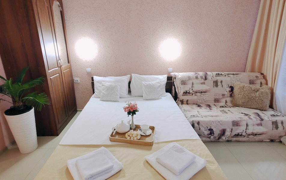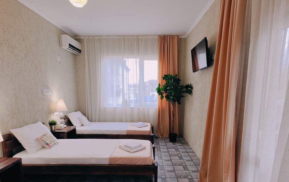 Друзья посоветовали съездить в Благовещенка - очень хвалили и нам захотелось. Бронировали 2х комнатные апартаменты с кухней. Когда приехали - нас встретил приятный молодой человек, всё объяснил, где что находится. Сам номер был чистый, было постельное бельё и полотенца. Но самый топ номера - это шикарная терраса, на которой есть мебель для отдыха - стол, стулья и качеля-кокон. С этой террасы вообще не хочется уходить, такие приятные воспоминания, снова туда хочу. Есть бассейн на территории, мангал, столовая, до пляжа вообще пару минут. И вся территория отеля очень красивая, всё так экологично оформлено, настоящий летний отдых. Очень рекомендую
