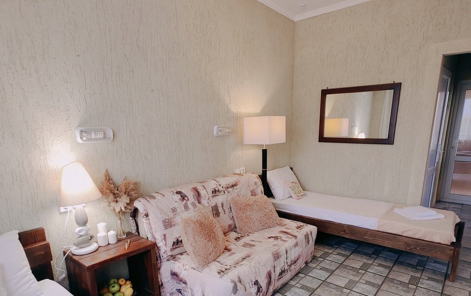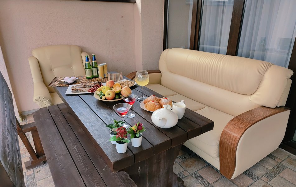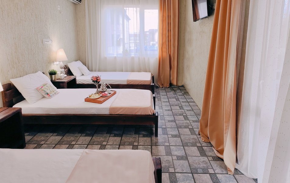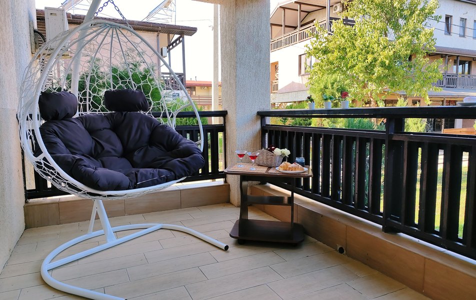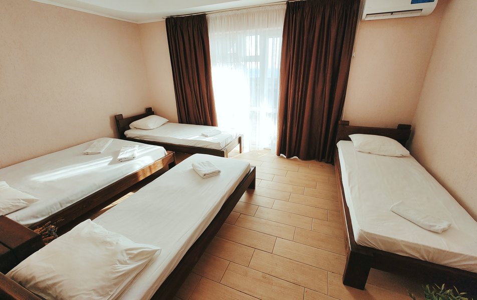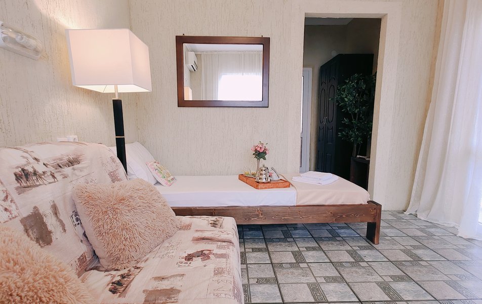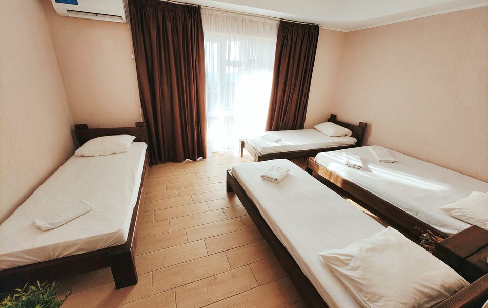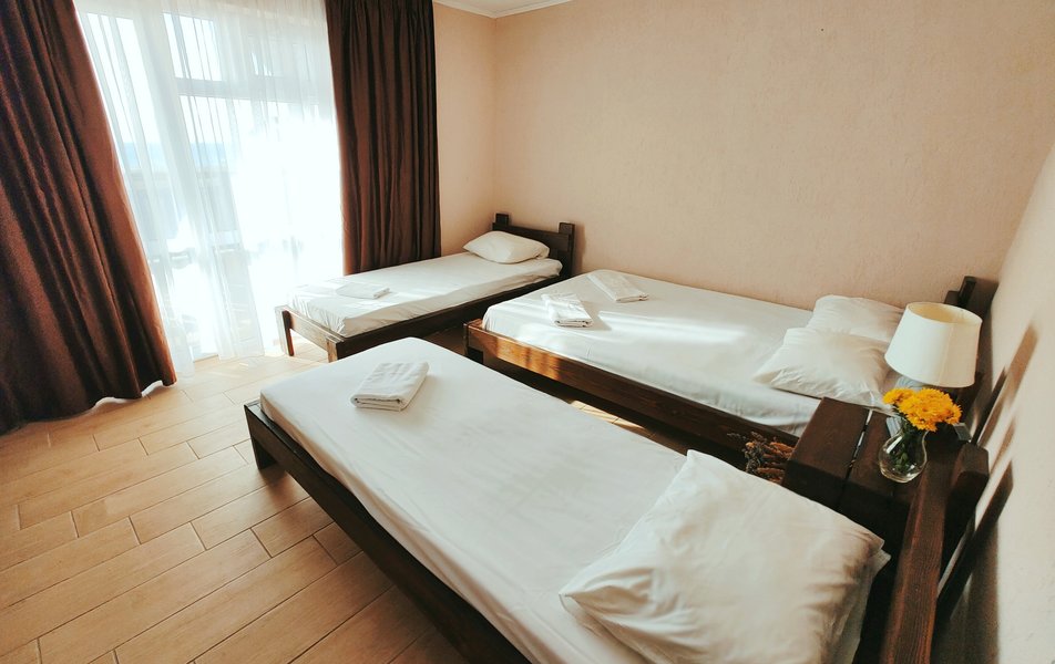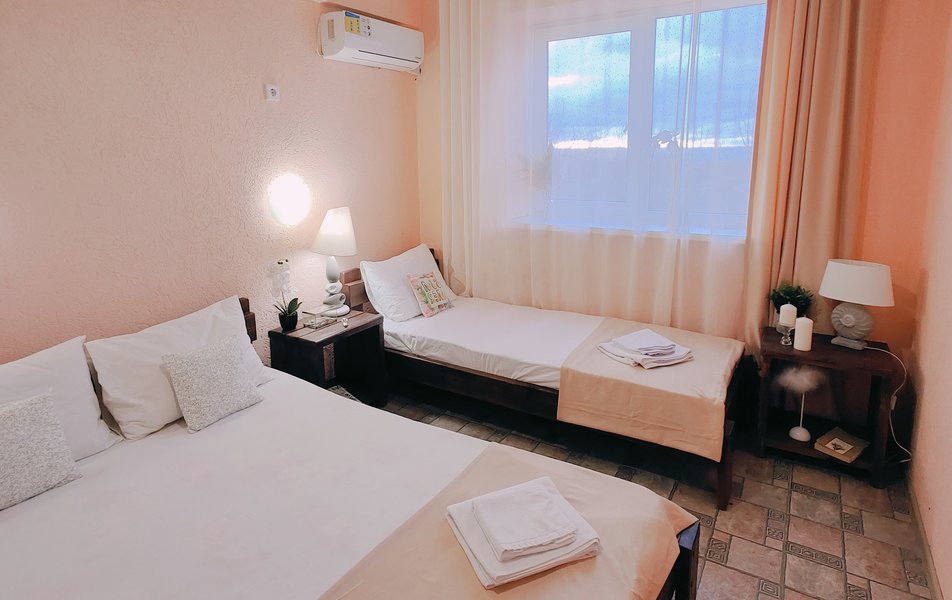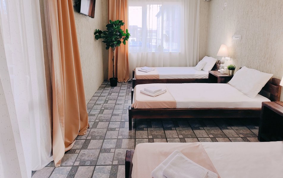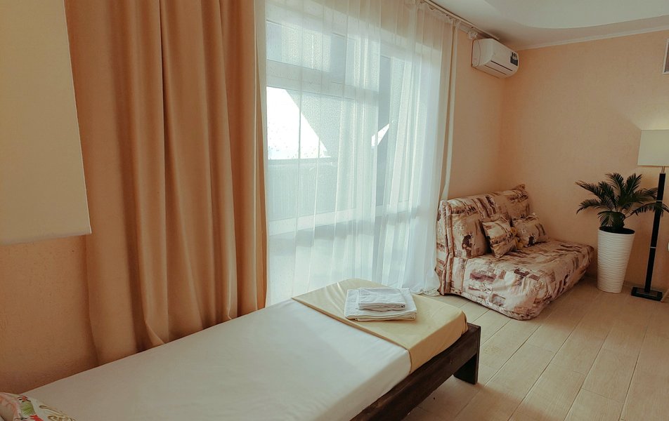 Друзья посоветовали съездить в Благовещенка - очень хвалили и нам захотелось. Бронировали 2х комнатные апартаменты с кухней. Когда приехали - нас встретил приятный молодой человек, всё объяснил, где что находится. Сам номер был чистый, было постельное бельё и полотенца. Но самый топ номера - это шикарная терраса, на которой есть мебель для отдыха - стол, стулья и качеля-кокон. С этой террасы вообще не хочется уходить, такие приятные воспоминания, снова туда хочу. Есть бассейн на территории, мангал, столовая, до пляжа вообще пару минут. И вся территория отеля очень красивая, всё так экологично оформлено, настоящий летний отдых. Очень рекомендую