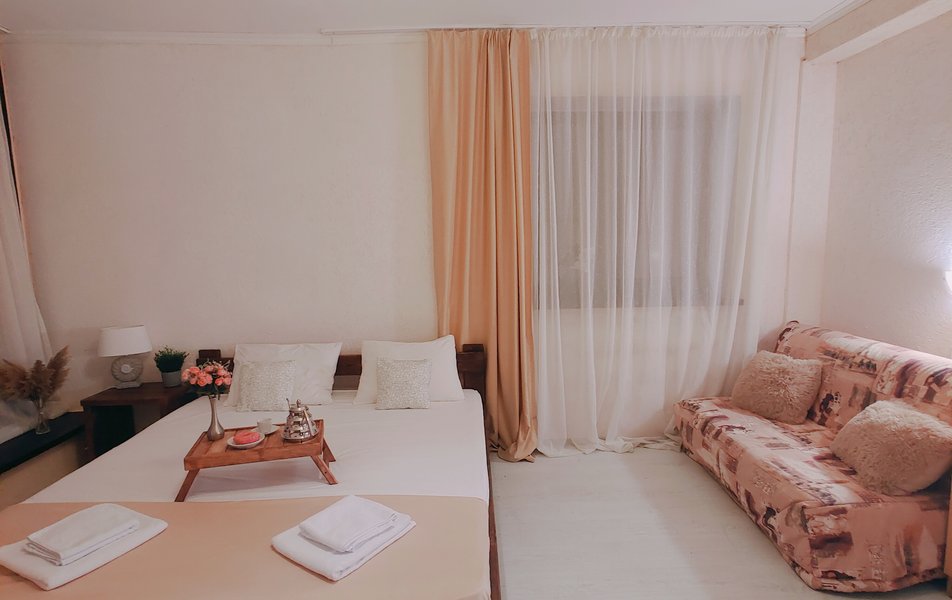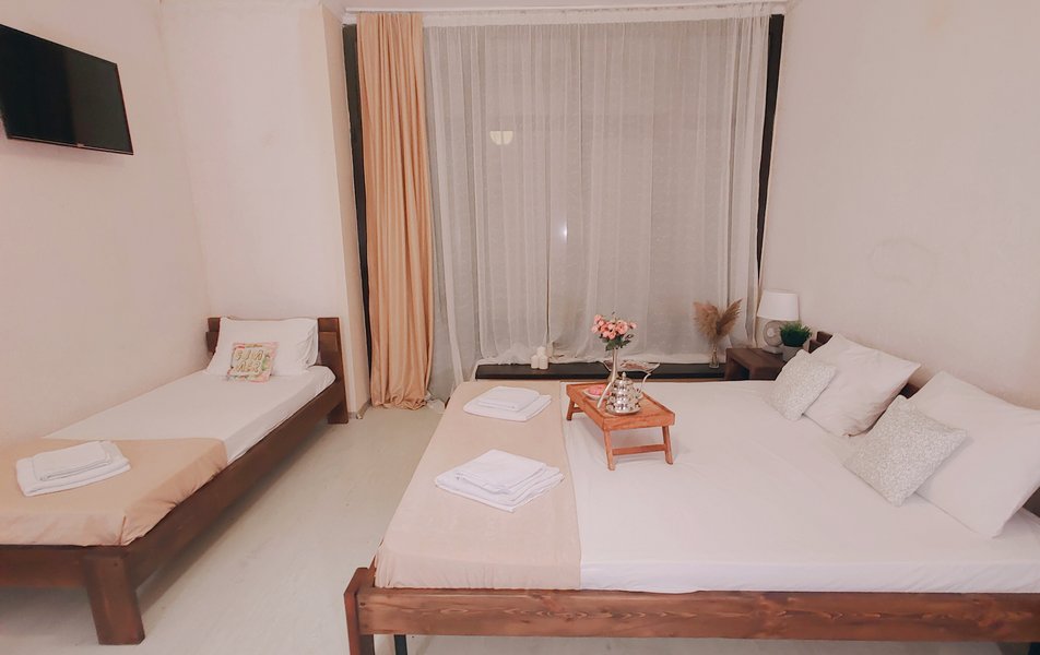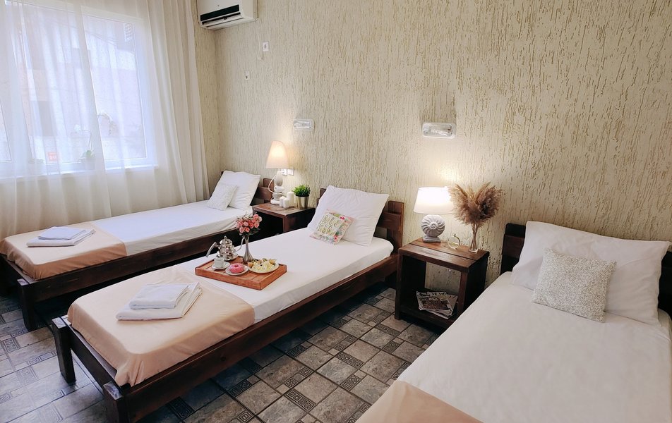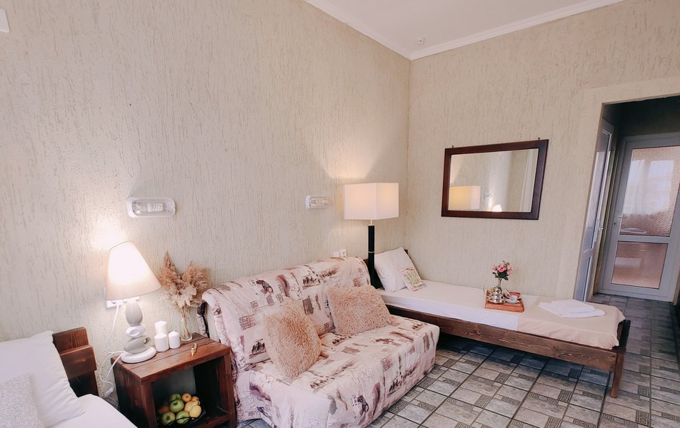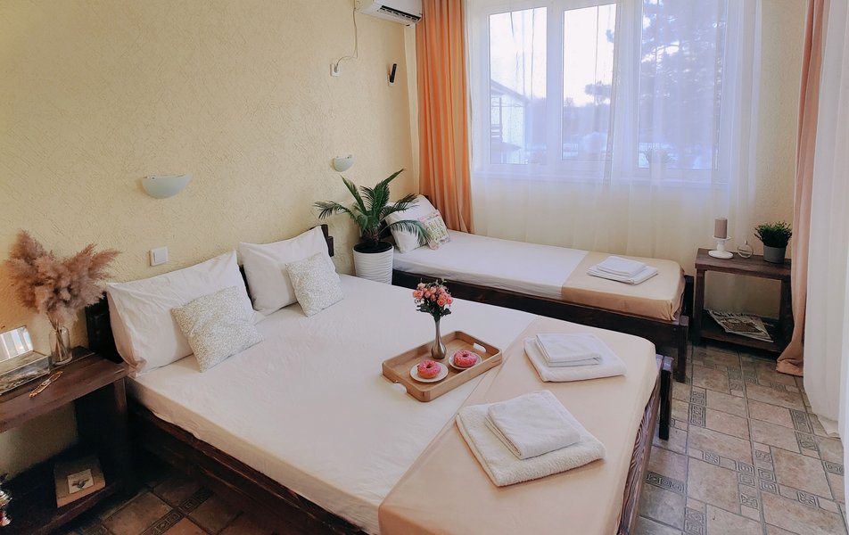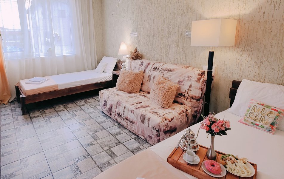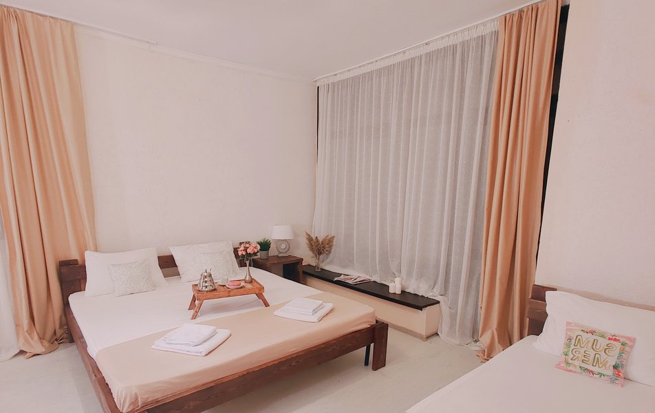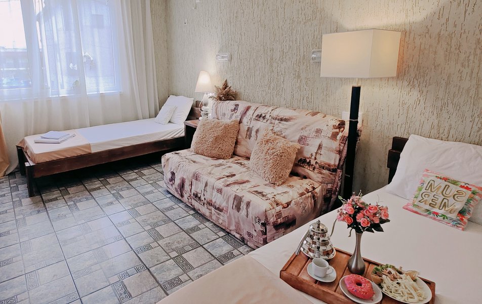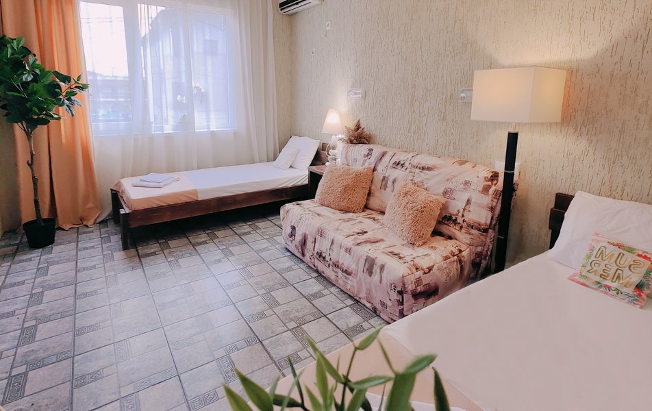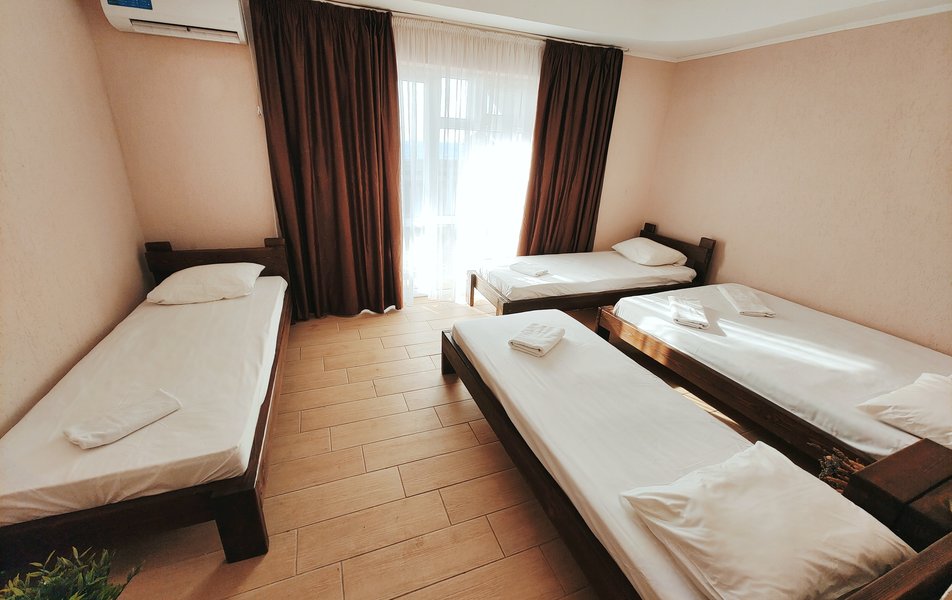 Друзья посоветовали съездить в Благовещенка - очень хвалили и нам захотелось. Бронировали 2х комнатные апартаменты с кухней. Когда приехали - нас встретил приятный молодой человек, всё объяснил, где что находится. Сам номер был чистый, было постельное бельё и полотенца. Но самый топ номера - это шикарная терраса, на которой есть мебель для отдыха - стол, стулья и качеля-кокон. С этой террасы вообще не хочется уходить, такие приятные воспоминания, снова туда хочу. Есть бассейн на территории, мангал, столовая, до пляжа вообще пару минут. И вся территория отеля очень красивая, всё так экологично оформлено, настоящий летний отдых. Очень рекомендую