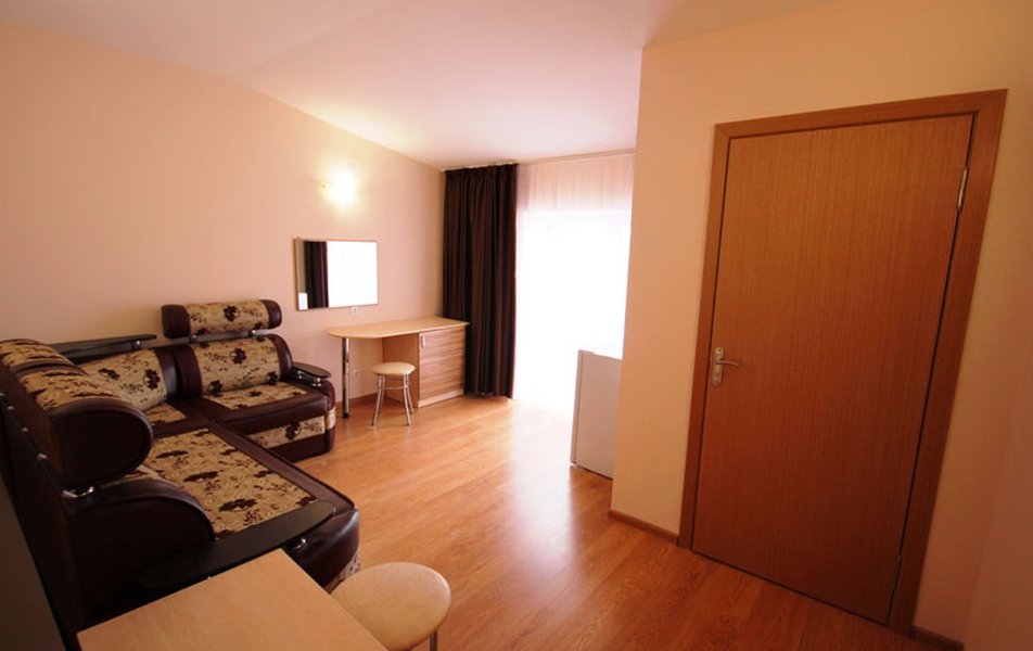 Номер 2-местный 2-комнатный Количество комнат: 2-комнатный Дополнительное место: раскладной мягкий уголок Кол-во доп. мест: 2 Кол-во номеров: 8 Кол-во основных мест: 2 Площадь (кв. м): 35 Балкон: с мебелью и сушилкой Мебель: вешалка, зеркало, кровать двуспальная, набор мягкой мебели, прикроватные тумбочки, столик туалетный, стулья, шкаф Оборудование: сплит-система, телевизор ЖК, холодильник, чайный набор посуды, электрочайник Санузел: с душевой кабиной, туалетные принадлежности, фен Сервис: смена полотенец: 1 раз в 3 дня, смена постельного белья: 1 раз в 5 дней, уборка номера: ежедневно или по требованию