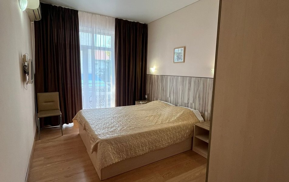 Стандартный 2-местный Количество комнат: 1-комнатный Тип номера: Стандартный Дополнительное место: еврораскладушка Кол-во доп. мест: 1 Кол-во номеров: 25 Кол-во основных мест: 2 Площадь (кв. м): 16 Балкон: с мебелью и сушилкой Мебель: вешалка, кровати односпальные, прикроватные тумбочки, стулья, шкаф Оборудование: сплит-система, телевизор ЖК, холодильник Санузел: с душем (поддон), туалетные принадлежности Сервис: смена полотенец: 1 раз в 3 дня, смена постельного белья: 1 раз в 5 дней, уборка номера: ежедневно или по требованию