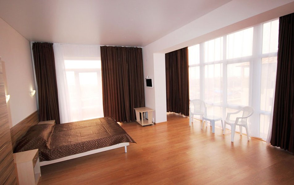 Люкс 2-местный Количество комнат: 1-комнатный Тип номера: Люкс Дополнительное место: диван Кол-во доп. мест: 2 Кол-во номеров: 8 Кол-во основных мест: 2 Площадь (кв. м): 30 Балкон: с мебелью и сушилкой Мебель: вешалка, диван раскладной, зеркало, кровать двуспальная, прикроватные тумбочки, столик туалетный, стулья, шкаф Оборудование: сплит-система, телевизор ЖК, холодильник, чайный набор посуды, электрочайник Санузел: с душем (поддон), туалетные принадлежности, фен Сервис: смена полотенец: 1 раз в 3 дня, смена постельного белья: 1 раз в 5 дней, уборка номера: ежедневно или по требованию