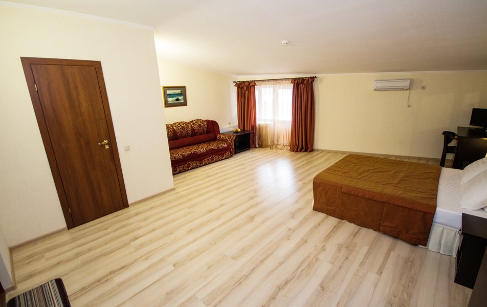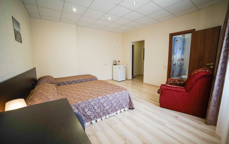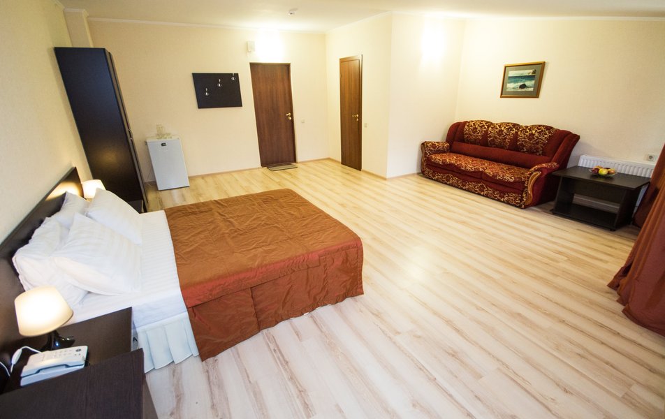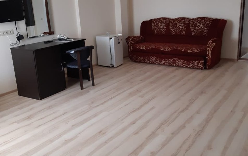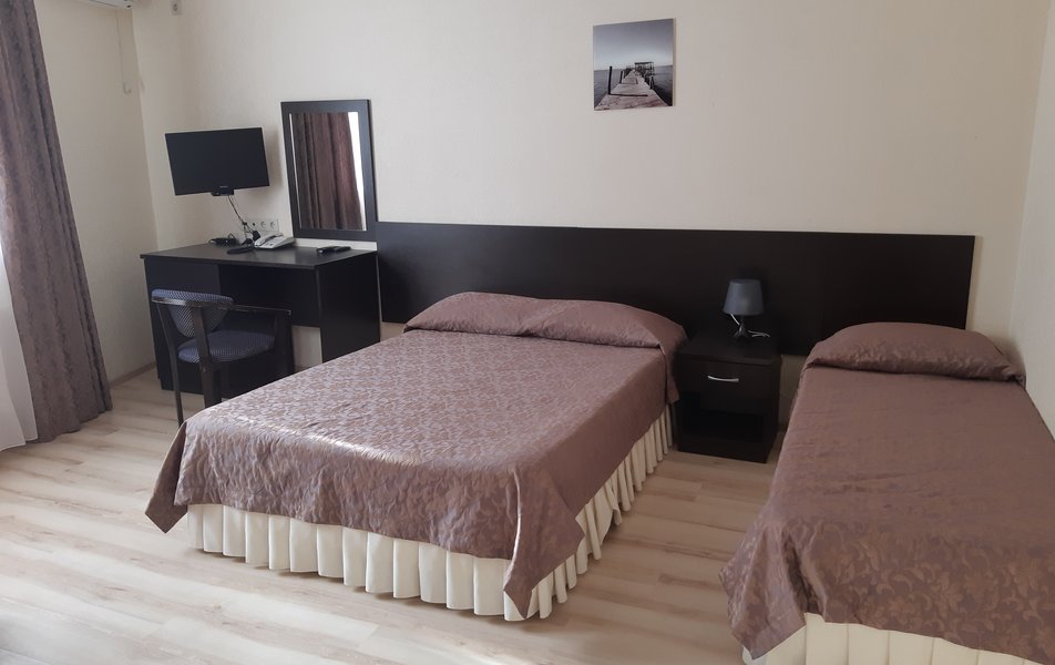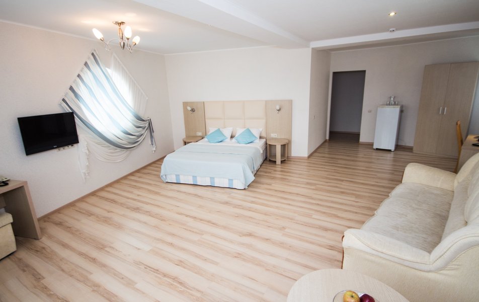 Отель очень хороший. Очень хорошая организация. Спасибо администраторам, увезли, привезли, разместили. Номер лучше чем на фото (с видом на море). 1 линия, пляж виден из окна, до набережной Анапы 40 минут по тенистой аллее (велосипедисты едут по отдельной дороге, спасибо кто это сделал), можно идти по пляжу, заборов нет и кажется ближе. Уборка каждый день, очень тщательная. Своя столовая, цены приемлемы и очень вкусно, запеканка, оладья, пюрешка с гуляшом - Мишленовские 5 звезд, просила готовить персонально (вареная курица), отказа не было. Была детская анимация. Если на шикарный балкон будет поставлена хотя бы мало-мальская мебель, приеду еще.