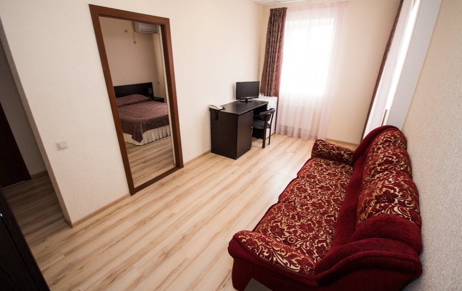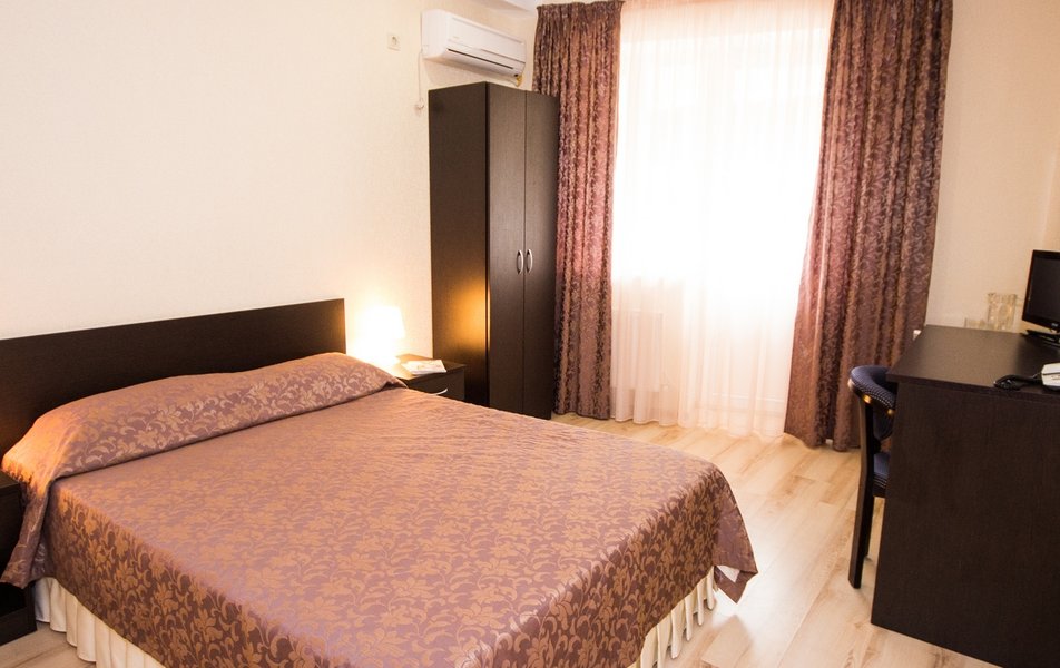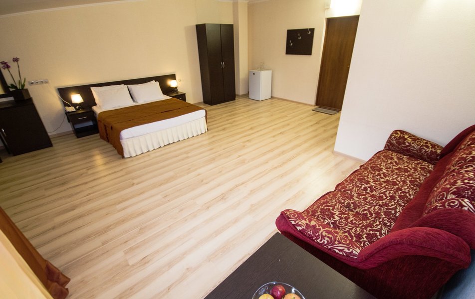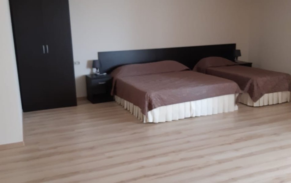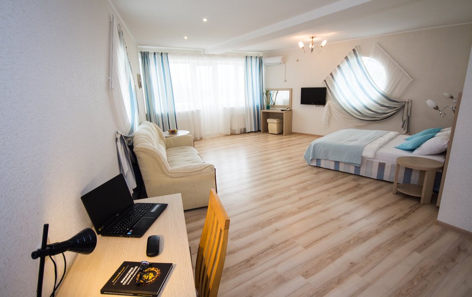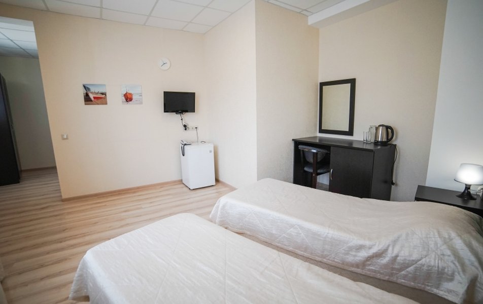 Отель очень хороший. Очень хорошая организация. Спасибо администраторам, увезли, привезли, разместили. Номер лучше чем на фото (с видом на море). 1 линия, пляж виден из окна, до набережной Анапы 40 минут по тенистой аллее (велосипедисты едут по отдельной дороге, спасибо кто это сделал), можно идти по пляжу, заборов нет и кажется ближе. Уборка каждый день, очень тщательная. Своя столовая, цены приемлемы и очень вкусно, запеканка, оладья, пюрешка с гуляшом - Мишленовские 5 звезд, просила готовить персонально (вареная курица), отказа не было. Была детская анимация. Если на шикарный балкон будет поставлена хотя бы мало-мальская мебель, приеду еще.