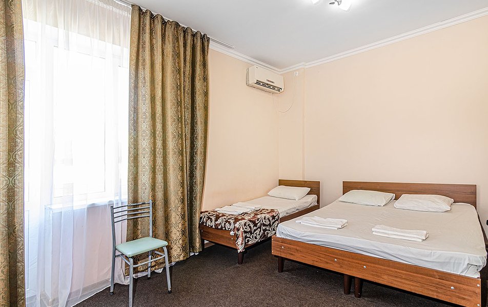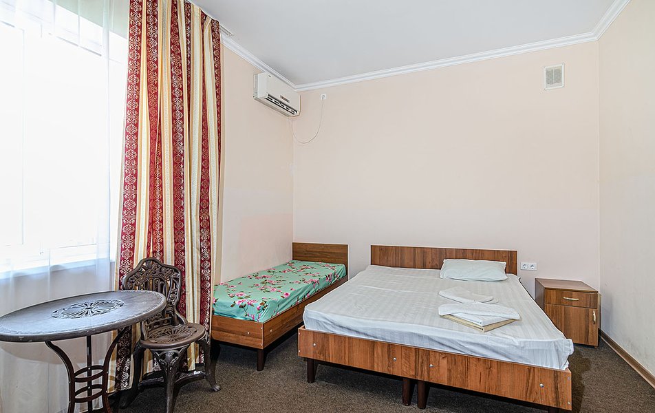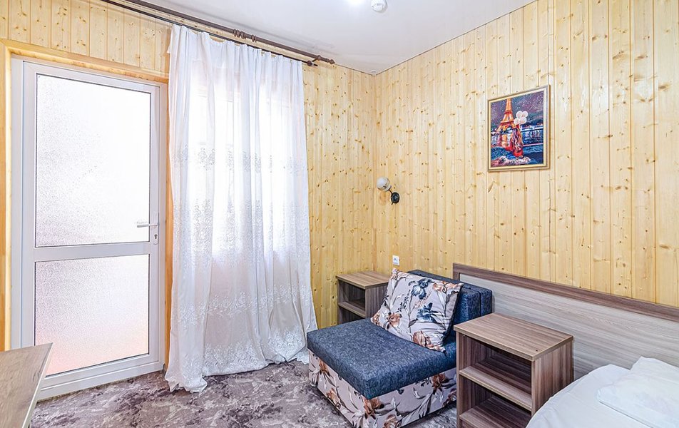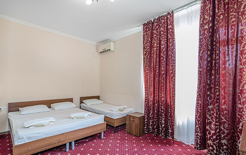 Комфорт 3-местный Количество комнат: 1-комнатный Тип номера: Комфорт Кол-во номеров: 8 Кол-во основных мест: 3 Корпус: №1 Площадь (кв. м): 18-20 Балкон: с мебелью Мебель: вешалка, зеркало, кровать двуспальная, кровать односпальная, прикроватные тумбочки, стол, стулья, шкаф Оборудование: кондиционер, телевизор, холодильник Санузел: с ванной, туалетные принадлежности Сервис: смена полотенец, смена постельного белья, уборка номера