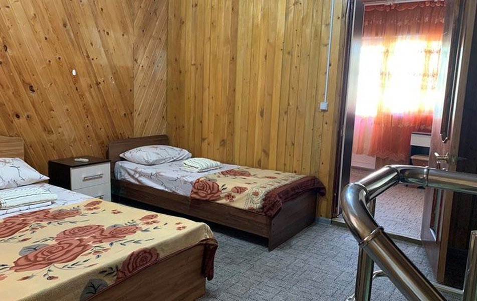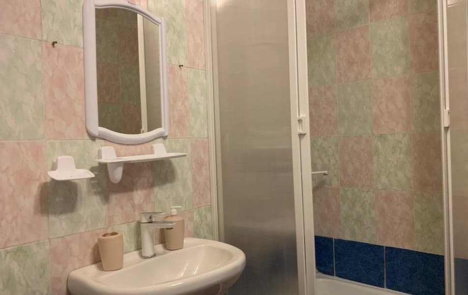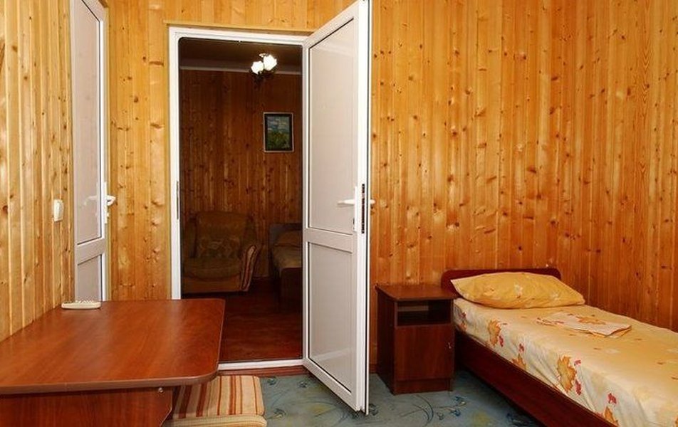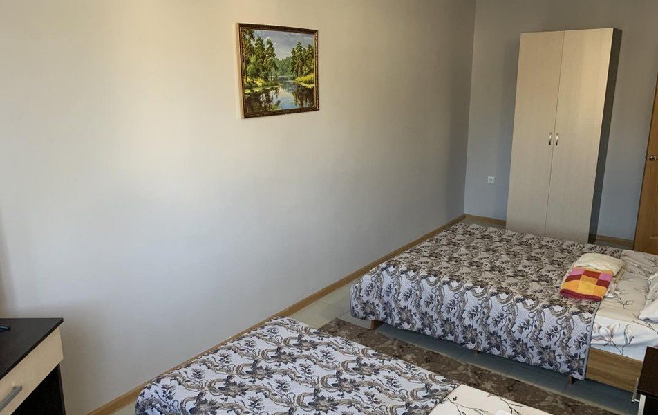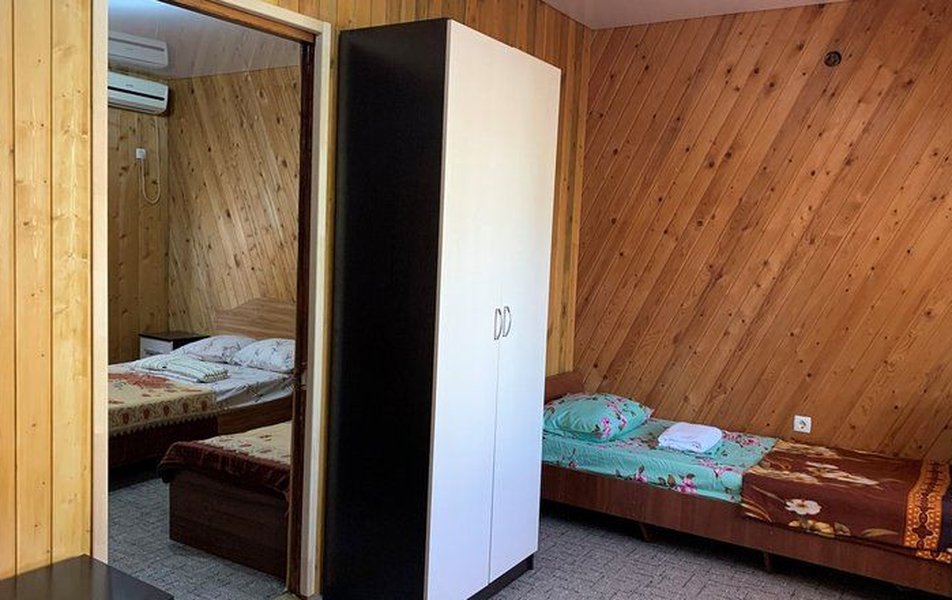 Апартаменты 4-местный 2-комнатный (корпус 2) Количество комнат: 2-комнатный Тип номера: Апартаменты Кол-во номеров: 1 Кол-во основных мест: 4 Корпус: №2 Площадь (кв. м): 32 Мебель: вешалка, зеркало, кровати односпальные: 4, кровать полутороспальная, кухонная мебель, прикроватные тумбочки, стол, стол обеденный, стулья, шкаф Оборудование: кондиционер, микроволновая печь, набор посуды, плита электрическая, телевизор, холодильник, чайный набор посуды, электрочайник Санузел: 2 санузла, с душем, туалетные принадлежности Сервис: смена полотенец, смена постельного белья, уборка номера
