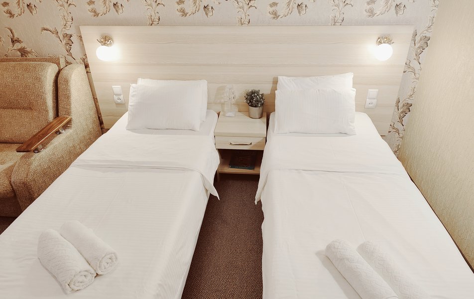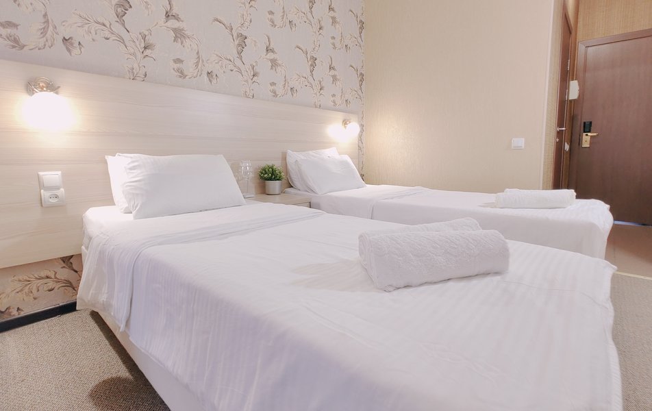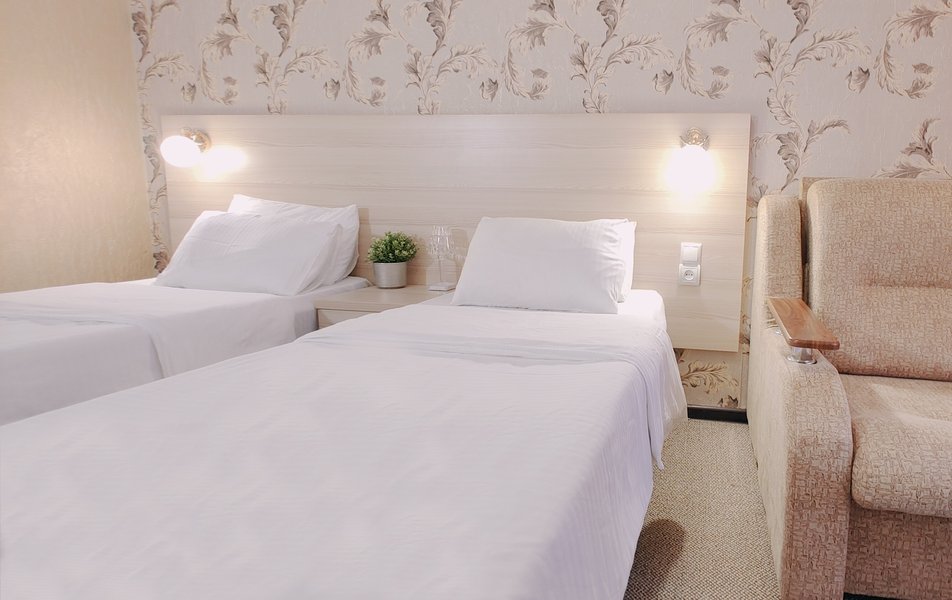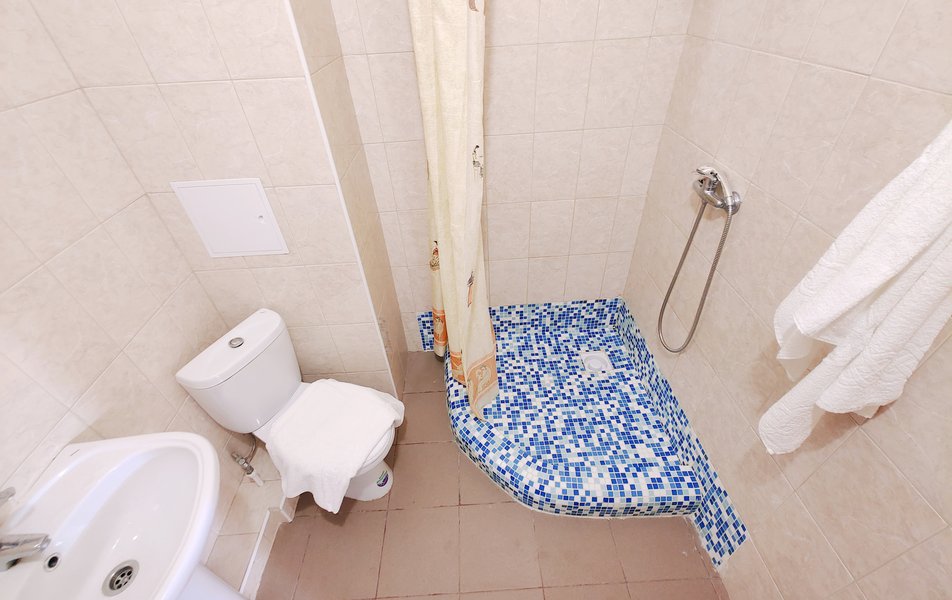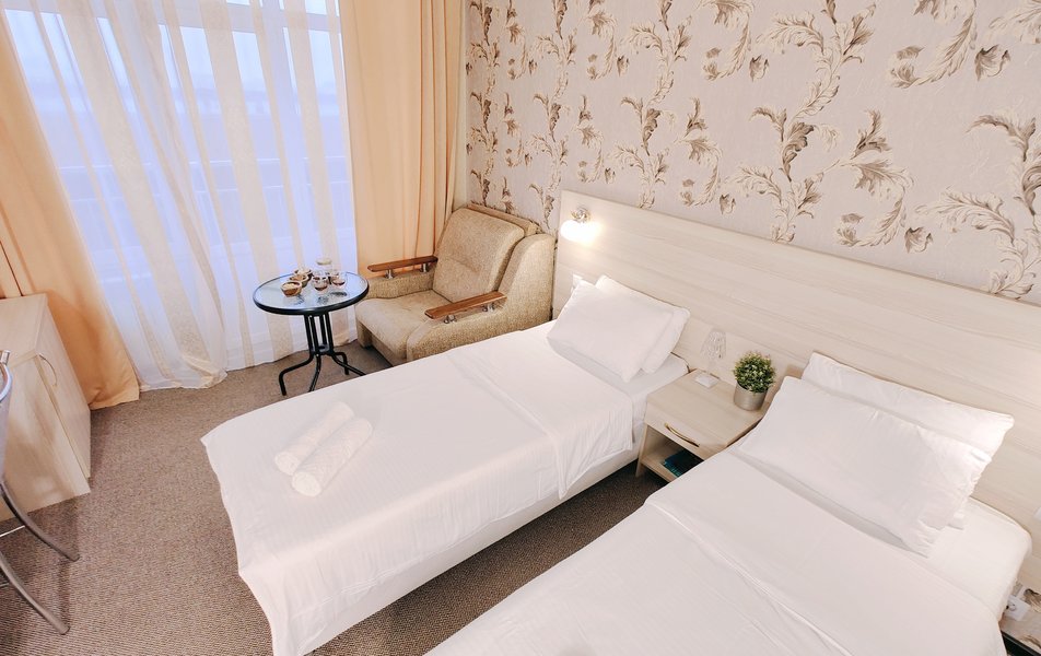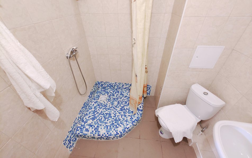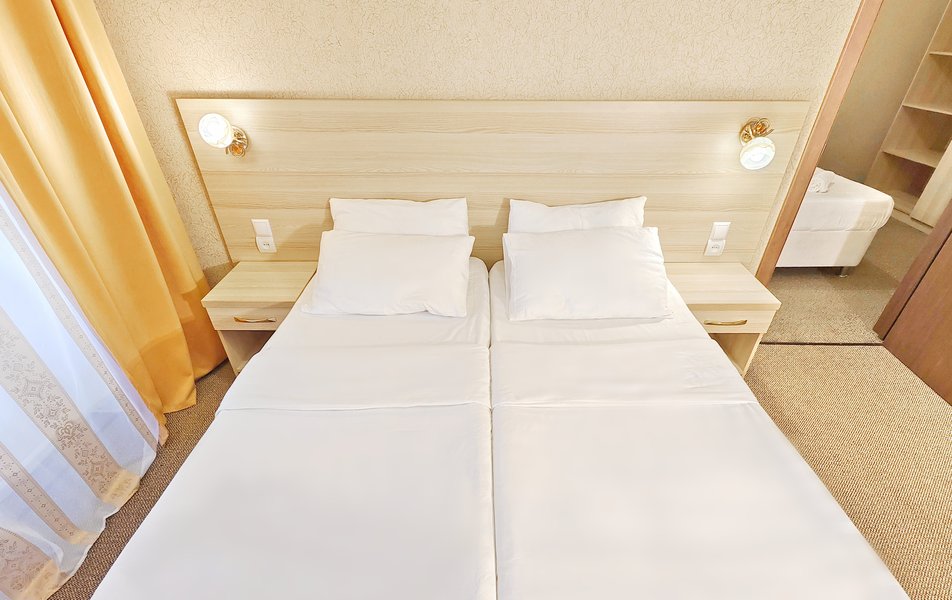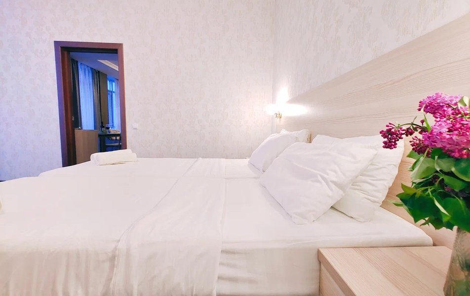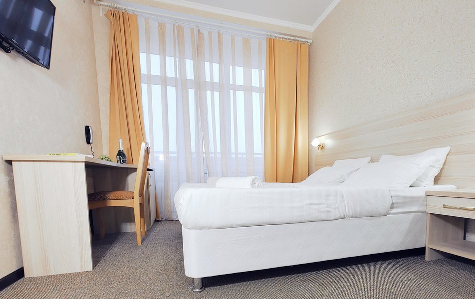 Забронировали номер на троих в августе, приехали днём и нас очень тепло встретили, сразу заселили. Номер был на 5 этаже, в отеле есть лифт. Сам номер небольшой, но уютный, есть всё необходимое для проживания, балкончик со столиком и стульями, я люблю такое. Питание понравилось, было разнообразие и вкус, ребёнку очень нравились запеканки, хотя дома не особо их ест. А ещё анимация была каждый день, так что скучать не пришлось. Особо хочу отметить сауну - нам администратор сказала, сто можно в сауну сходить и это бесплатно. Мы записались, и уже на следующий день попарились на славу, кстати, в сауне тоже есть бассейн. В общем, очень приятный отель на самом берегу Чёрного моря и по очень адекватной цене, рекомендую от души)