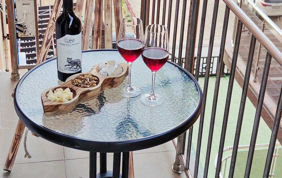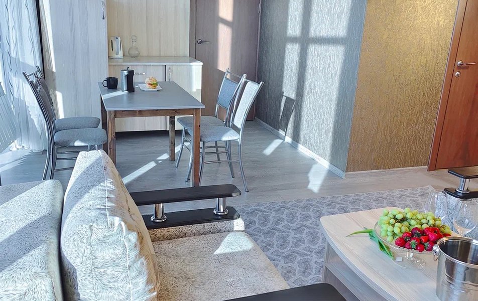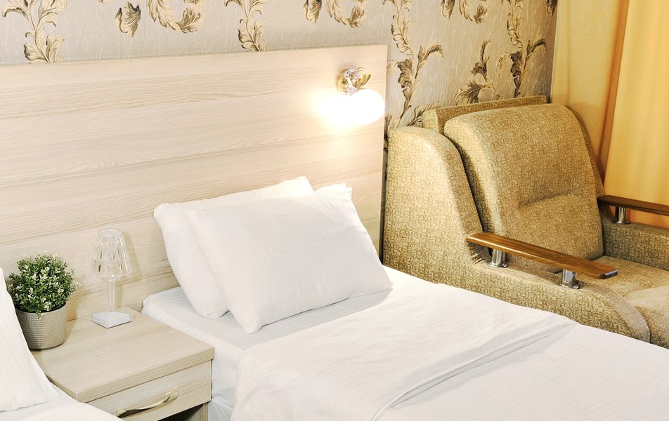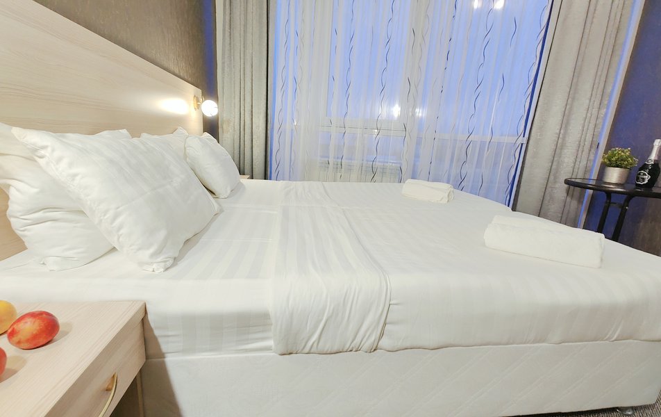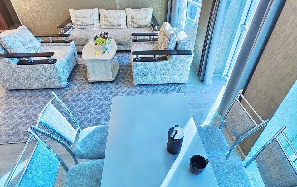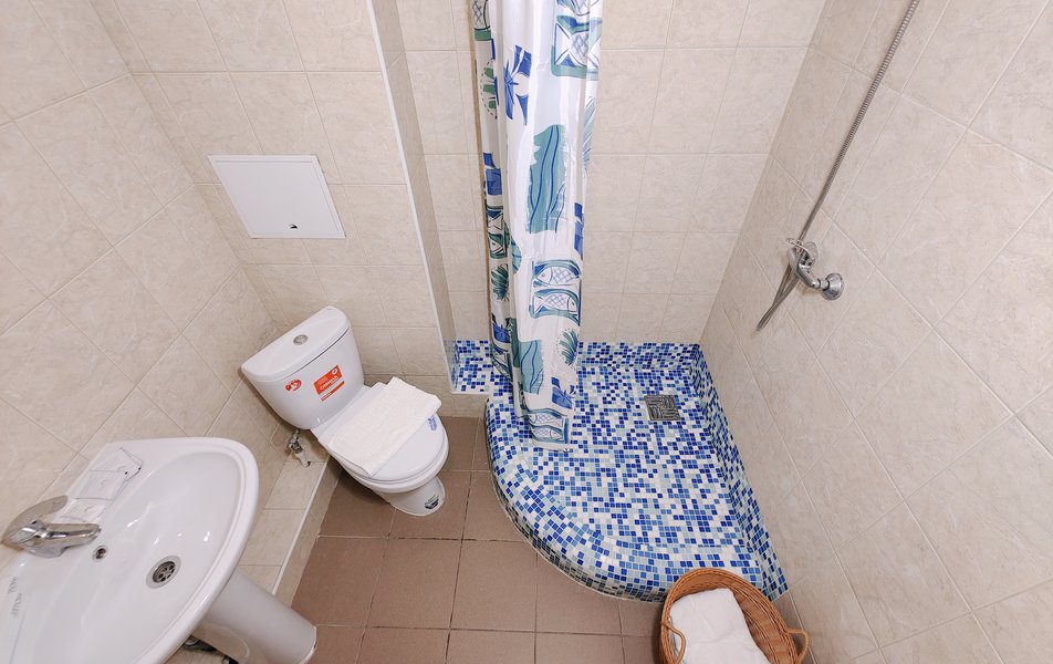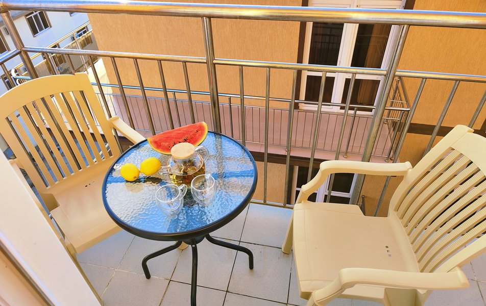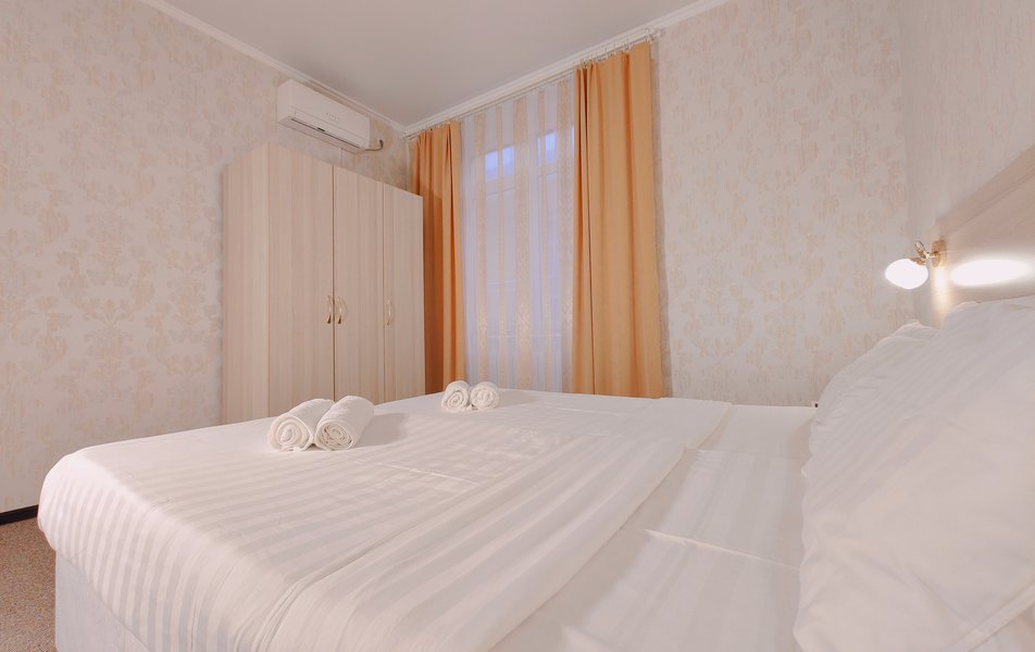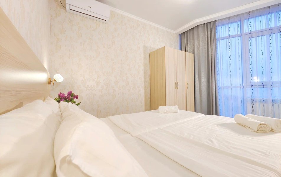 Забронировали номер на троих в августе, приехали днём и нас очень тепло встретили, сразу заселили. Номер был на 5 этаже, в отеле есть лифт. Сам номер небольшой, но уютный, есть всё необходимое для проживания, балкончик со столиком и стульями, я люблю такое. Питание понравилось, было разнообразие и вкус, ребёнку очень нравились запеканки, хотя дома не особо их ест. А ещё анимация была каждый день, так что скучать не пришлось. Особо хочу отметить сауну - нам администратор сказала, сто можно в сауну сходить и это бесплатно. Мы записались, и уже на следующий день попарились на славу, кстати, в сауне тоже есть бассейн. В общем, очень приятный отель на самом берегу Чёрного моря и по очень адекватной цене, рекомендую от души)