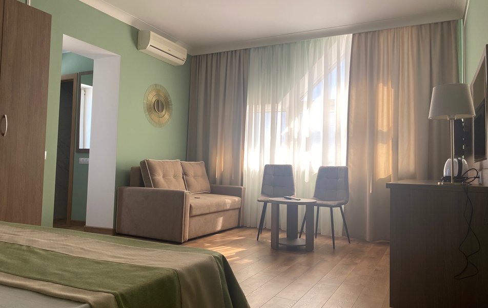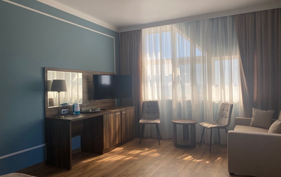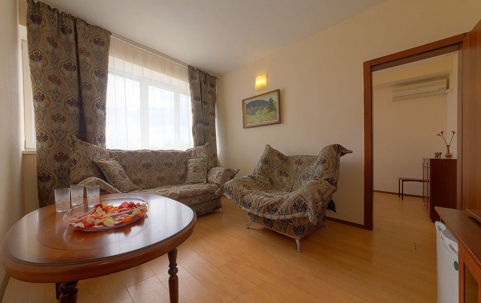 Сразу о неприятном - отдыхали вдвоем- бабушка и внучка 2 лет. Приехали между заездами - пансионат стоит полупустой. И!!! Для нас выделили номер, с туалетом вне номера и выходящий на танцпол. Я подошла к администратору и попросила поменять номер, хотя бы на соседний, с туалетом внутри. Ответ - нет! Просто - нет, не будем. Объясняю им еще раз - ребенку два года, это три раза за ночь соску помыть, пару раз бутылочку, раз отнести сонную помыть попу... Днем на ручках отнести в душ после пляжа, вечером еще раз помыть и принести в кровать... Утром оставить одну в номере и уйти в душ. Танцы и программы до 22, ребенок засыпает в 20.30. Ответ тот же -нет, не будем... Соседний номер стоял пустым еще два дня. О хорошем - персонал, тот, который не сидит в офисе, прекрасный. Многие жаловались на уборку, но не знаю - у нас убирали часто, белье меняли по первой просьбе и всегда спрашивали, может что-то еще помыть. Электрик/сантехник приходил через 10 минут после заявки - у нас один раз сломался душ и один перегорела лампочка. Коллектив столовой работает прекрасно. Кормят вкусно, но несколько удивляет отсутствие сезонных фруктов - грейпфруты, яблоки и бананы в июле-августе, как-то странно.Один раз за полмесяца были абрикосы и один раз арбуз. Вкусная молочка. Удивляло изобилие майонезных салатов, но народ ел их с аппетитом. Кстати, если прийти в конце трапезы, то выпечки, нарезки и части мясного горячего уже не будет - съедят. Прекрасные анниматоры и воспитатель в детской комнате. Развлечений для детей много, но для детей лет так 7-12. Взрослые тоже посещали разные викторины и игры, были танцы. Все такое 80-90х годов. Но весело. Детская площадка откровенно мала для такого количества детей. Стадион в полной разрухе. Вообще территория зеленая, но маловата. Посидеть можно, а погулять уже негде. Пляж очень чистый и лежаков много. Порадовало то, что очень чисто - мусорные урны чистили несколько раз в день. Цены очень уж демократичными не назову - средние по Джемете.