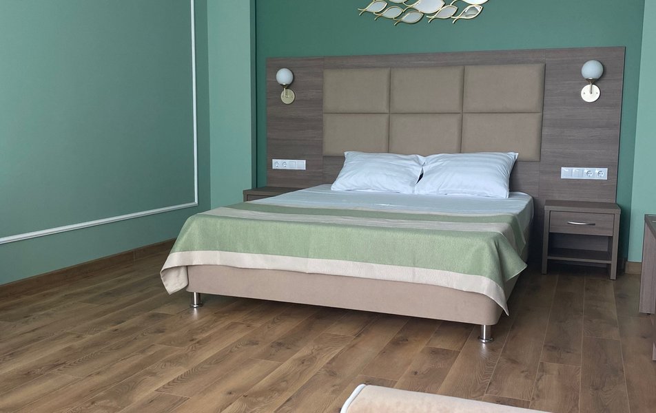 Отдыхали в пансионате в июле 2022. Это наш второй приезд в этот пансионат, а первый был 20 лет назад - в 2002 году. Тогда пансионат оставил только положительные впечатления, а нынешний отдых оказался подпорчен. Начну с минусов. 1) Музыка. На сайте есть красивая фраза: "Вечером мамы выгуливают свои платья под аккомпанемент старых любимых мелодий, современных ритмов и живой звук приглашенных исполнителей". Мы были в пути на своей машине почти сутки. Единственное, что хотелось вечером в день приезда - лечь и скорее уснуть. Но в 21:00 началась дискотека. Нас поселили в корпус напротив музыкальной площадки, и громкость была такой, как будто по голове бьют молотком. Репертуар заслуживает отдельного внимания. Никаких "старых любимых мелодий" нет и в помине, до 23:30 мы слушали Galibri & Mavik, Хабиба, Люсю Чеботину и им подобных. На следующий день пошли поговорить с администратором, она старательно изображала сильное удивление и говорила, что мы первые, кто возмутился громкости. Сейчас внимательно посмотрела отзывы и нет, мы далеко не первые, кто был недоволен "дискотекой". Но самое главное, что 2,5 часа эта музыка орала для одного человека на площадке. Важно отметить, что значительная часть отдыхающих в пансионате - люди пенсионного возраста, и поэтому репертуар очень удивил. Повезло, что удалось переселиться в другой номер подальше. Также расскажу о музыке на пляже. Она орет с еще большей громкостью, чем на площадке, особенно во второй половине дня. Лежа на соседних лежаках и разговаривая, мы не слышали друг друга. Хотелось сбежать как можно дальше, а не наслаждаться морем и солнцем. Репертуар аналогичный. Предпоследний день особенно удивил. Работникам пляжа, наверное, захотелось разбавить хиты 2022 чем-то необычным, и им это удалось. Около получаса на пляже звучали блатные тюремные песни. Очень запомнились строчки "мы бежали из зоны, замочив вертухая", "дождик капал на рыло и на дуло нагана". Это не то, что я ожидала услышать во время долгожданного отпуска. Несколько человек просили сменить музыку, и лишь после очередной жалобы сотрудник пляжа одумался. 2) Шведский стол. Очень скудное и однообразное меню, очереди. Мы отдыхали 14 дней, и каждый день на обед и ужин стабильно была жареная засохшая курица. В салатах тоже курица. Странно, что компот не из курицы. Помимо этого почти каждый день была рыба, периодически тефтели и пару раз свинина, но это все очень быстро разбирают. Еду выносят небольшими лотками, все быстро исчезает, и если не хочешь есть курицу дважды в день, то надо ждать, пока вынесут следующий лоток, а затем успеть, пока все не разобрали. Завтраки: макароны, сосиски, омлет, запеканка. Оладьи и блинчики тоже есть, но их расхватывают моментально. Один раз пришлось ждать следующего лотка 40 минут. В чем проблема вынести все сразу? Из сладкого только печенье одного вида. Из фруктов - порезанные яблоки и апельсины. Где арбузы, персики, дыни, груши? Салаты очень однообразны, огурцы и помидоры есть всегда. 3) Уборка номеров. Наверное, если бы мы не пошли с жалобой к администратору, у нас бы и не убрались вообще. Первая уборка была спустя 6 дней после приезда, вторая почти перед отъездом. Белье и полотенца сменили 1 раз за 14 дней и только после жалобы. 4) Слышимость в номерах. Звукоизоляция отсутствует полностью. Идеально слышно, как в соседнем номере разговаривают даже очень тих