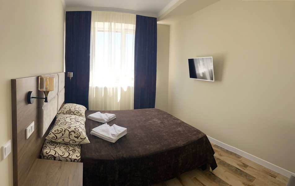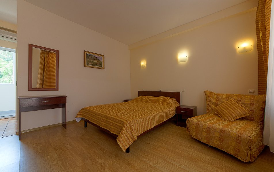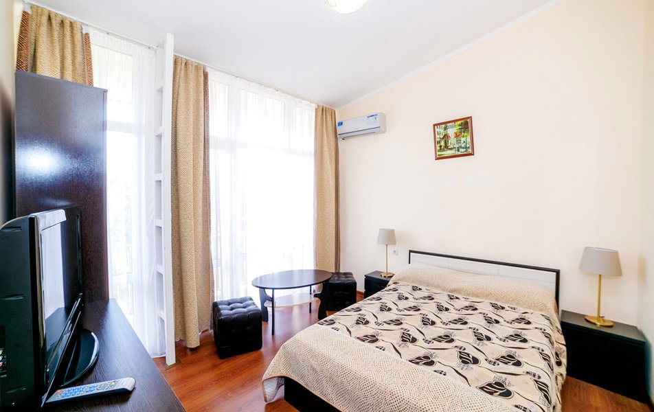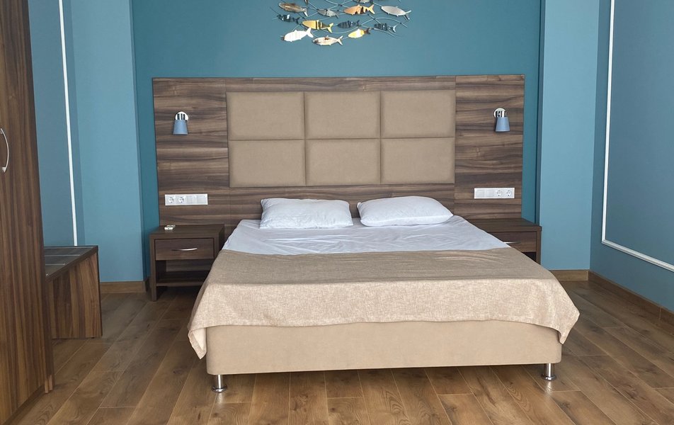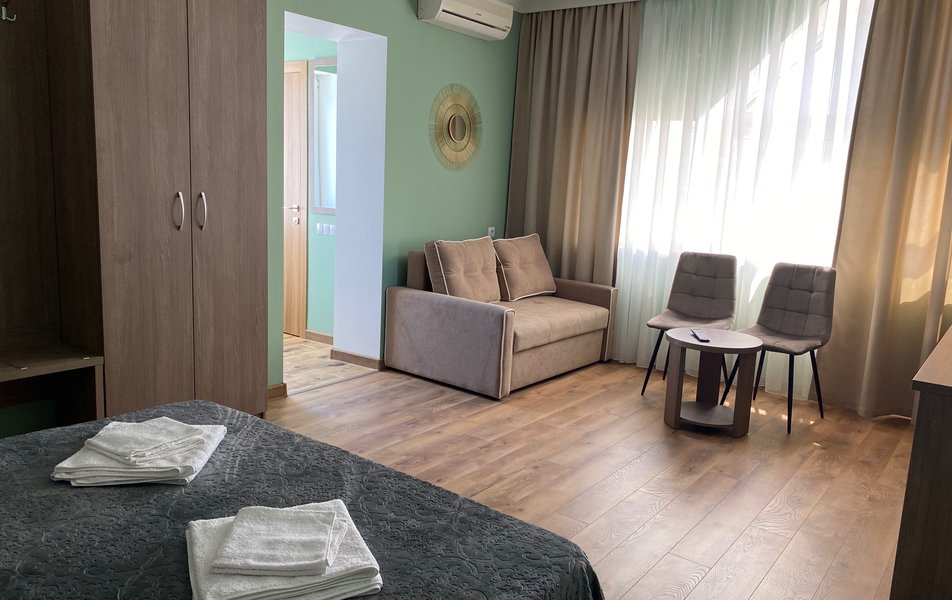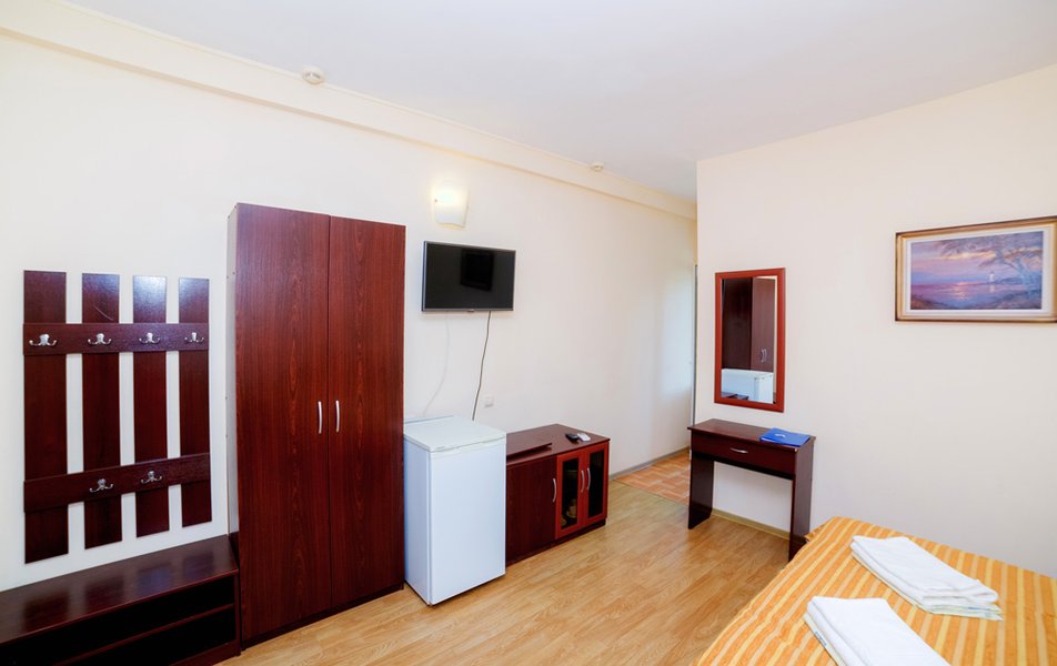 Нам все понравилось. Давно знали о данном пансионате, сестра сюда каждый год приезжает. И вот решились и мы. Мы ездили с годовалым сыном. Ехали на машине, заранее не бранировали, позвонила, уточнила есть ли свободные номера. Приехали мы в 8 вечера. Нам сразу сказали, что номера эконом выходят на танцпол и будет шумно. Мы взяли стандарт. Кондиционер, телевизор, холодильник. Все работало. Чайник в номере не предусмотрен, но на нашу просьбу, предоставили. Территория небольшая, но мы приехали на море, а не сидеть в номере. Далее, столовая чистая, вкусно кормили, сын щёки наел)). Рыба была каждый день, мясо, котлеты... Все было. Самое главное мы ни разу не выпили таблетки, с животами все в порядке! Из фруктов яблоки и апельсины. Сходили на рынок подкупили фруктов. Персонал на кухне отличный, приветливый! Есть детские стулья для кормления. Детская площадка конечно не очень, но горка, качели есть. Детская комната вполне достойная. Другие развлечения : настольный теннис, футбол имеется. Стирка стоит 100руб. Пляж супер! Песочек белый, чистый, море прозрачное, голубое, восторг! Менеджеры Жанна и Светлана , отдельное спасибо, на все просьбы и вопросы помогали, отвечали. И в целом весь персонал хороший, отзывчивый!