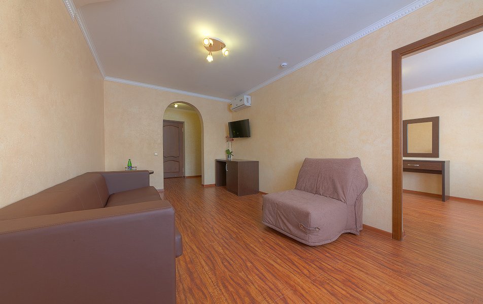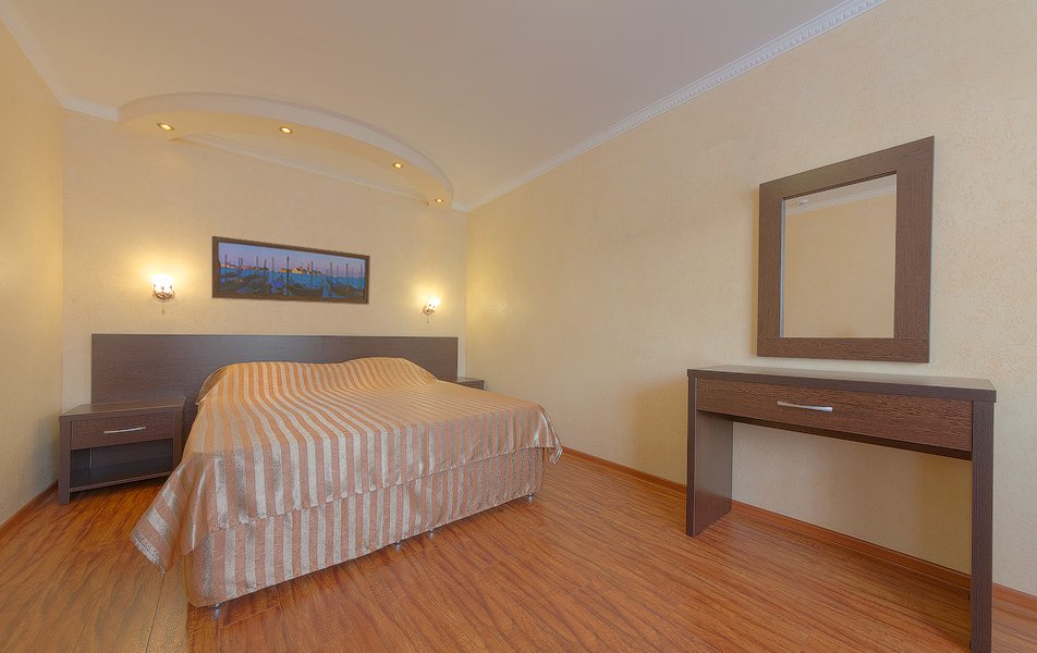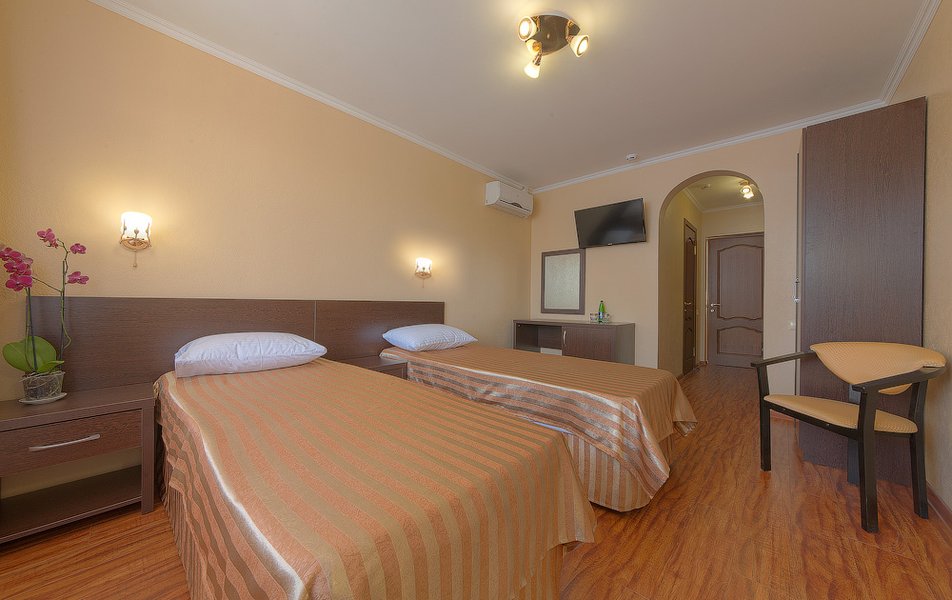 Категорически не советую этот отель. Впервые в жизни пишу негативный отзыв, в попытке предостеречь. 100% предоплата(чем видимо владельцы пользуются) , вот что остановило нас с семьёй, не убежать из этого отеля прочь! Нас встретили с вокзала, как и написано на букинге, а по приезду в отель, водитель сказал :"Ну че вы со мной то ращитайтесь, 500 р. с вас" (это о том что трансфер с вокзала не бесплатный). Когда мы зашли в отель, женщина (мы не запомнили имя) провела нас в номер, мы начали распоковывать чемоданы,как вдруг, эта же женщина вломилась в номер, со словами :" Вы меня чего путаете? Вам в люкс". Мы с вещами в зубах перешли в люкс, а через 7 минут, снова она и снова кричит:"Нет, выходите из люкса, идите разберайтесь с хозяйкой". Из разговора с хозяйкой, я поняла, что нужно им доплатить ещё 9000,чтобы жить в заявленном люксе или отправляться в эконом(что мы и сделали). На мои доводы, что вот распечатка букинга о номере и то что я предварительно звонила в этот отель и мне все подтвердили, никого не волновали."Идите разберайтесь с букингом", вот что нам ответили. А теперь, коротко 1. за 7 дней номер убрали один раз (помыли полы и дали новые маленькие полотенца) 2. За 7 дней пастельное белье меняли 0 раз(я его стирала сама) 3. В номере неприятный запах затхлости 4.кровати, будто из сарая 80 х годов, матрас промят 5.в столовой еда: это очень мало, остывшее, не разнообразно(как в столовке, в очень бедной школе) 6.розетки в номерах(я даже обьяснить не могу) 7.отношение владельцев, ну скажем так, могут спокойно послать) А теперь, вопрос к Букингу, имея столько жалоб от постояльцев, разумно ли давать заведению статус отеля 2 звезды?!