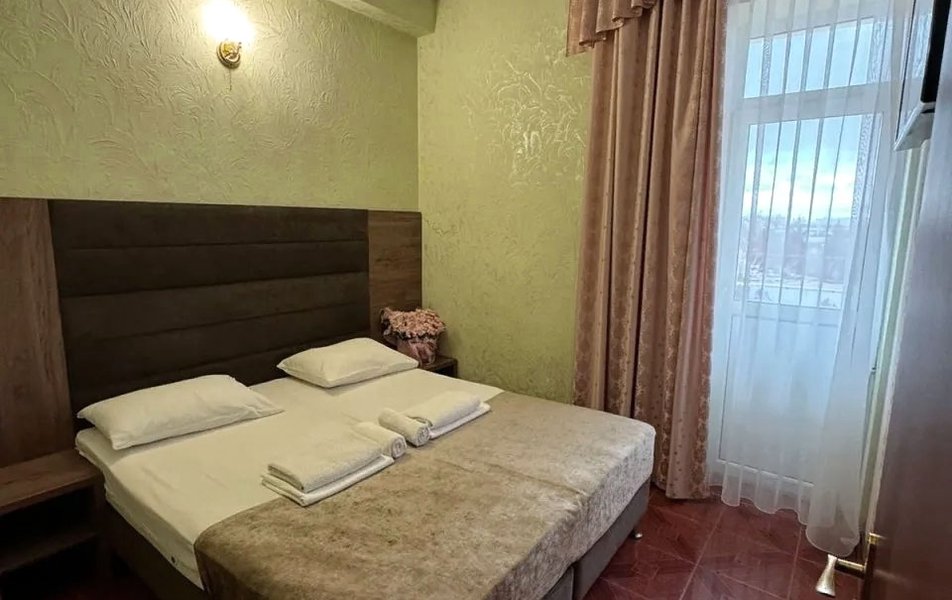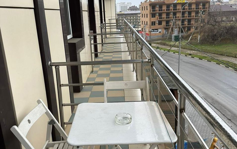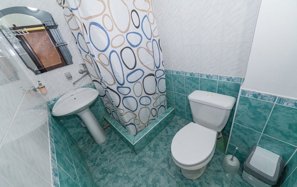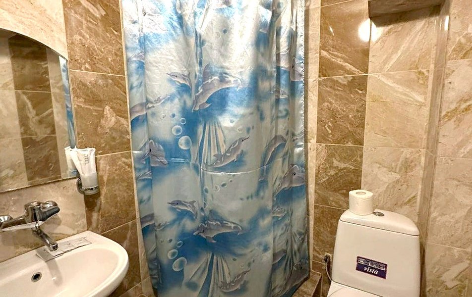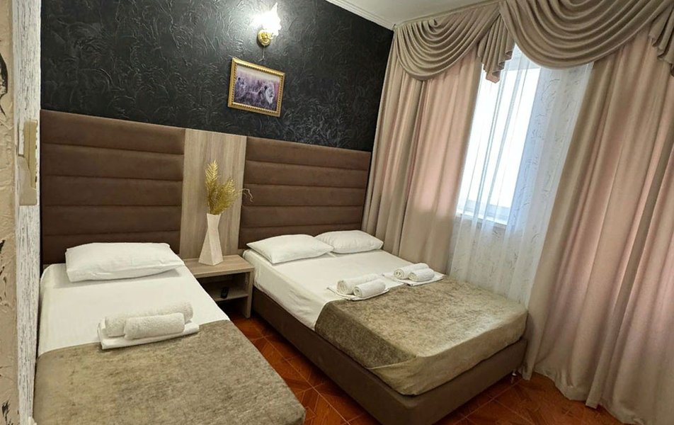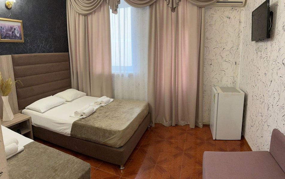 Отдыхали в середине сентября. Бронировали номер за месяц. Хозейва были предупреждены, что едем мы с 2 маленькими детьми. Поселили нас на 4 этаже. Это самый последний этаж. Номер относительно нормальный. Ковёр очень грязный. Предоставили детскую кроватку. Это надо видеть. Вся расшатана, дно вываливается, матрац совершенно не для детского сна, обоссанный и вонючий. В туалете воняет канализацией. Вид из окна поразил. Каждое утро мы просыпались и смотрели на кладбище. Вода воняет ржавчиной. Чистить зубы нет возможности. Есть кондиционер который не чистили лет 5. Торчит пыль. Телевизор показывает плохо. Трансфер платный. 400 от вокзала и 400 обратно. На сайте написано бесплатно!!!! Столовая!!! Неоправданно дорого, все холодное. Не всегда сегодняшнее. Все не накрыто и заветренно. Ходили кушать в "Бригантину" там все очень вкусно и дешевле. Уборка номера в лучшем случае 1 раз в 3 дня. Белье меняют 1 раз в 5 дней. Детская площадка оставила желать лучшего. Игрушки сломанны, все с острыми краями. Для детей до 3 лет там ловить нечего. Басейн чистый, но холодный. Находится в тени. Путь до моря минут 15. На центральном пляже яблоку негде упасть. Песок отвратительно грязный. Приплывает тина. Продукты стоят в 2 раза дороже. Особенно детское питание. Хачи, хачи, хачи кругом хачи. Ощущение что была в Армении.