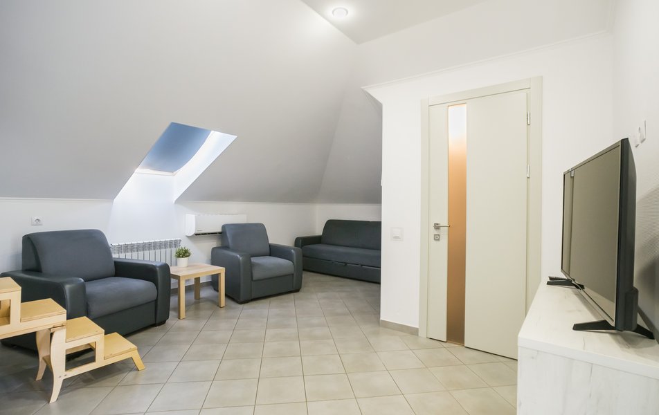 Странно читать хвалебные отзывы о этом гостевом доме, видимо их пишут сами владельцы. Из плюсов могу отметить только просторный номер( люкс) и расположение относительно набережной. Все. А номере нет шумоизоляции от слова совсем( слышны ВСЕ звуки). Под окнами ЛЮКСА расположена курилка, соответственно открывать их нельзя, если не хотите задохнуться от дыма. Мягкая мебель содержит на себе пятна неизвестного происхождения, химчистку явно не делают. В ванной комнате нет ни мыла ни шампуня. Завтраки тоже лучше и не брать, если вам дорог ваш желудок.