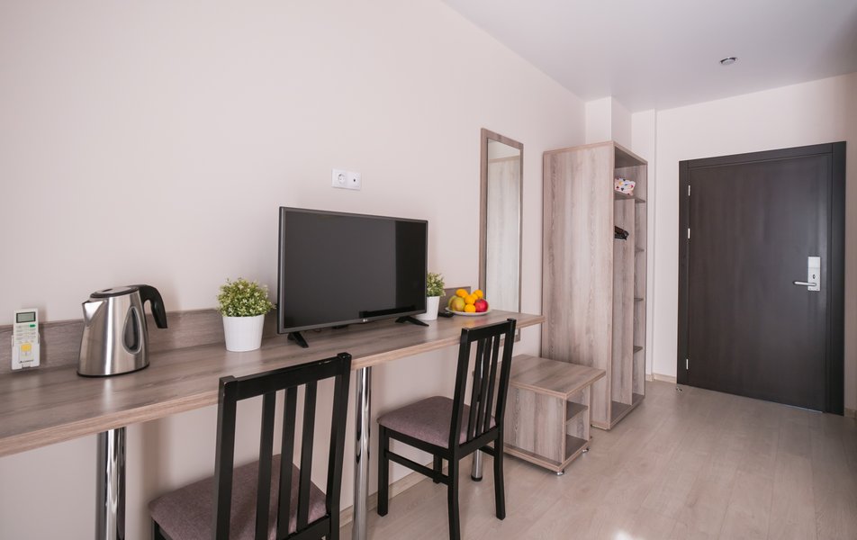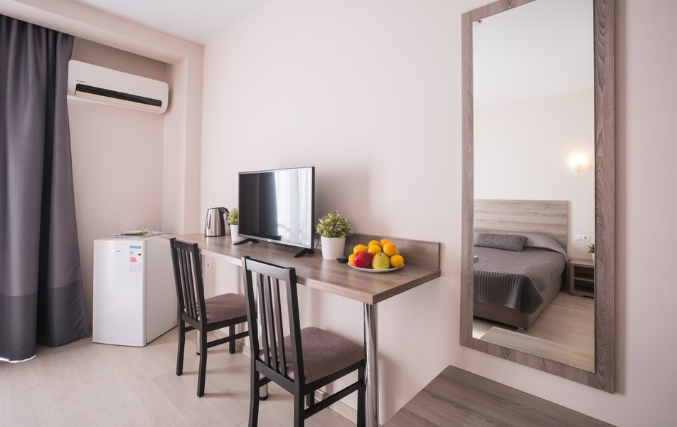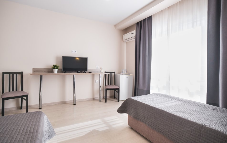 Отель понравился своим месторасположением у моря, близостью инфраструктуры, сплит система, холодильник, супер удобная кровать в номере, с кипельно- белым бамбуковым бельем, с номерах душ, туалет, всё чисто и уютно, рекомендуем всем , благодарим отель за радушный приём