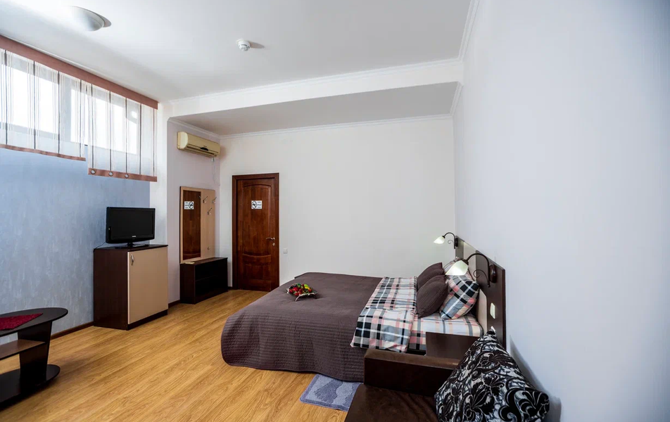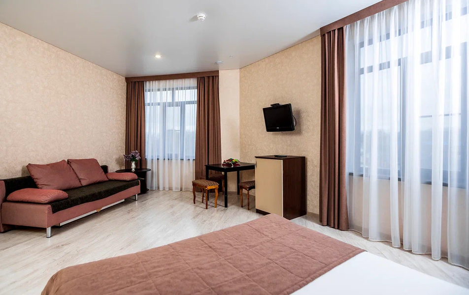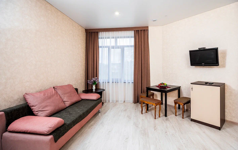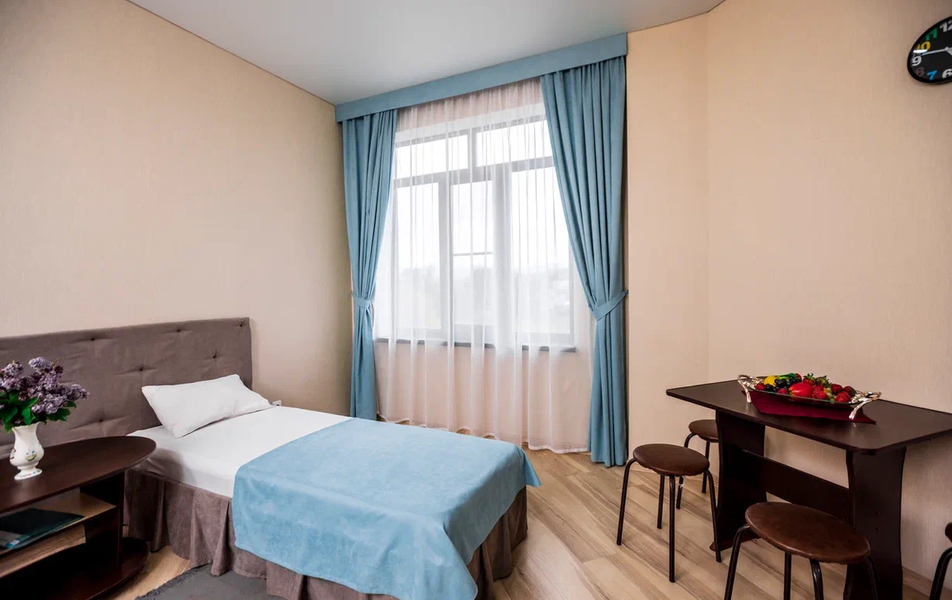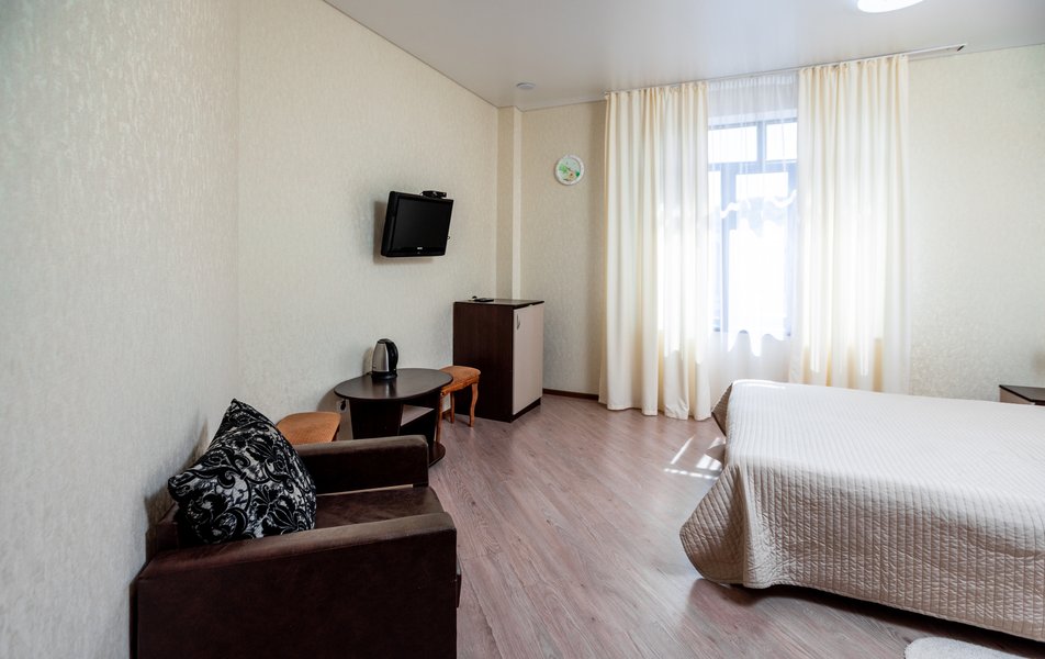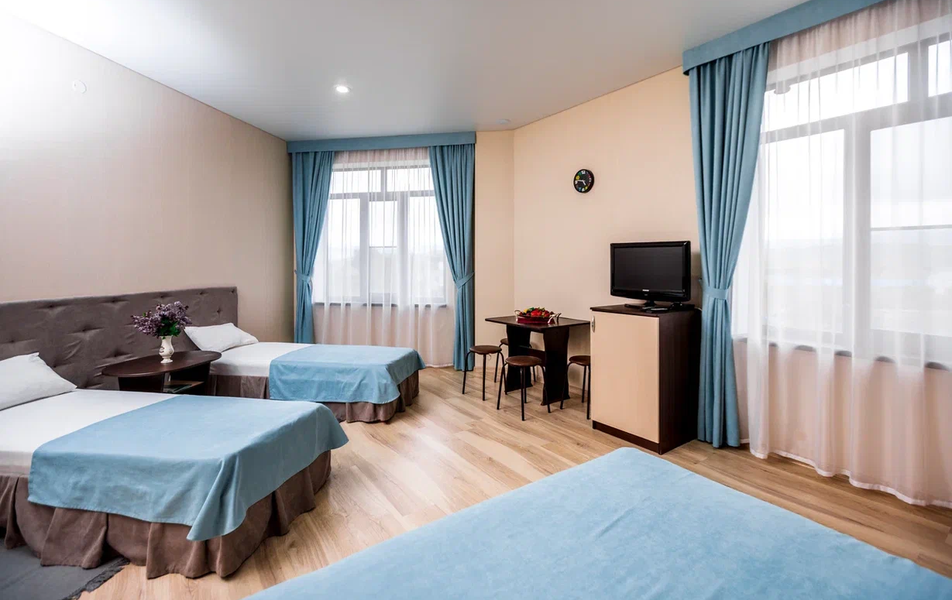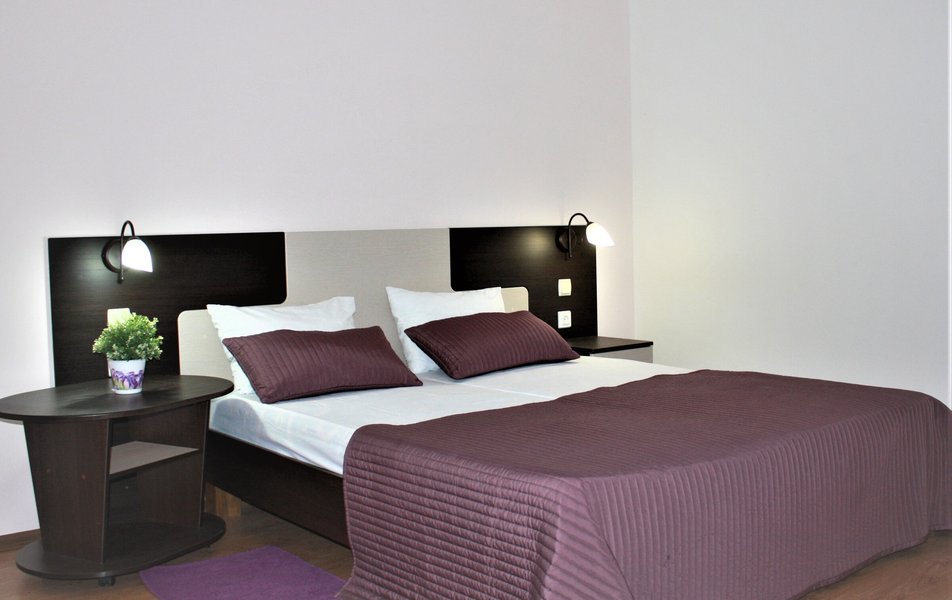 Никому не рекомендую здесь отдыхать. Приехали сюда, рассчитывая на хороший номер и теплый бассейн. К сожалению, номер сильно уставший, пахнет канализацией, слышимость сильная, ощущение, что соседи моются прям у тебя в номере; отваливалась ручка двери; кондер шумит так, что кажется сейчас разрушатся стены. При бронировании уточняла, что будет именно двуспальная кровать, т.к. были с маленьким ребёнком, а по факту были две сдвинутые кровати, спать дочке и нам было очень неудобно. Нет текущей уборки, не забирают даже мусор, за туалеткой надо ходить на ресепшен, убирают раз в три дня и очень посредственно. Также в номерах нет чайника, чашек и ложек, чайник есть только в общей кухне, но посуды там тоже нет, у нас был только один стакан и пара тарелок. За утюгом и феном тоже надо идти на ресепшен. Но самое большое разочарование - это бассейн. Он холодный. Не знаю как там идет обогрев, но в нем с трудом купаются даже дети. Детская площадка и игровая тоже просят обновления. Единственное, что понравилось - вкусная еда, всего много, все свежее.