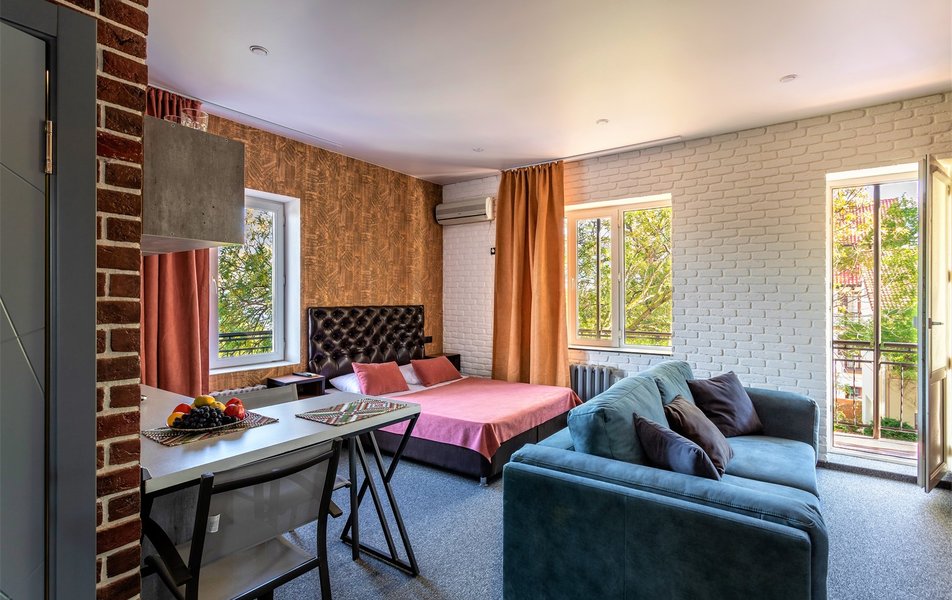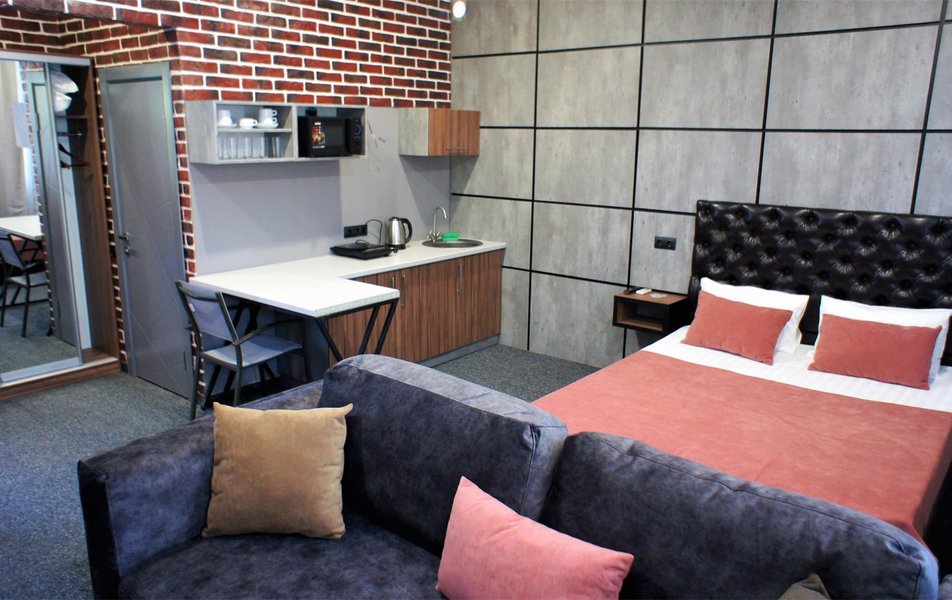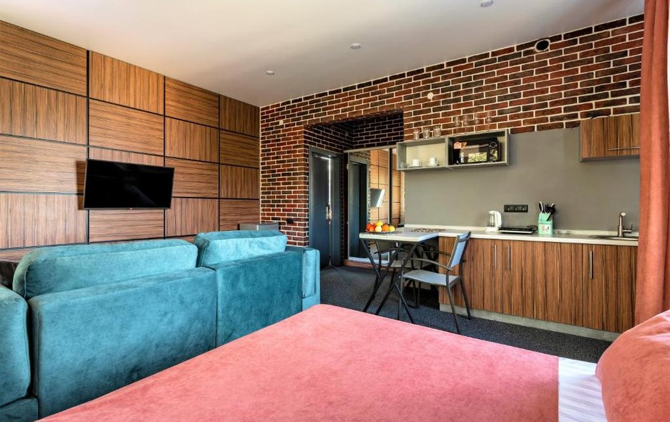 Отель на первой линии, рядом с пляжем «Сады морей», в этом его единственный плюс. Второй -бесплатный вкусный кофе на ресепшене. В остальном нам не понравилось: 1) Шум с набережной по вечерам -недостаток всех отелей первой линии. Плюс к этому громкая музыка у бассейна, крики детей, плещущихся там и взрослых, распивающих пиво рядом. Такая вот какофония звуков не даст уснуть даже при закрытых окнах. 2) Однообразные завтраки, которые надо заказывать и ждать по 40 мин - яичница, сырники, сэндвич или блины. 3) Курение на балконах и у бассейна. Для некурящих некомфортно 4) Окна на северную сторону. В сочетании со стилем лофт в номере довольно мрачно. 5)Уборка только по предзаказу, даже если вынести мусор 6) Нельзя вернуть остаток денег за ранний выезд, если отель не подошел. Поэтому либо теряйте деньги, либо терпите до конца.