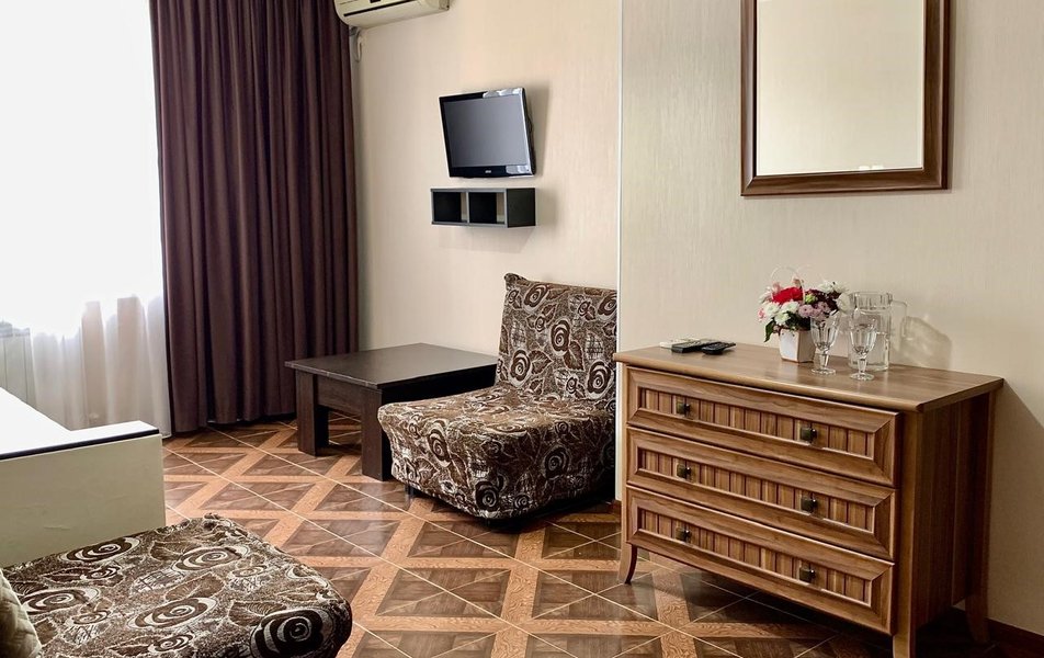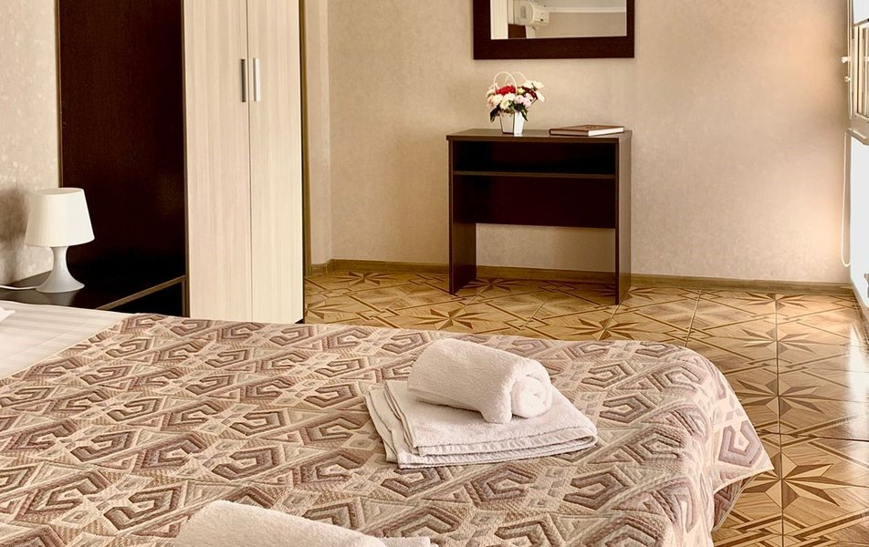 Всем доброго дня. Оставляю честный «живой» отзыв. На самом деле слов нет, одни эмоции. В течении всего дня, в том числе и вечером свет в коридорах не горит, в одних коридорах - по причине, отсутствия лампочек, в других из-за того, что просто экономят. Причем экономят не только на свете, но и на пакетах в мусорных ведрах…в одним из номеров которые мы снимали, просто - НЕТ! Дальше интереснее…чайника - НЕТ! Когда спросили : «почему нет чайника?», нам ответили : «пожарники запретили», зато кондиционер выключен постоянно, в отличии от пульта, которого просто - НЕТ! И в очередной раз нам представитель отеля (если его можно так назвать) ответил , что : «ничего не могу с этим сделать»…вроде был, а вроде и не был. Одеяло на двоих было размером 170х50 - это максимум!!! Как только сели на угол кровати - сразу провалились , из-за экономии на поперечных. Двери обшарпанные !!! Пыль не вытирается, ни то что на шкафах , но и на тарелках !!!! Унитаз грязный был при заселении!!! На ресепшене ни разу не встретил администратора, за исключением момента заселения и то на ее месте сидел сын, который там играл в компьютер и он же помог нам найти мать, которая спала в это время (во время заселения в «отель», если его можно так назвать, то есть в 14 часов дня!!). На отдел бронирования не надейтесь, там сидят неадекватные люди! И наконец-то самое плохое что было в этом ужасно гостевом доме - отсутствие горячей воды, которой не было никогда !!! Ее не было в 12 часов дня, ее не было в 17 часов вечера , ее не было даже в 23:30, после чего мы пошли на ресепшен, где опять не было администратора, которого пришлось 30 минут искать, на что она нам ответила : « подождите еще час и вода нагреется». Спустя 2 часа, горячая вода не появилась!!!!! 3* отель без горячей воды и всем вышеперечисленным. Решайте сами ! Единственное - вайфай ловит отлично