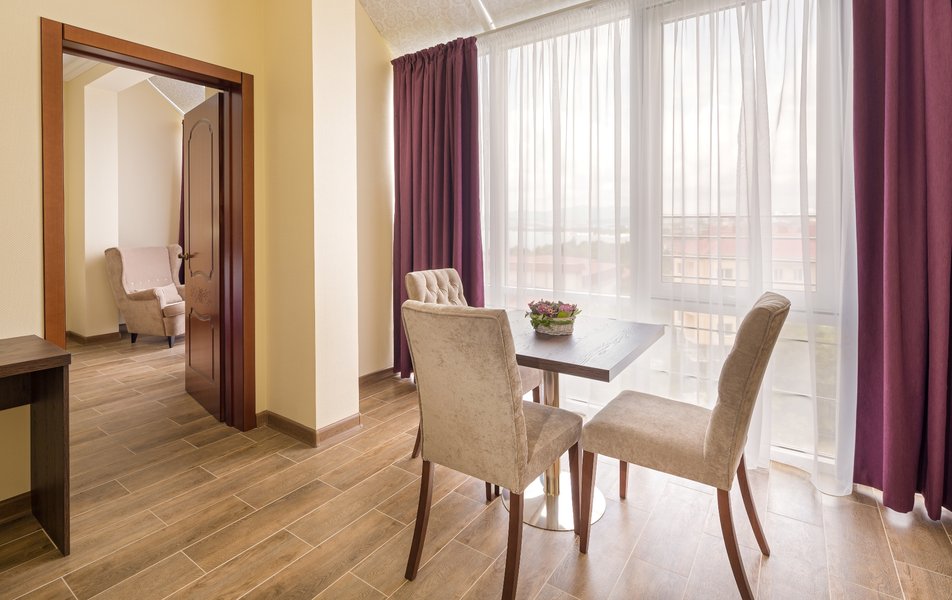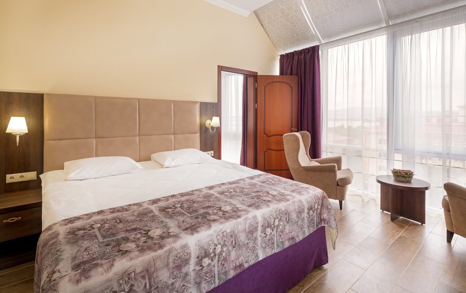 Великолепный отель для спокойного отдыха, кухня прекрасная - хороший выбор блюд, всё свежее и по домашнему вкусное)))отзывчивый персонал, в номерах супер чисто и есть всё необходимое, матрас и подушки настолько хороши, что не отпускают по утрам) вид с балкона на море и горы, до моря после завтрака размеренным шагом минуты три))) Если в Геленджик - только этот отель