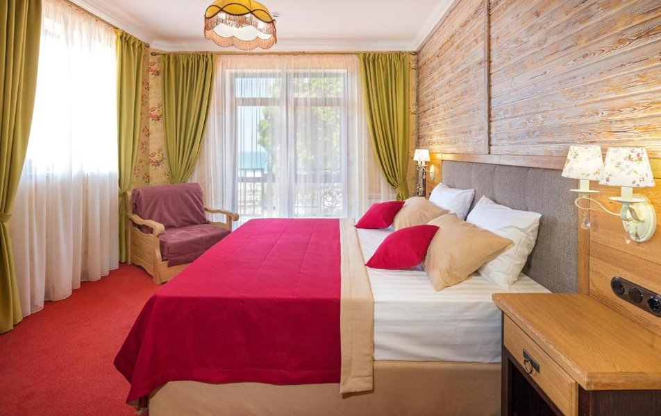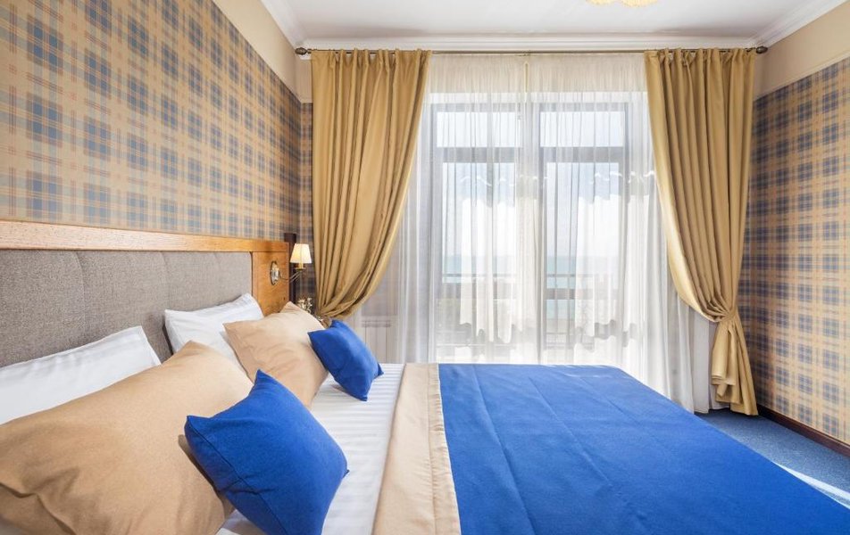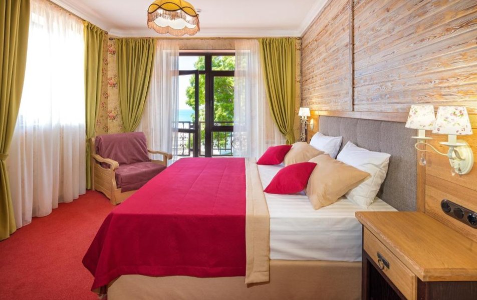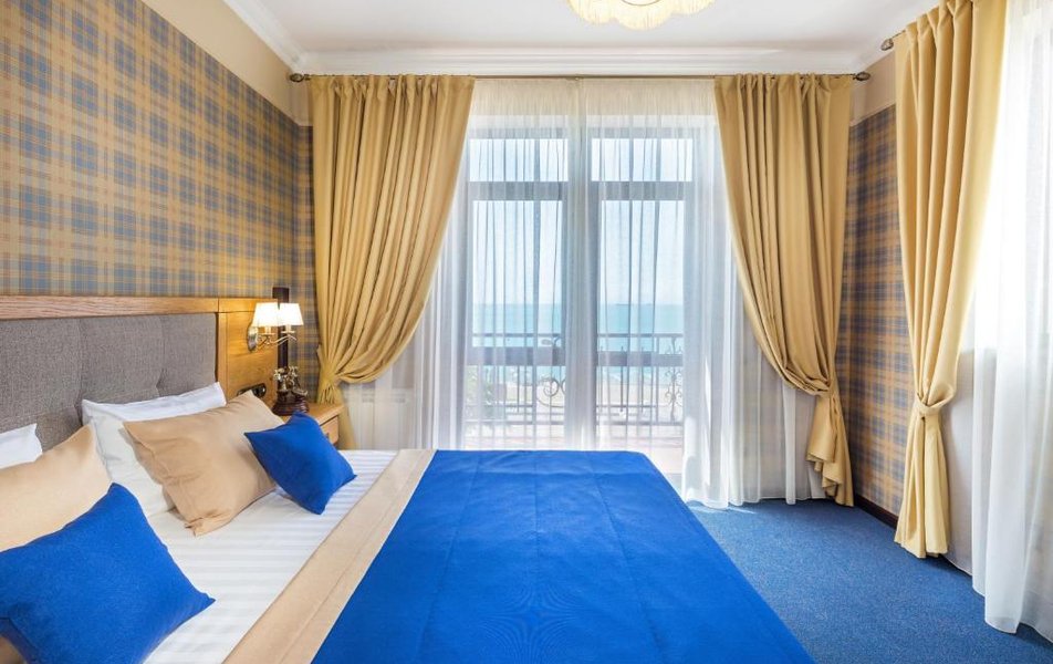Стандартный 2-местный (вид на море) Количество комнат: 1-комнатный Тип номера: Стандартный Вид из номера: на море Кол-во номеров: 10 Кол-во основных мест: 2 Площадь (кв. м): 16 Балкон: с мебелью и сушилкой Мебель: вешалка, зеркало, кровати односпальные /одна двуспальная кровать, прикроватные тумбочки, стол, стул, шкаф-купе Оборудование: кондиционер, мини-холодильник, пляжные полотенца, сейф, телевизор ЖК, телефон Санузел: с душевой кабиной, тапочки, туалетные принадлежности, фен, халат Сервис: Wi-Fi бесплатно, room-сервис, мини-бар: платно, смена полотенец, смена постельного белья, уборка номера, услуги телефонной связи по территории отеля