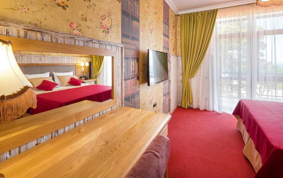 Стандартный Комфорт 2-местный Количество комнат: 1-комнатный Тип номера: Стандартный Вид из номера: на горы Кол-во номеров: 8 Кол-во основных мест: 2 Площадь (кв. м): 21 Балкон: с мебелью и сушилкой Мебель: вешалка, зеркало, кресло, кровати односпальные /одна двуспальная кровать, прикроватные тумбочки, стол, стул, шкаф-купе Оборудование: кондиционер, мини-холодильник, пляжные полотенца, сейф, телевизор ЖК, телефон Санузел: с душевой кабиной, тапочки, туалетные принадлежности, фен, халат Сервис: Wi-Fi бесплатно, room-сервис, мини-бар: платно, смена полотенец, смена постельного белья, уборка номера, услуги телефонной связи по территории отеля