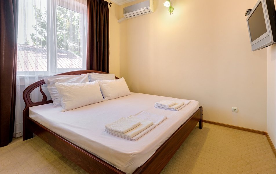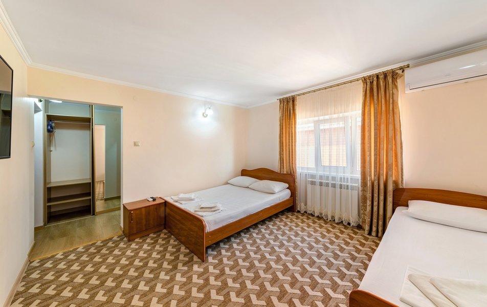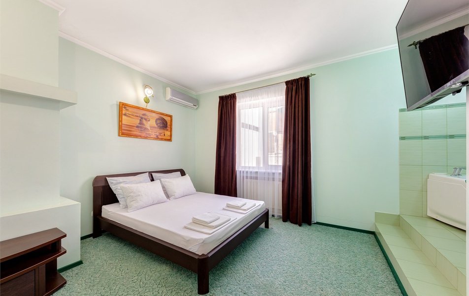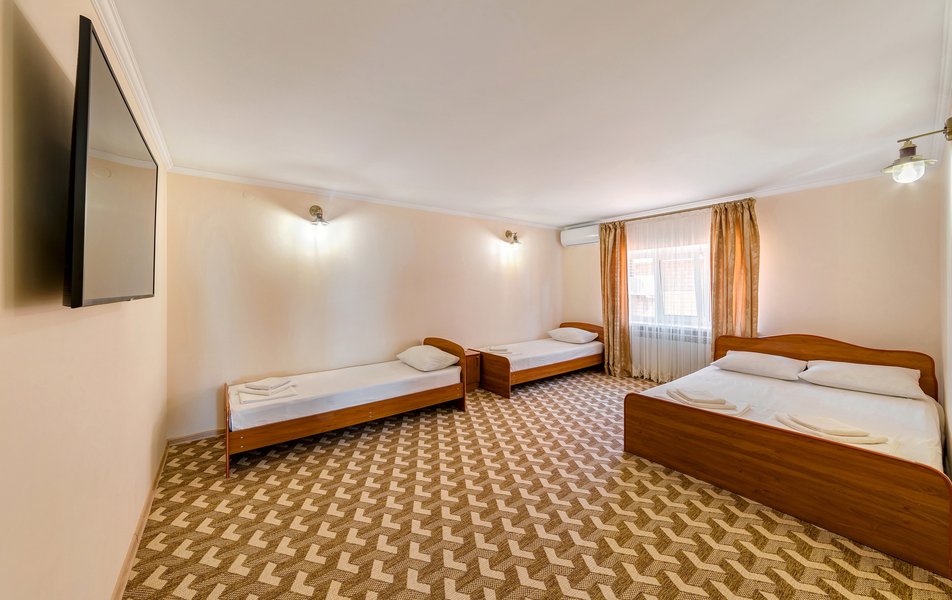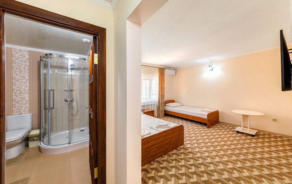 lОтдыхали в конце июля-начале Отдыхали в конце августа, цена более чем приемлемая. На 4-х номер 4000 р сутки. Цена-качество полностью соответствуют, если бы такой номер был возле набережной, стоил бы в 2 раза дороже, потому что номер шикарный. Номер однокомнатный, новый, огромный. Хороший санузел. Кухня на 3 номера. Большой балкон. Думали что будет тесновато делить одну кухню на 3 номера, но нет, абсолютно комфортно. Сдружились с соседями. Одна пара была из Москвы, вторая из Тольятти. Мы шикарно провели время.