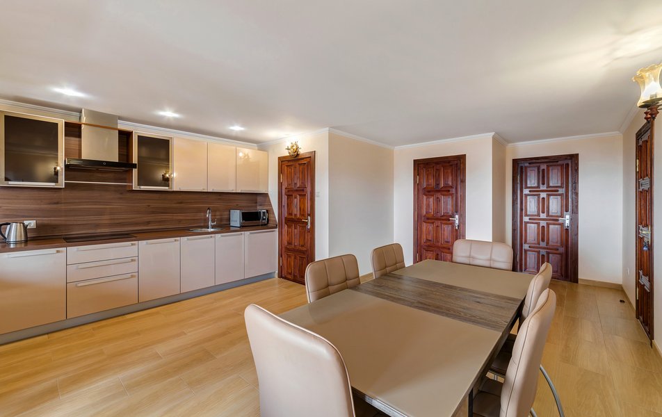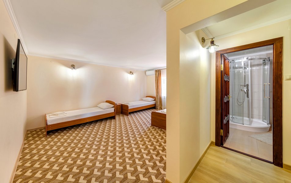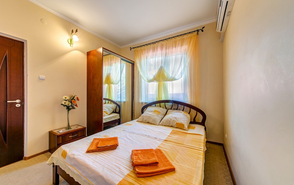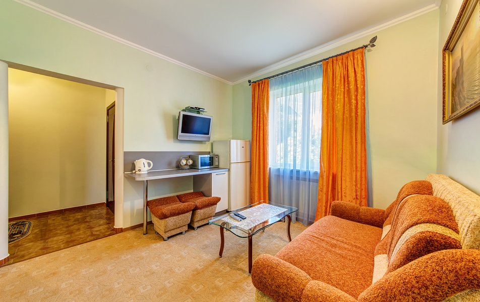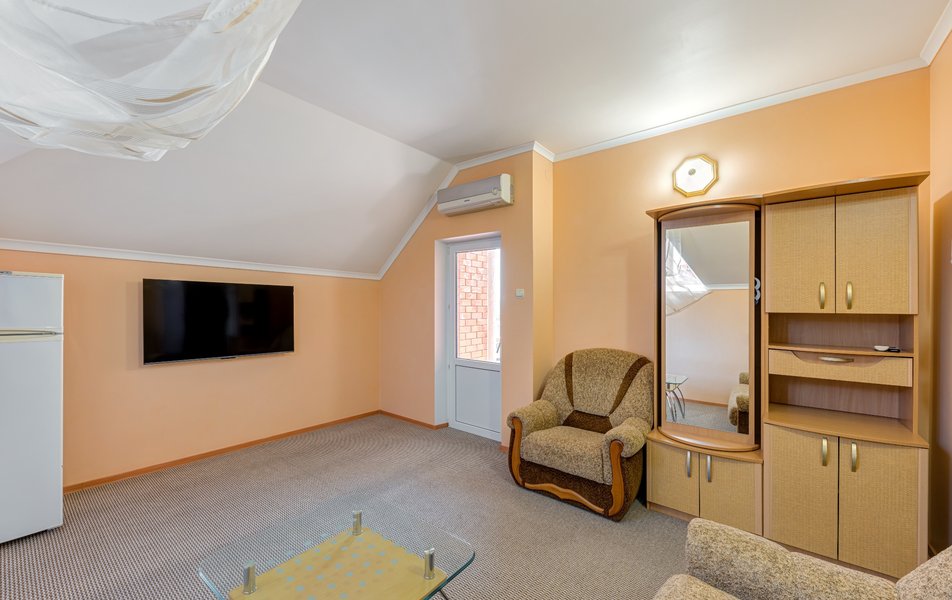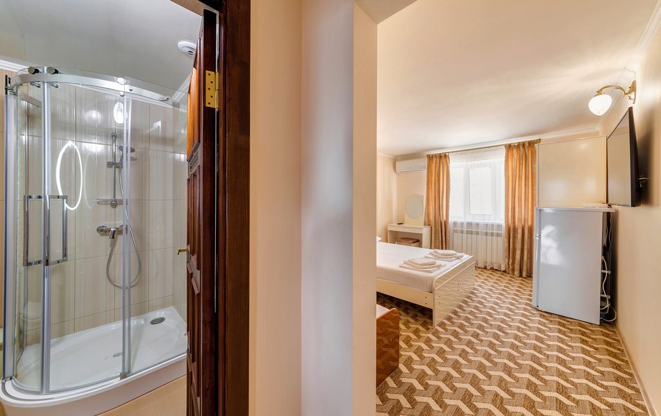 lОтдыхали в конце июля-начале Отдыхали в конце августа, цена более чем приемлемая. На 4-х номер 4000 р сутки. Цена-качество полностью соответствуют, если бы такой номер был возле набережной, стоил бы в 2 раза дороже, потому что номер шикарный. Номер однокомнатный, новый, огромный. Хороший санузел. Кухня на 3 номера. Большой балкон. Думали что будет тесновато делить одну кухню на 3 номера, но нет, абсолютно комфортно. Сдружились с соседями. Одна пара была из Москвы, вторая из Тольятти. Мы шикарно провели время.