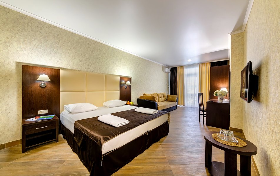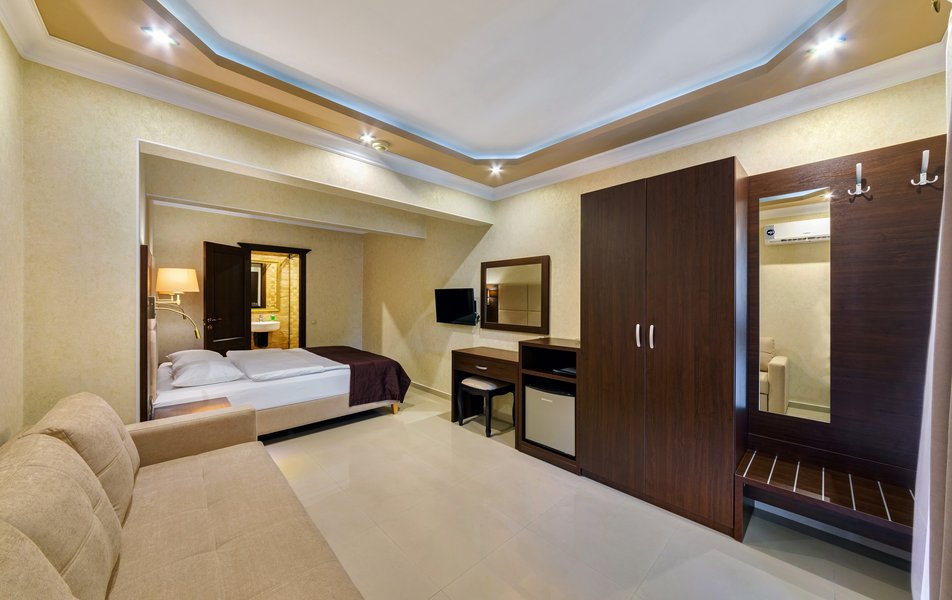 Хотелось бы своим отзывом помочь туристам и предостеречь их от посещения этого отеля. В августе 2018 года , основываясь на данных официального сайта отеля забронировали номер 2-комнатный люкс при помощи туроператора. При заселении в номер обратили внимание на зловонный запах и общий вид номера, который явно не соответствовал тому, что предлагалось на официальном сайте отеля по представленным фотографиям. Мы обратились к администратору за разъяснениями и не получили ни одного ответа, кроме того что во всем виноват туроператор. Мы попросили предоставить книгу отзывов и предложений, которую ждем вторые сутки и обещания ее наличия. После чего нам предоставили другой Номер, явно категории выше. Кроме того никакой информации о юр.лице отеля и контактов руководства мы не нашли а управляющий спросил для чего нам это нужно и не надо никому портить настроение потому что нас расселили в хороший номер. Практически с первых минут заселения нам был испорчен отдых.