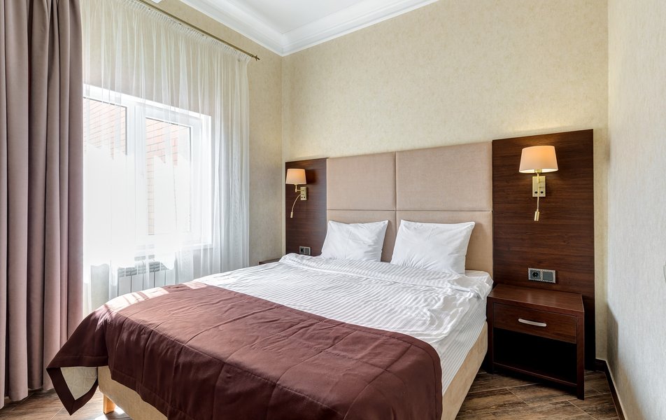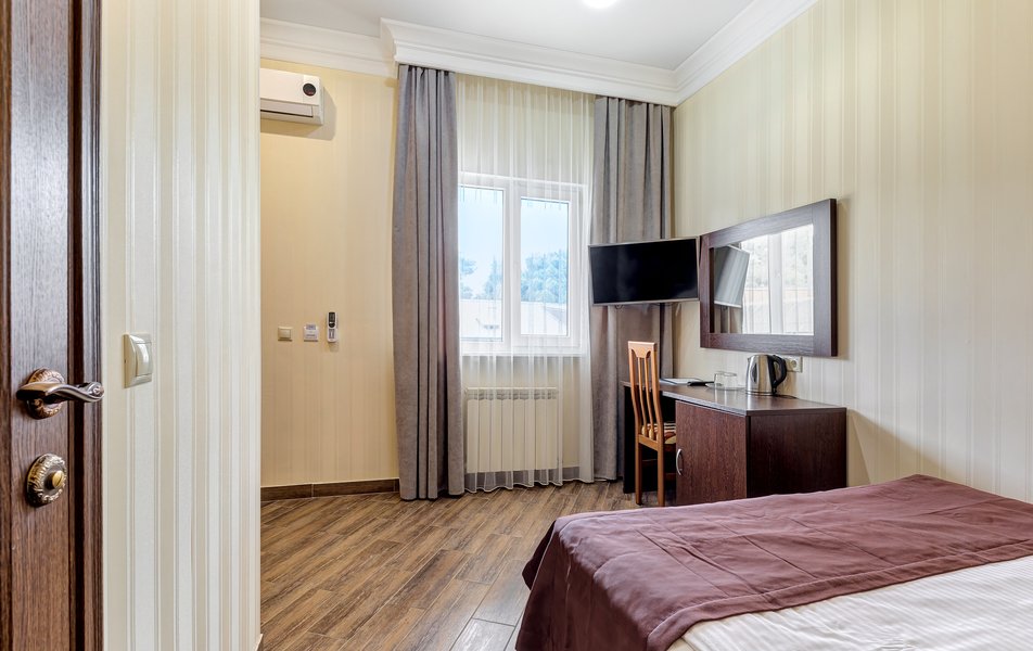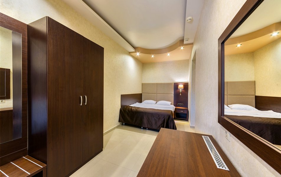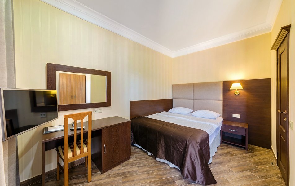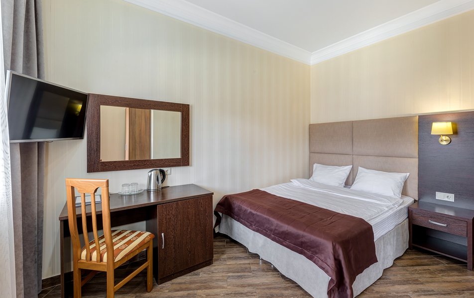 Были на майские праздники с семьей. Расположение не плохое, бассейн с подогревом. Так называемая, парковка пара машиномест, остальное либо прям на дороге, либо ехать искать платную парковку. При заселении в номер будьте готовы, что номера на фото с сайта и в наличии будут сильно отличаться. У нас произошел казус при заселении, и пришлось немного поругаться, чтобы поменяли номер. Но самое плохое впечатление произвело питание. Очень скудное и самого низкого качества. Выбора нет вообще. Могли бы сделать хоть на завтрак выбор из пары каш. Но нет, если дают манную, то только ее, если кто-то ее не ест, то остается вообще голодным. Завтракали в других местах. Более менее обед, понравилась окрошка. На ужин сосиска и тушеные овощи. Муж оставался голодным. Если туда ехать, то без питания. Официантки в кафе и горничные молодцы. Номера чистые, по просьбе меняли полотенца и давали дополнительное белье.