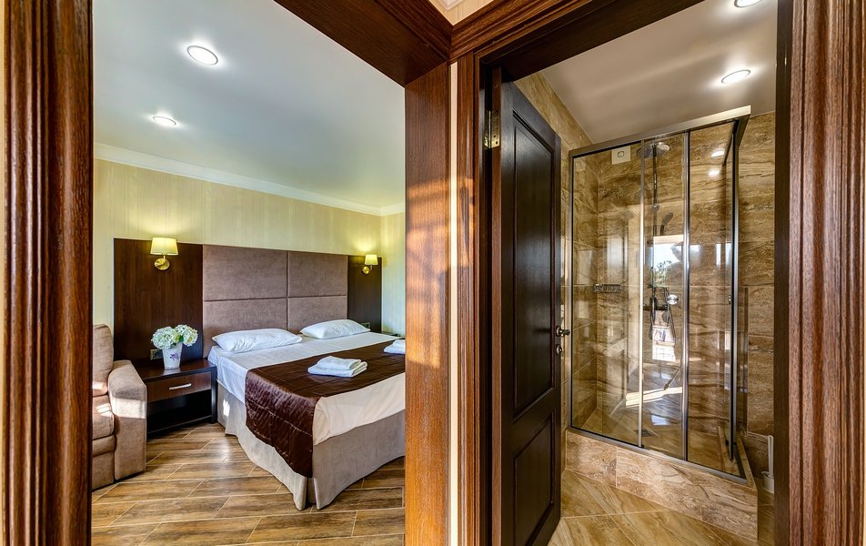 Отдыхали мы с 24 по 26 июля в номере категории ЛЮКС️( об этом ниже ) 1. Парковка. Парковки рядом с отелем нет (вообще нет! совсем!) То есть, чтобы достать вещи из багажника машины, нам пришлось перекрыть движение одной из полос (а отель находится на улице, где всего 2 полосы движения транспорта ⬇️⬆️). Бесплатная стоянка отеля находится за 2️километра от него (обратно либо на такси, либо 30 минут пешком ). 2. Отель и номер. Сам отель небольшой - 4-х этажный. Наш номер (двухкомнатный ЛЮКС️) располагался на 4-ом этаже. Номер - не больше 25 кв.м. (очень маленький ). Балкона нет. Фена нет. Сейф - маленький ящичек, стоящий просто в шкафу (не закреплён), который может без труда унести с собой даже ребёнок . Но сейф и не понадобился вовсе, потому что за 3 дня, что мы были в отеле, номер НИ РАЗУ не убрали, даже мусор не вынесли ни разу (добавлю ещё «красок» - за туалетной бумагой пришлось идти самим! на ресепшн! ). Телефона для связи с ресепшн в номере тоже нет Даже коридор на 4-м этаже за это время не подмели и не помыли ни разу! Та же история с лестницей 3. Питание. Да, мы знали, что «все включено» - это комплексное питание 3 раза в день полдник чай, кофе, напитки и местный алкоголь (его не пробовали). Но️ Питание - столовское, невкусное . Выбора нет никакого, и все время что-то заканчивается: на ужин нам не хватило фруктов, на полдник мороженого, даже чая на один из завтраков просто не оказалось , а кофе только растворимый, не самого высокого качества (мягко говоря). 4. Бассейн. Чистый, это правда. Не подогревался (эта функция, наверное, только на более холодный период рассчитана). Но️гидромассаж (если он там вообще есть - не уверена) за 3 дня так и не заработал. Водопада не увидела вовсе Вывод: очень хорошо изучайте отзывы об отелях 3* на «все включено» в России. Этот отель, однозначно, к посещению не рекомендую.