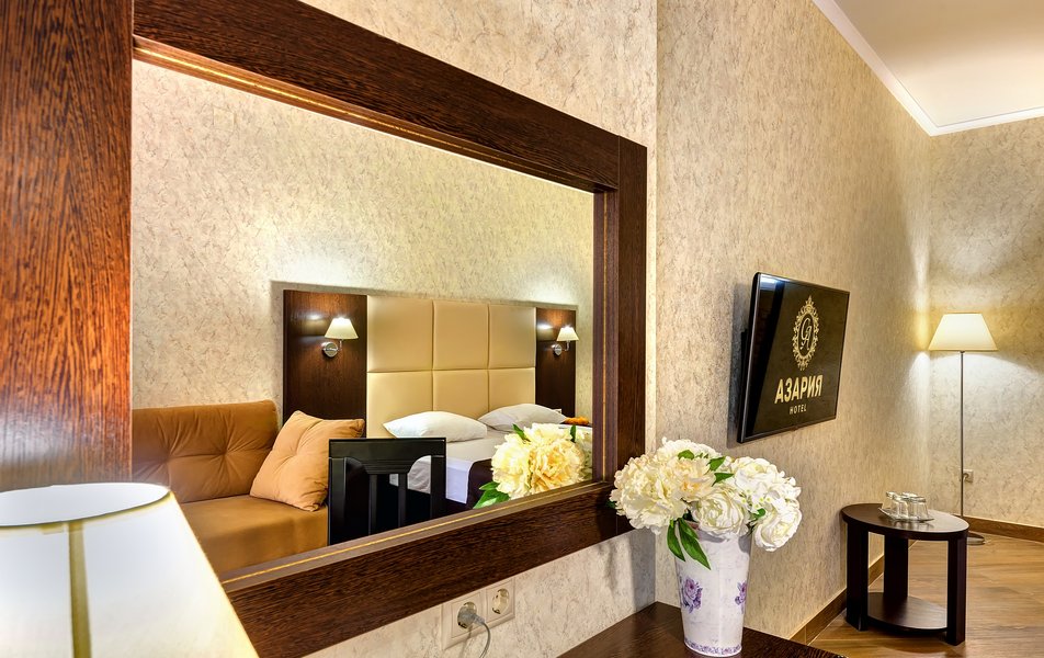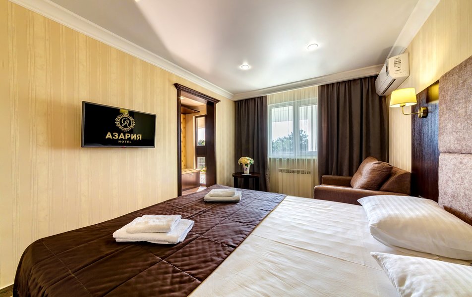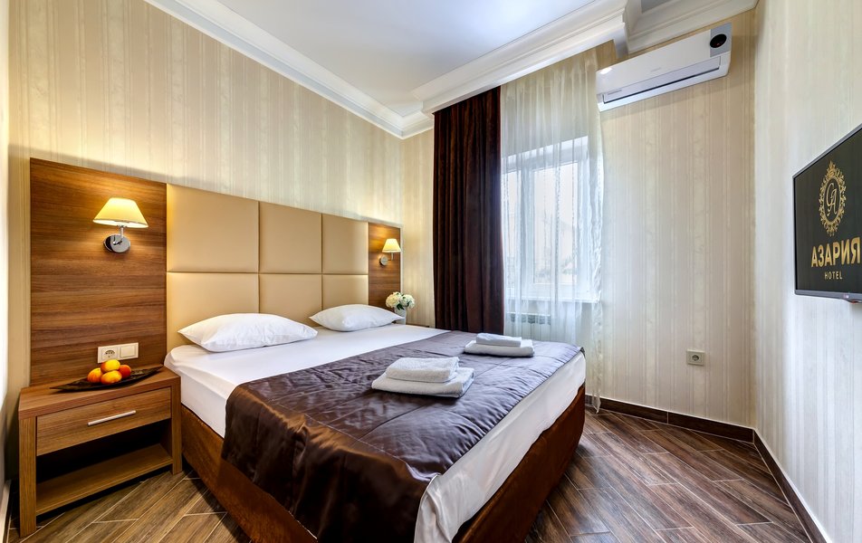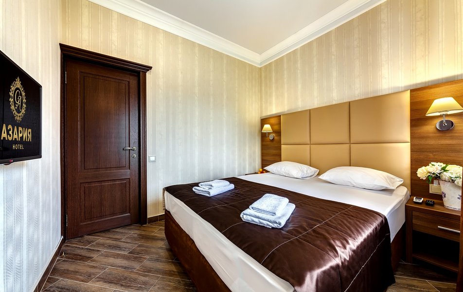 Всем привет! Ну вот решил написать отзыв о нашем посещении отеля Азария в Геленджике ... Мы с семьей долго планировали отдых, пересмотрели множество отелей... Выбор пал на Азарию, выбор сделали по нескольким критериям ... 1. Местонахождение ( рядом от моря, набережной) 2. Питание ( завтрак, обед и ужин, и помимо наливают вино и пиво, пусть не высшего качества, но пить можно и даже более того приятно) 3. Цена ( просмотрев множество отелей, нас устроила цена именного этого отеля. В Геленджике множество отелей, но и цены довольно кусучие) Мы созвонились с администратором, нам вежливо ответили и все рассказали об отеле... Кстати нам предложили трансфер, мы на поезде прибывали в Новороссийск. Нас встретил у вагона водитель, помог донести наш багаж, за это ему отдельное спасибо... По пути в Геленджик Водитель предложил нам остановку, где можно было сделать фото ( отличный вид).. Прибыв в отель, нас встретил администратор Юрий, очень вежливый и добродушный человек. На территории присутствует бассейн , он конечно же маленький, но в обеденное время в самый раз))) Номера не большие, но комфортные... Питание честно говоря поднадоело, одно и тоже, но по качеству понравилось... Есть не большая проблема в отеле , отсутствие развлечения для детей... Наша оценка твёрдая 4... Спасибо персоналу))) Удачи!!!