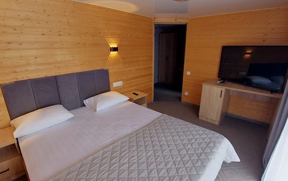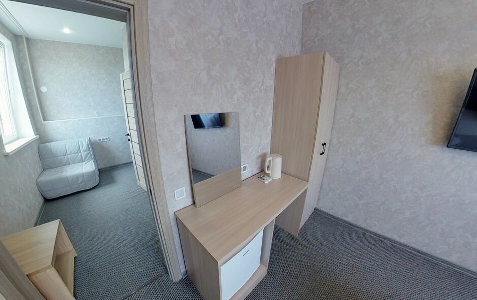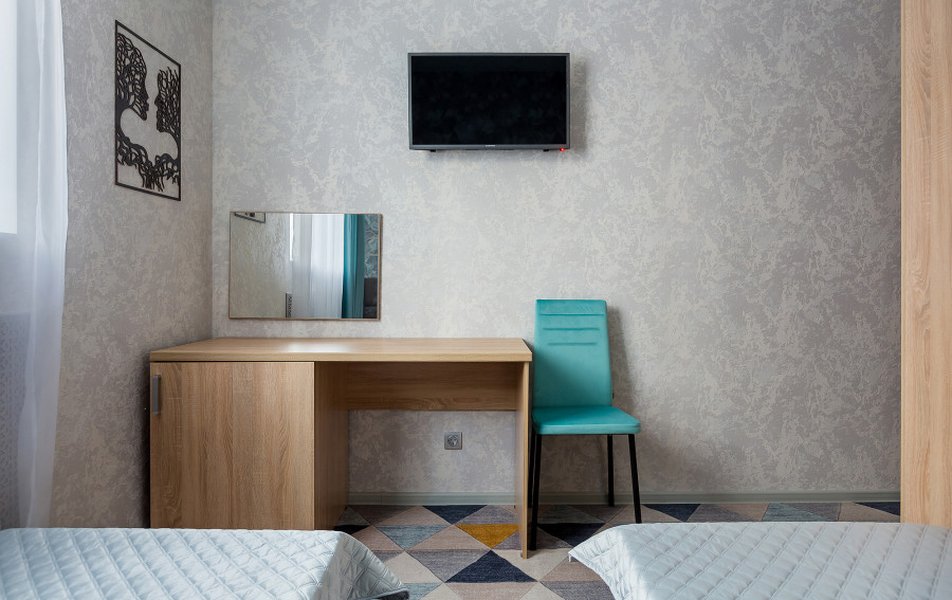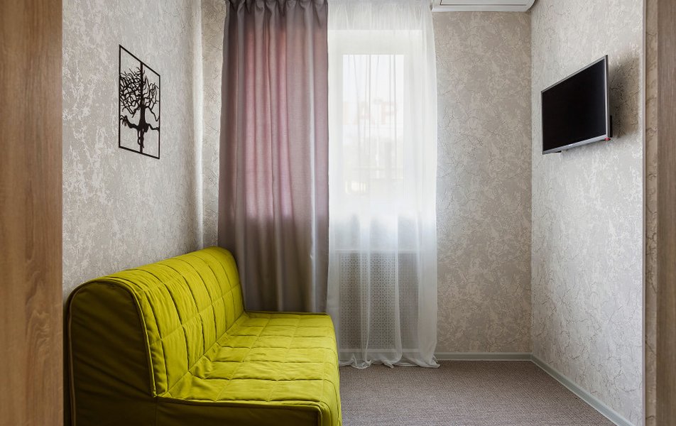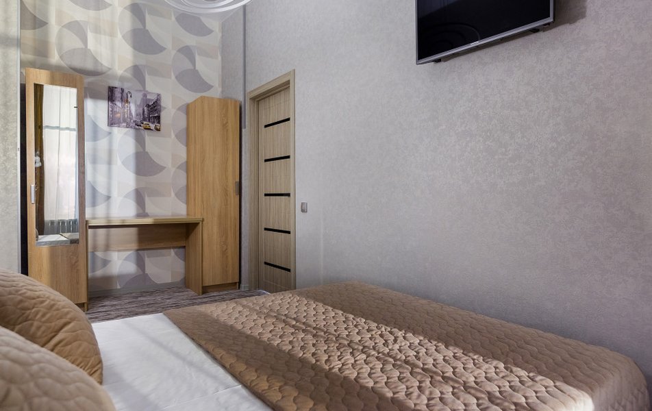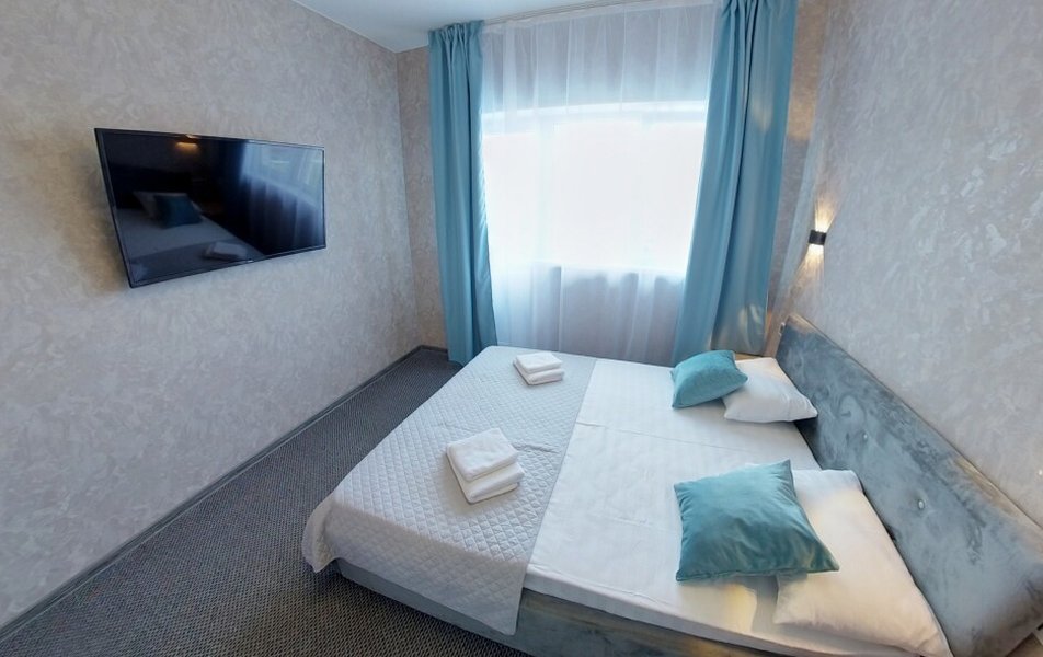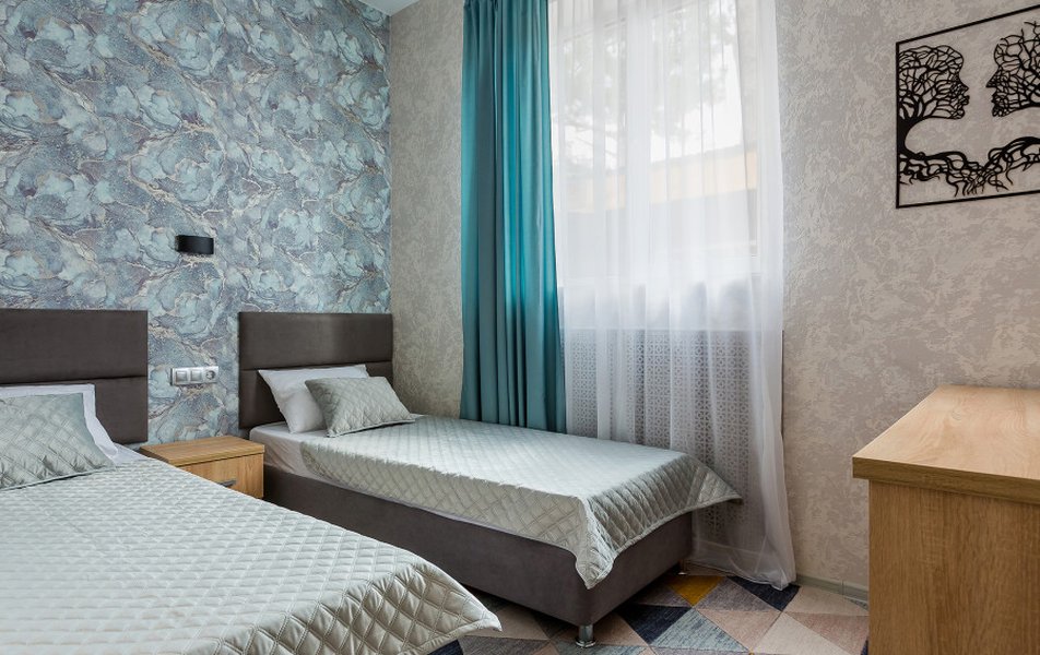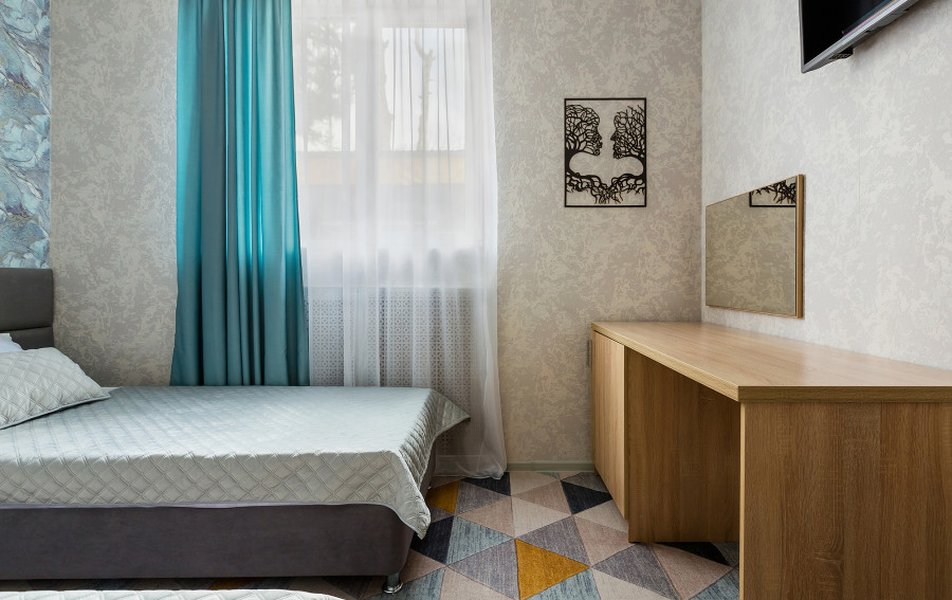 Апартаменты 4-местный 3-комнатный Количество комнат: 3-комнатный Тип номера: Апартаменты Вид из номера: на город: и двор Кол-во доп. мест: 2 Кол-во основных мест: 4 Площадь (кв. м): 52 Мебель: вешалка, диван раскладной, зеркало, кровать двуспальная: 2, кухонная мебель, прикроватные тумбочки, стол, столик журнальный, стол обеденный, стулья, шкаф Оборудование: кондиционер: 3, набор посуды, плита электрическая, телевизор: 3, утюг, холодильник, чайный набор посуды, электрочайник Санузел: 2 санузла: ванная комната и гостевой сан. узел, с душем, тапочки, туалетные принадлежности, фен, халат Сервис: Wi-Fi бесплатно, смена полотенец, смена постельного белья, уборка номера