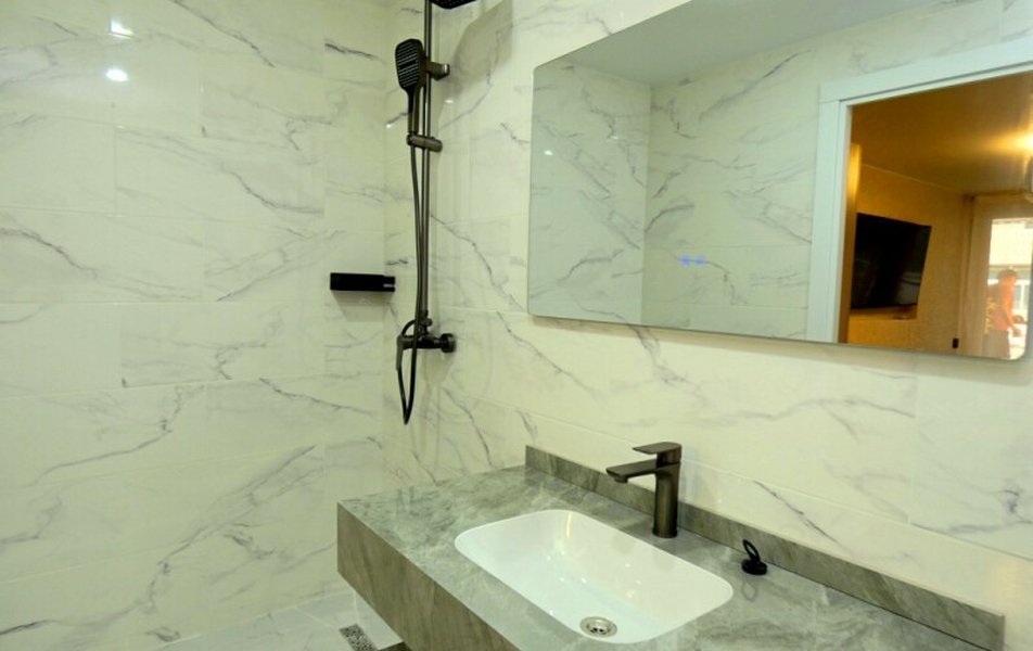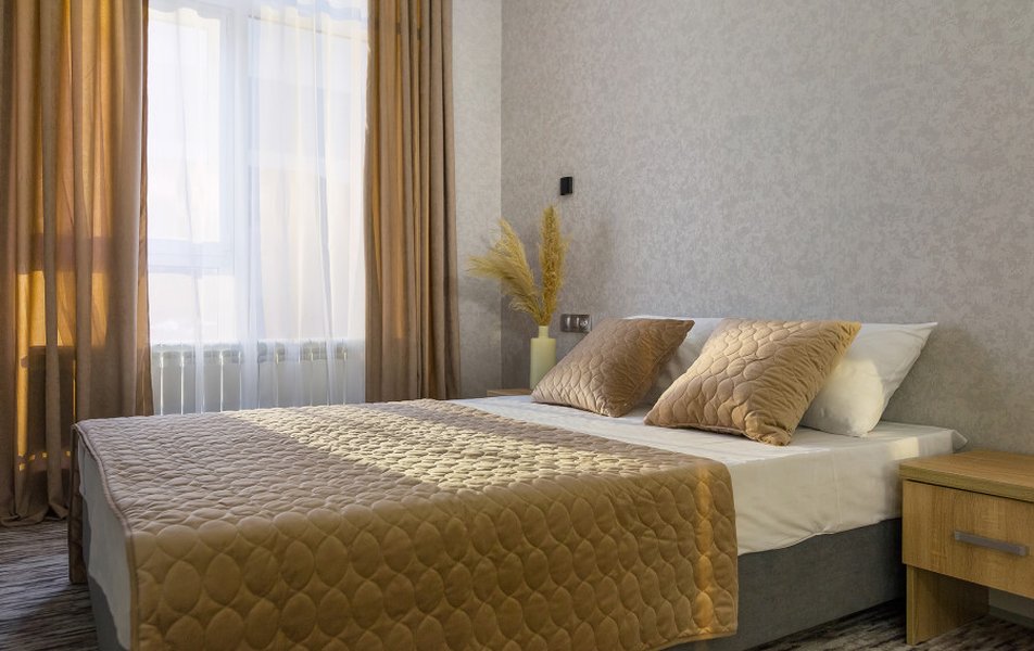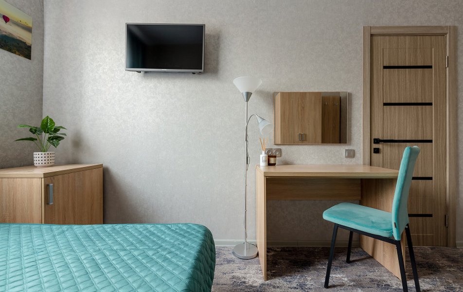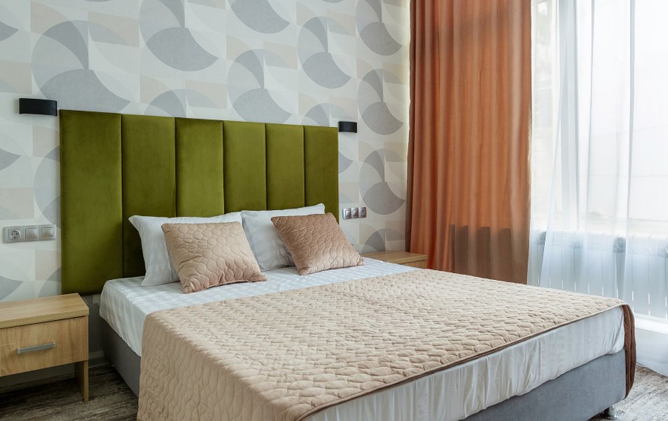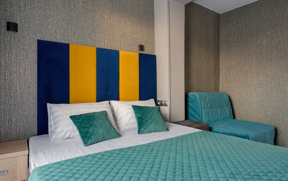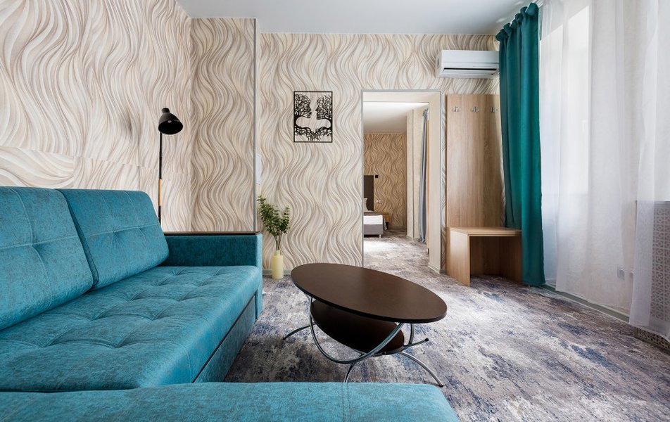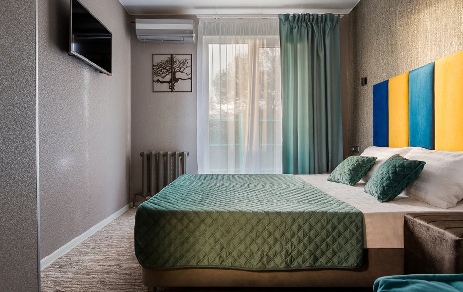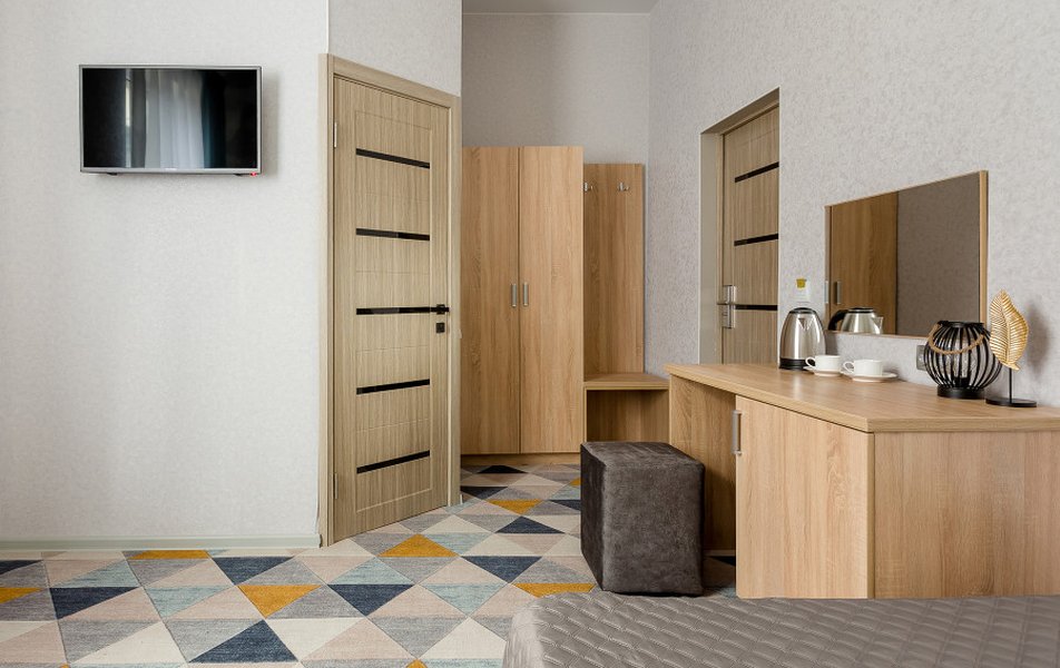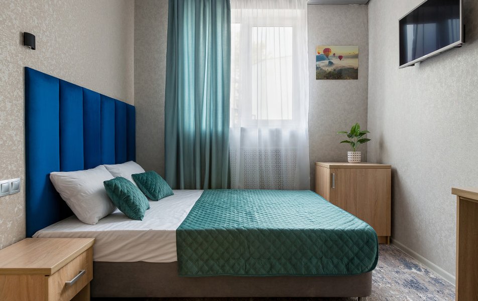 Апартаменты 4-местный 3-комнатный Количество комнат: 3-комнатный Тип номера: Апартаменты Вид из номера: на город: и двор Кол-во доп. мест: 2 Кол-во основных мест: 4 Площадь (кв. м): 52 Мебель: вешалка, диван раскладной, зеркало, кровать двуспальная: 2, кухонная мебель, прикроватные тумбочки, стол, столик журнальный, стол обеденный, стулья, шкаф Оборудование: кондиционер: 3, набор посуды, плита электрическая, телевизор: 3, утюг, холодильник, чайный набор посуды, электрочайник Санузел: 2 санузла: ванная комната и гостевой сан. узел, с душем, тапочки, туалетные принадлежности, фен, халат Сервис: Wi-Fi бесплатно, смена полотенец, смена постельного белья, уборка номера