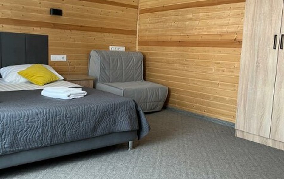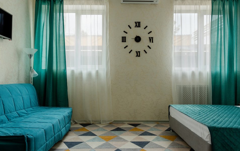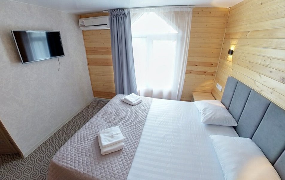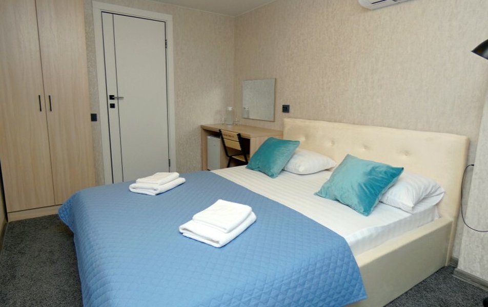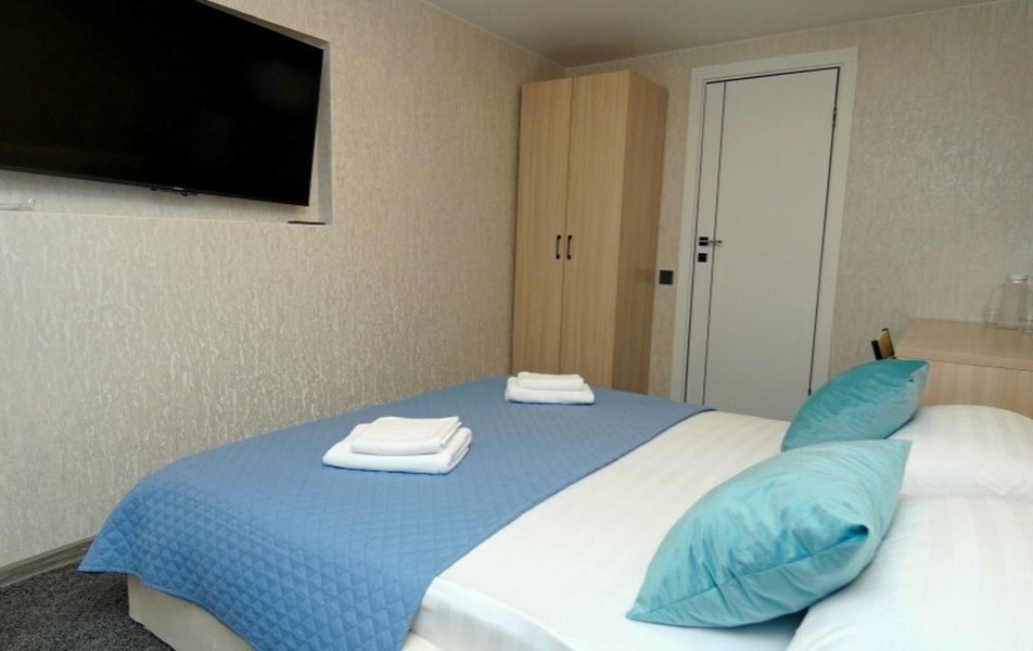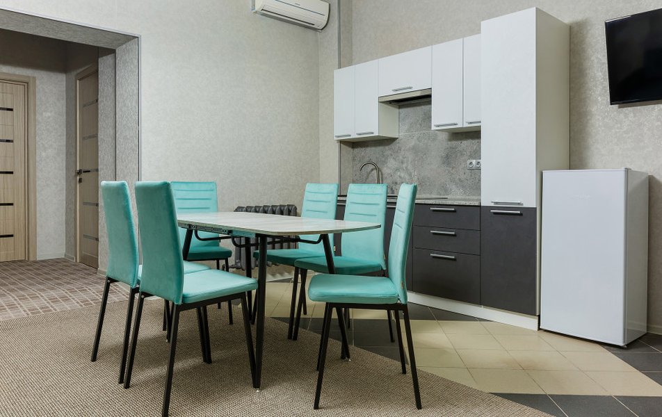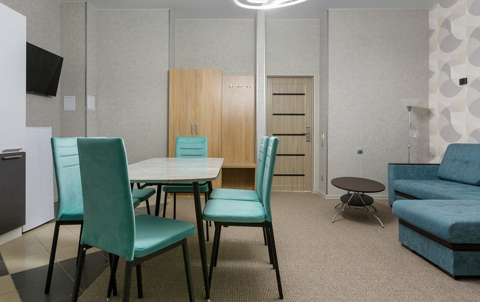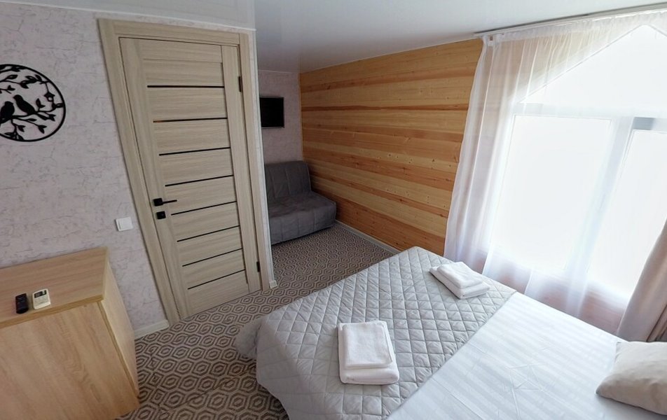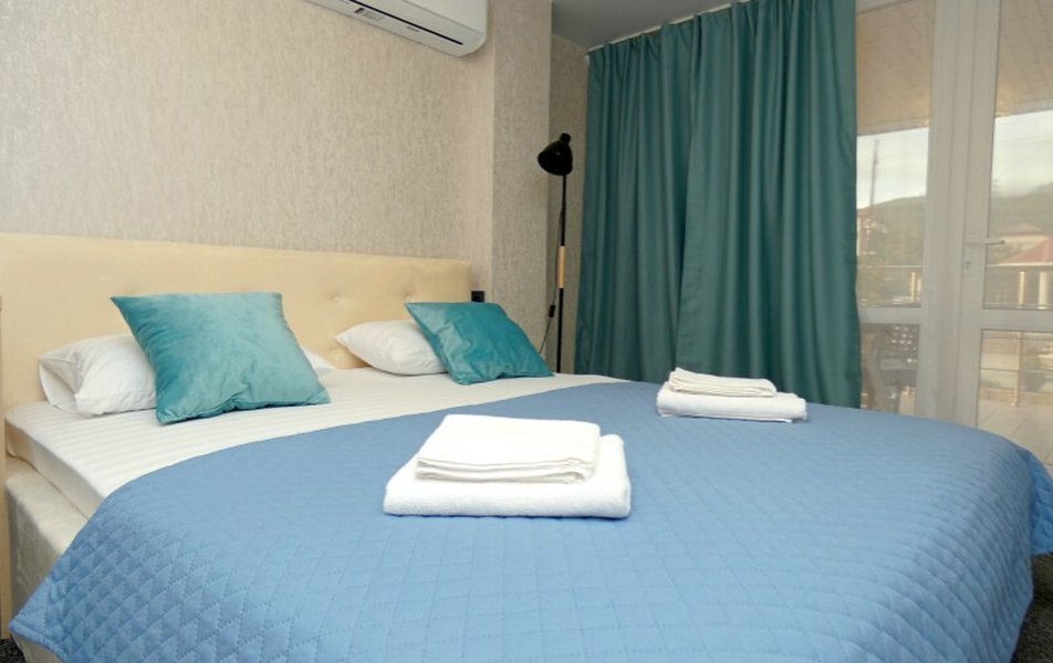 Апартаменты Студия 2-местный 2-комнатный Количество комнат: 2-комнатный Тип номера: Апартаменты Вид из номера: на двор Кол-во доп. мест: 2 Кол-во основных мест: 2 Площадь (кв. м): 62 Мебель: вешалка, диван раскладной, зеркало, кровать двуспальная, кухонная мебель, прикроватные тумбочки, стол, столик журнальный, стол обеденный, стулья, шкаф Оборудование: кондиционер, набор посуды, плита электрическая, телевизор, утюг, холодильник, чайный набор посуды, электрочайник Санузел: 2 санузла: ванная комната и гостевой сан. узел, с душем, тапочки, туалетные принадлежности, фен, халат Сервис: Wi-Fi бесплатно, смена полотенец, смена постельного белья, уборка номера