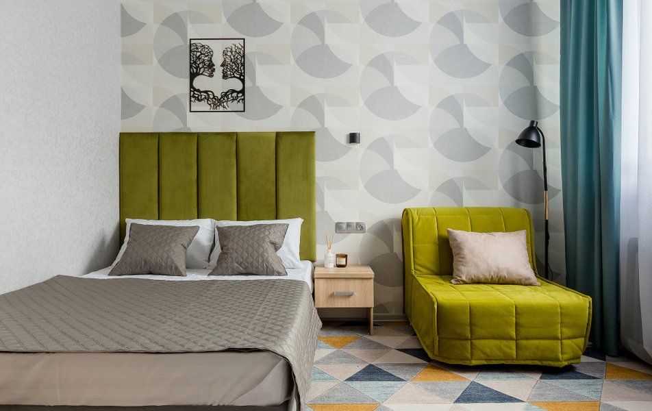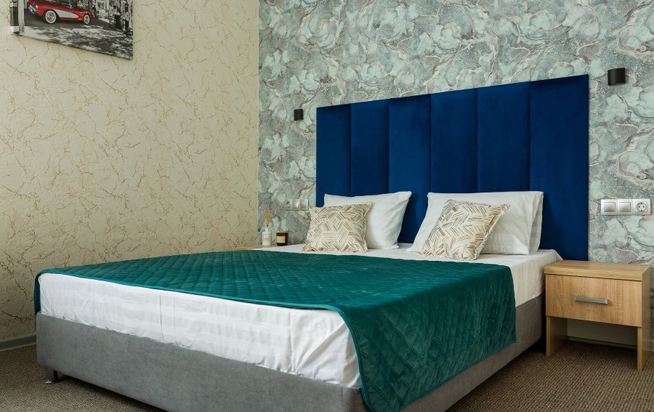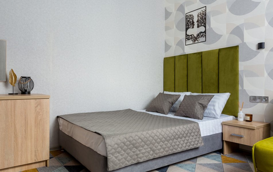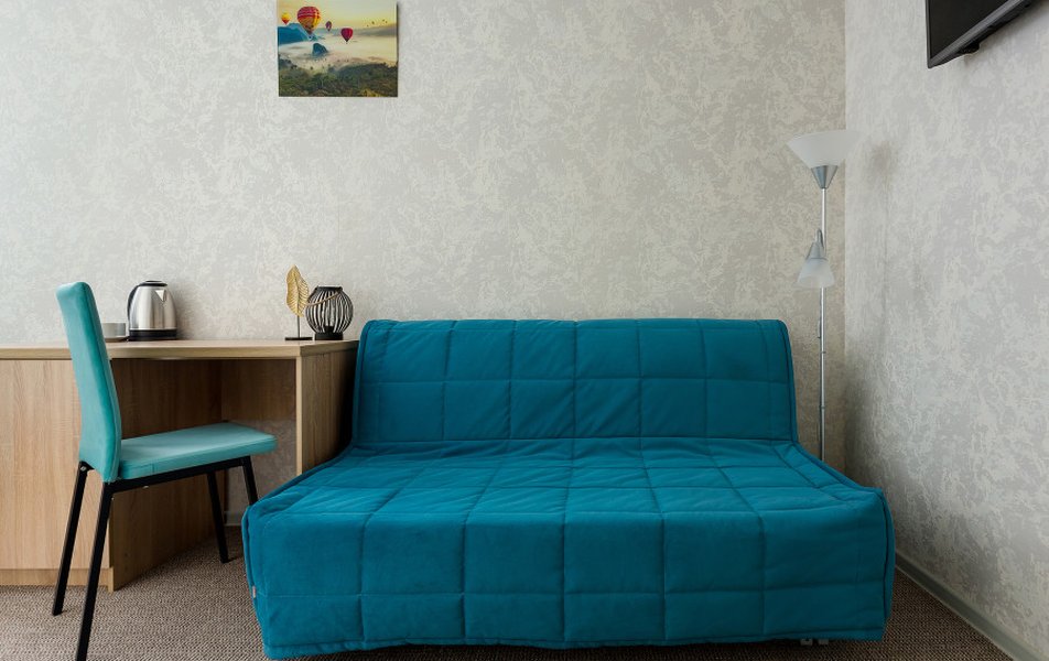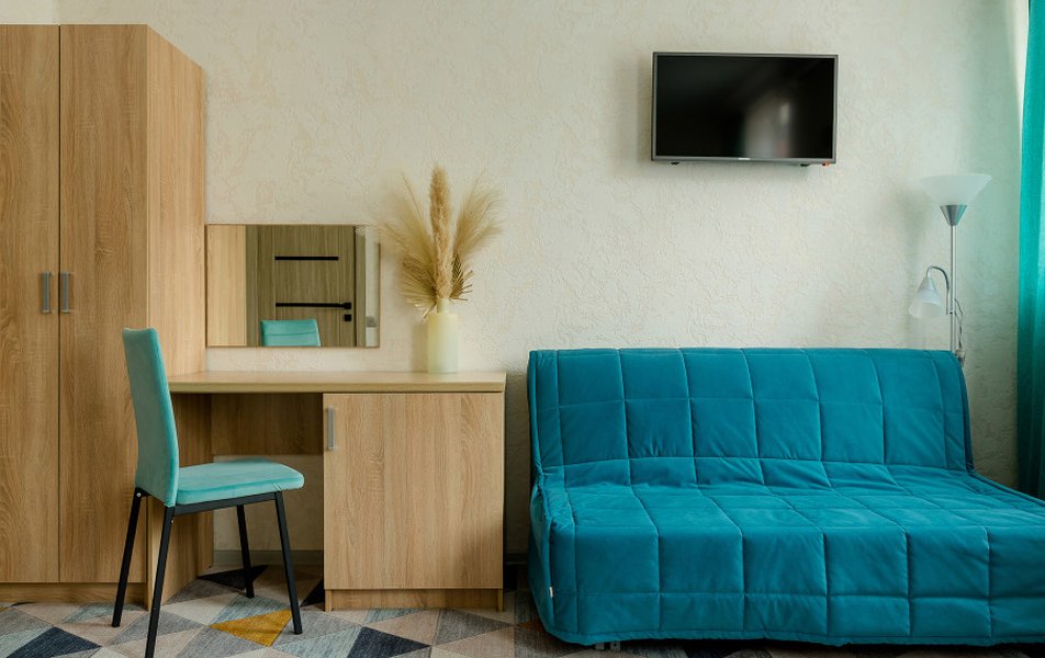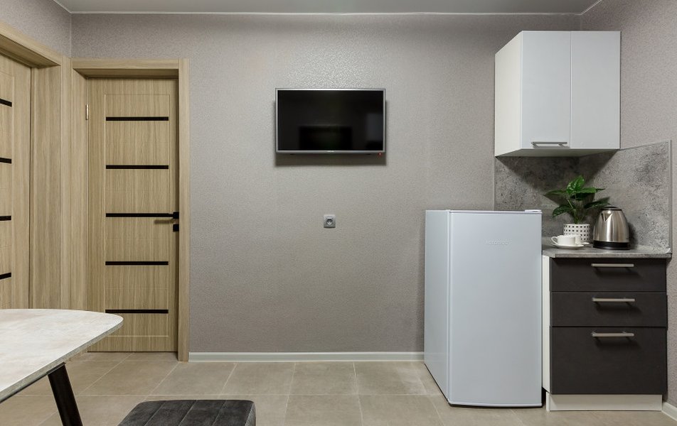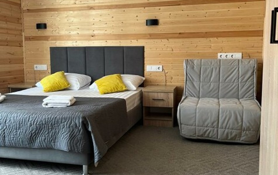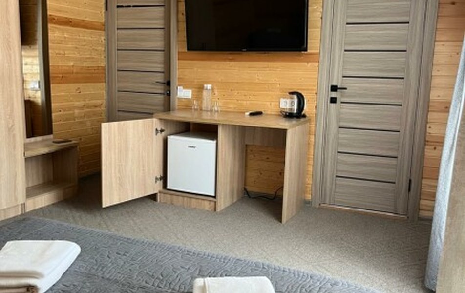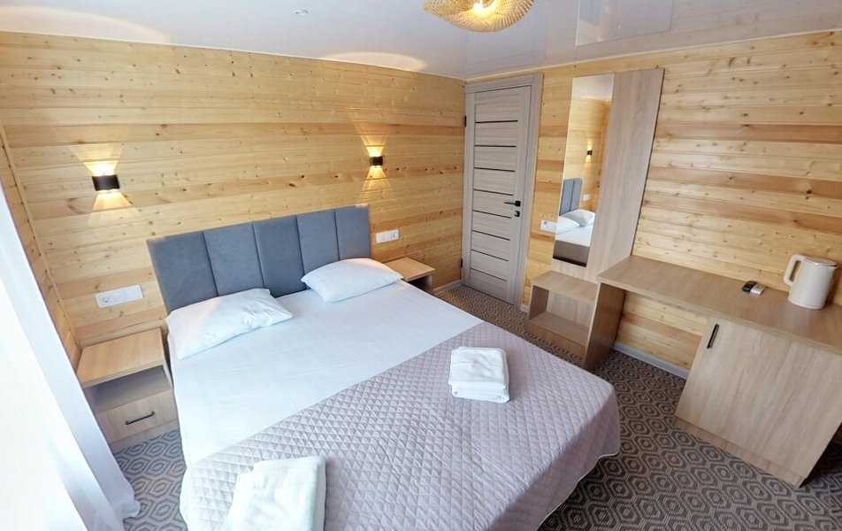 Апартаменты Студия 2-местный 2-комнатный Количество комнат: 2-комнатный Тип номера: Апартаменты Вид из номера: на двор Кол-во доп. мест: 2 Кол-во основных мест: 2 Площадь (кв. м): 62 Мебель: вешалка, диван раскладной, зеркало, кровать двуспальная, кухонная мебель, прикроватные тумбочки, стол, столик журнальный, стол обеденный, стулья, шкаф Оборудование: кондиционер, набор посуды, плита электрическая, телевизор, утюг, холодильник, чайный набор посуды, электрочайник Санузел: 2 санузла: ванная комната и гостевой сан. узел, с душем, тапочки, туалетные принадлежности, фен, халат Сервис: Wi-Fi бесплатно, смена полотенец, смена постельного белья, уборка номера