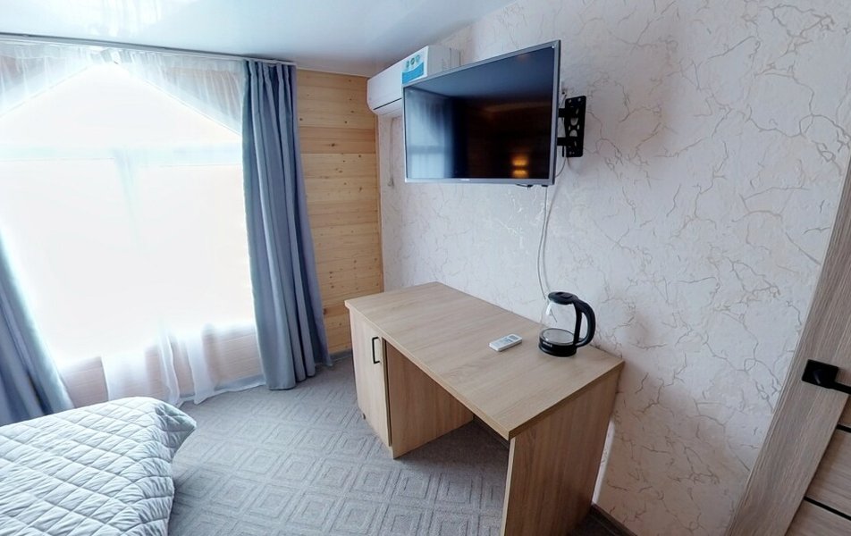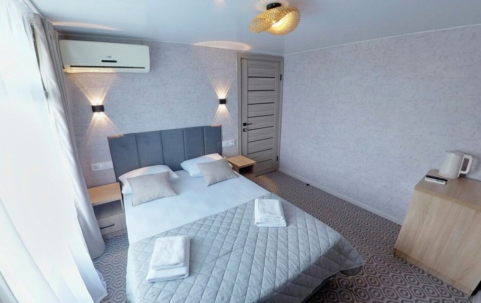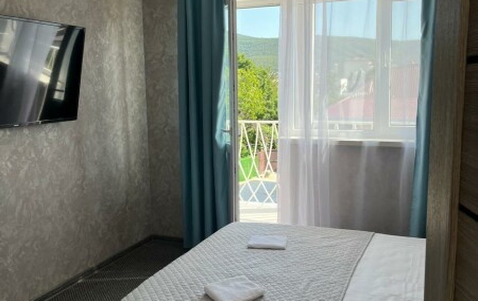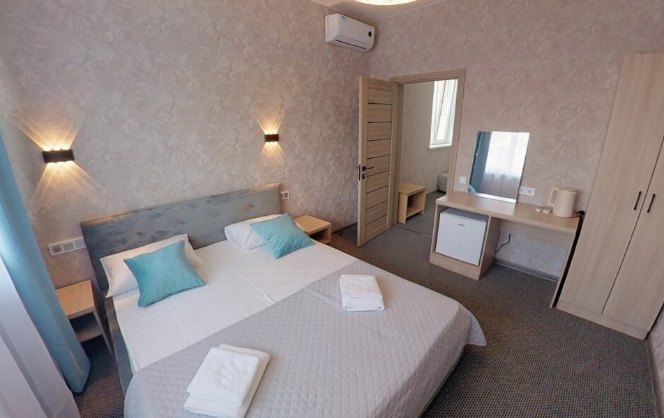 Вилла 4-местный 3-комнатный Количество комнат: 3-комнатный Тип номера: Коттедж/Вилла Вид из номера: на город: и море Кол-во доп. мест: 1 Кол-во основных мест: 4 Площадь (кв. м): 38 Мебель: вешалка, зеркало, кресло-кровать, кровать двуспальная: 2, кухонная мебель, прикроватные тумбочки, стол, стулья, шкаф Оборудование: кондиционер: 3, набор посуды, плита электрическая, телевизор: 3, утюг, холодильник, чайный набор посуды, электрочайник Санузел: 2 санузла: ванная комната и гостевой сан. узел, с душем, тапочки, туалетные принадлежности, фен, халат Сервис: Wi-Fi бесплатно, смена полотенец, смена постельного белья, уборка номера