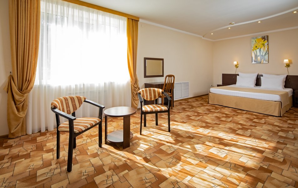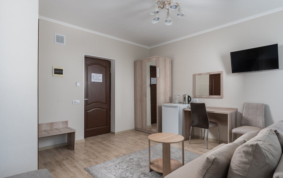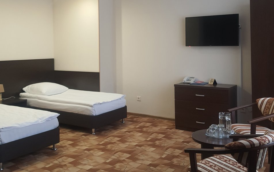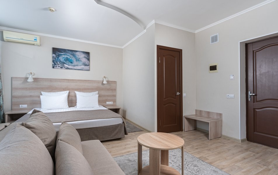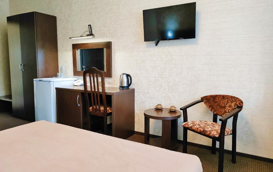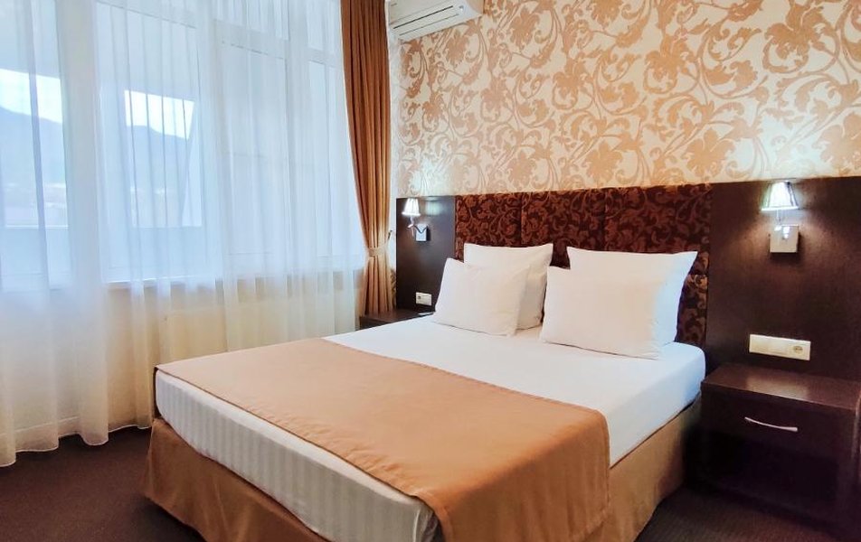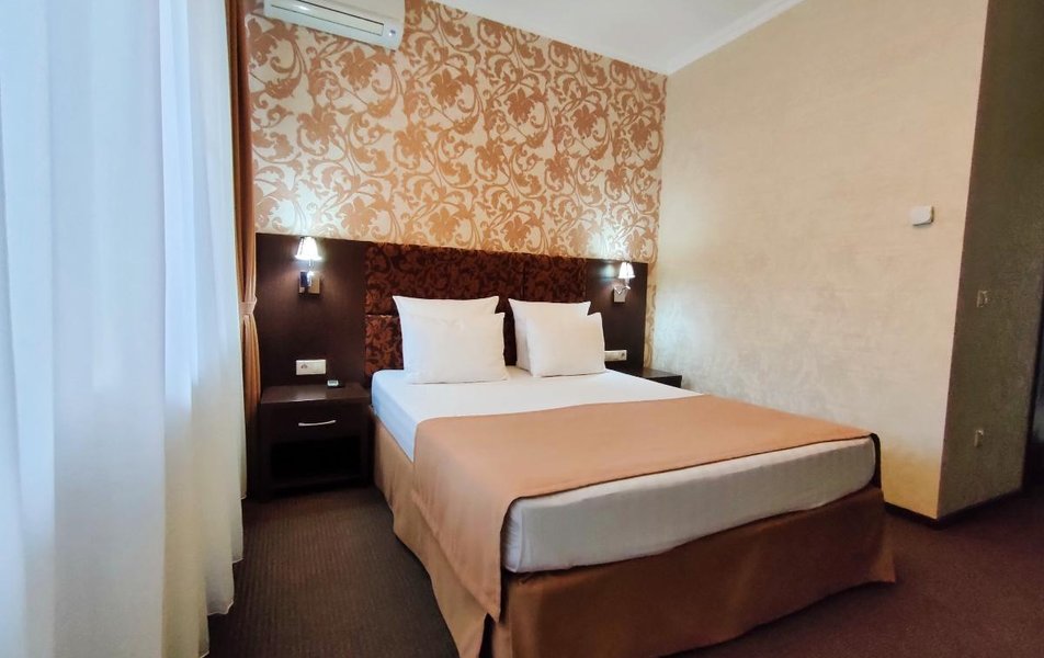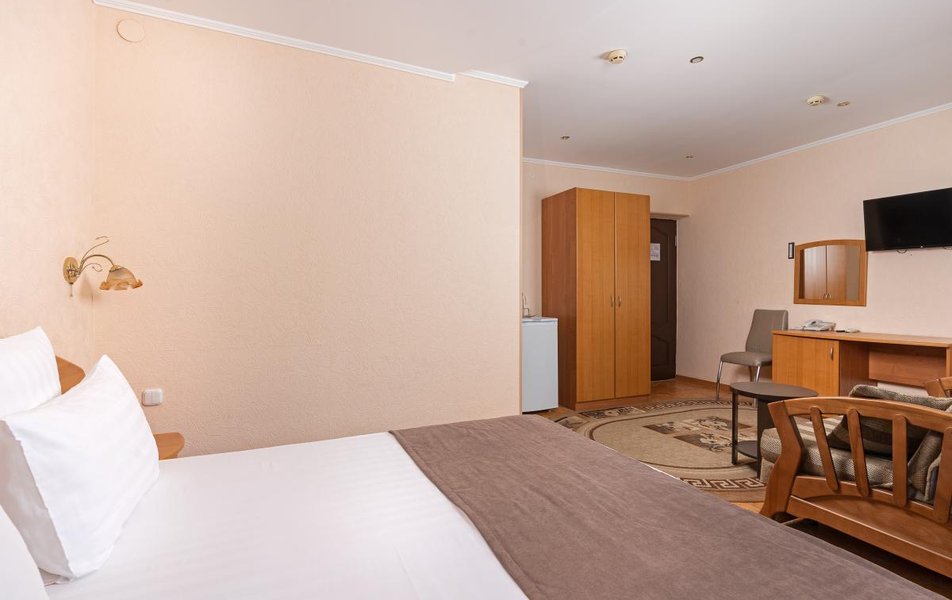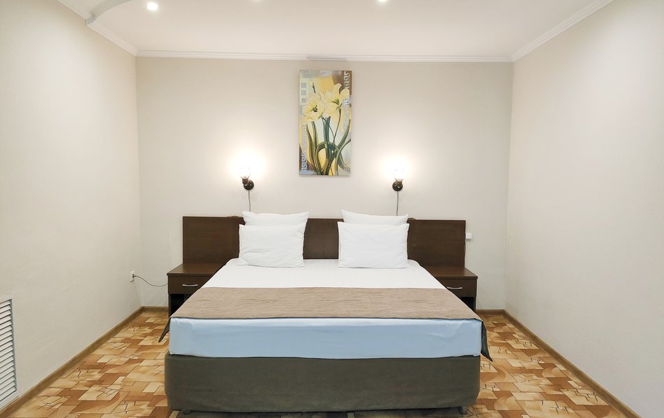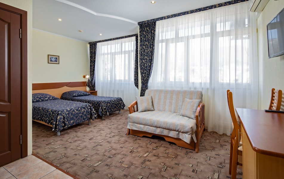 Екатерина Сафиуллина Отдыхали семьёй за свой счёт не по путевке. Что хочется сказать из плюсов первое это бассейн и локация. До моря 1 мин. Все остальное сплошной минус. Начнем с номера: окно открыть невозможно, запах канализации невозможный. Полотенец пляжных нет. На телевизоре один канал. Сантехника в ванной о боже ( воду нужно открывать очень тихо, иначе вас так окатит. Жуть. Далее переходим к питанию. Да шведский стол, нооооо! Каждый день на протяжении двух недель: макароны,гречка,рис и тефтели, курица жареная. Компот и морс один и тот же. Ни пюре картофельного, не картошки по деревенски. Один раз были вареники с картошкой если это можно назвать так. Сплошная каша теста в перемешку с картошкой. Это треш. Ни выпечки, ни сладостей, на ужин нет кисломолочной продукции от слова совсем. Обед и ужин одно и то же каждый день в течении 14 дней. За исключением того,что в обед супы. Да оно вкусно, нооооо одно и тоже 14 дней три раза в день. Это через 4 дня до тошноты. Хочется покушать отбивные, пельмени, манты. Выпить чай с пироженкой. Ноо к чаю печенье с начинкой , разрезанное на две или три части каждая Стоимость не малая, мы за 12 дней отдали 270 тысяч на 4 человека. Не рекомендую от слова совсем данный отель за такие деньги. Если за вас оплачивает предприятие, то да. Не обидно будет. Но за свой счёт ни в коем случае. Социальная столовая причем очень социальная за 270 тысяч и запах канализации это ужасно. Вечером ходили в 5 ку и покупали ночной дожор))) . То есть отдай такие деньги и ещё покупай еду. Пансионат больше подходит, чем отель к данному заведению. За стенкой из же столовая, но платная тут вуаля. Разнообразие сразу заметно,ооо платите деньги к тому, что отдали. Вам там и чизкейк и фри детям и соки на выбор. А не морс из вишни 14 дней. Будьте внимательны по брони данного "отеля" .