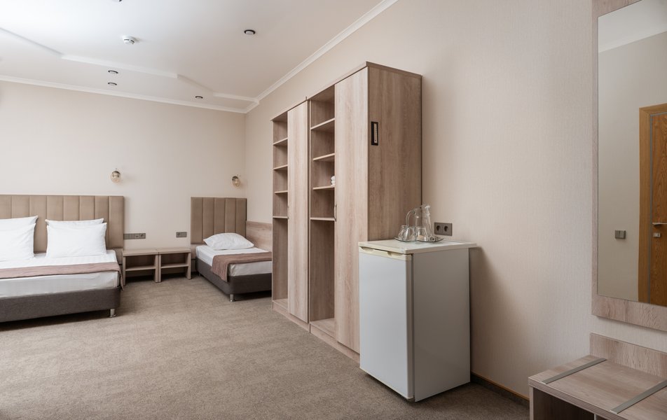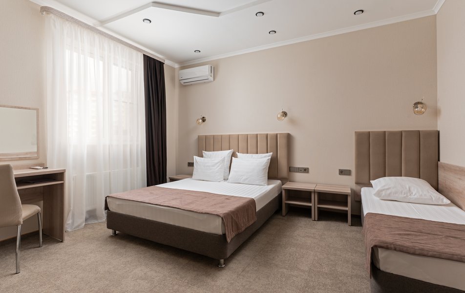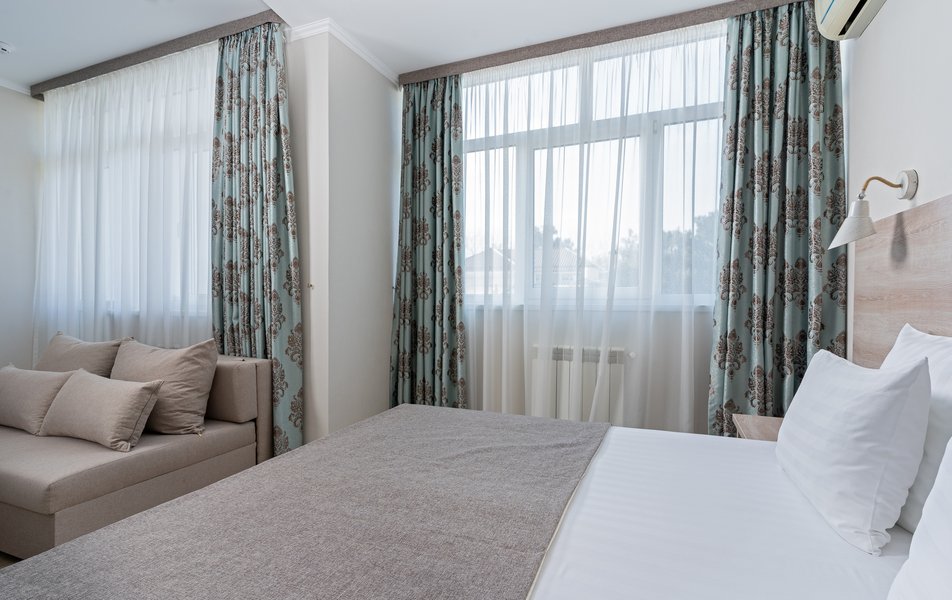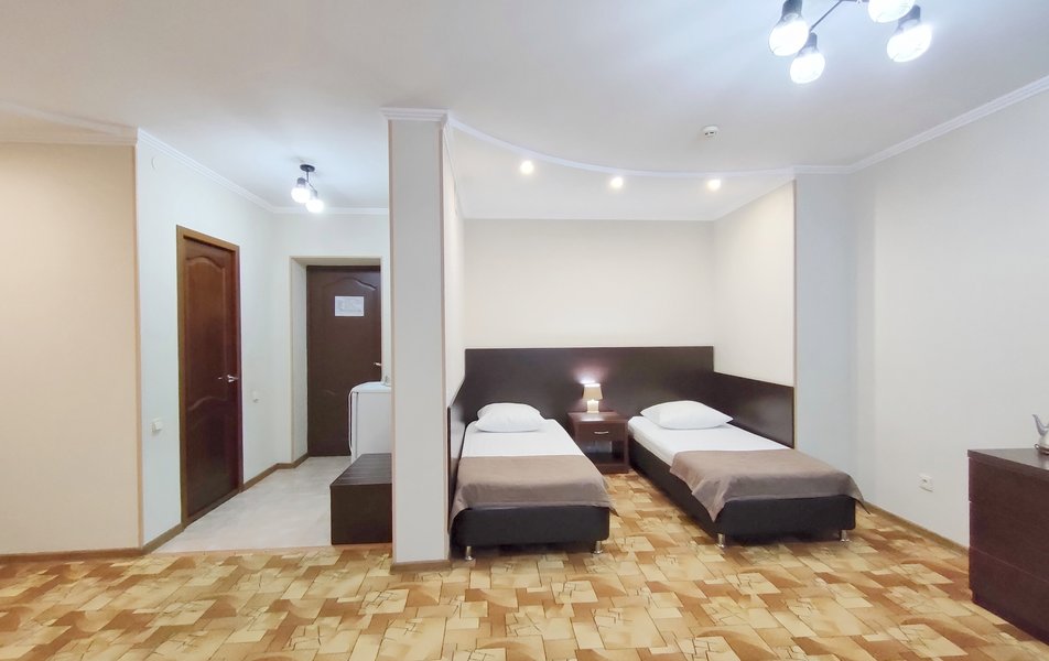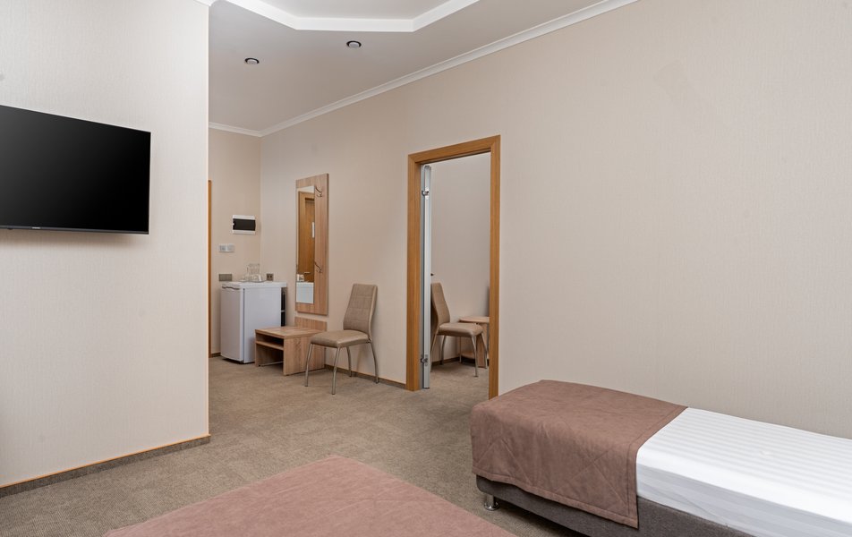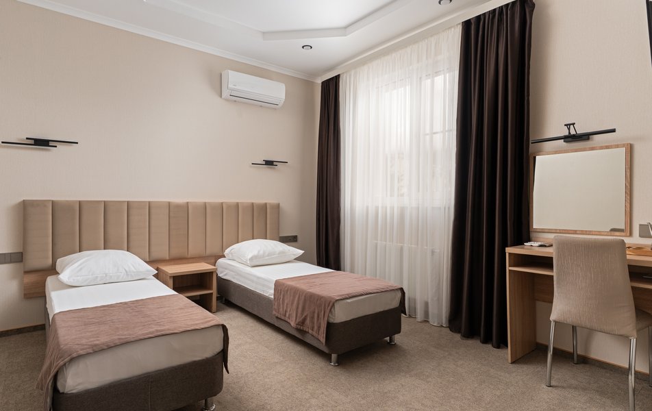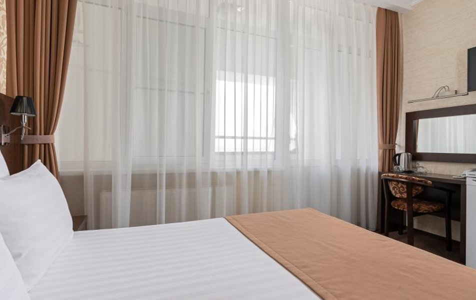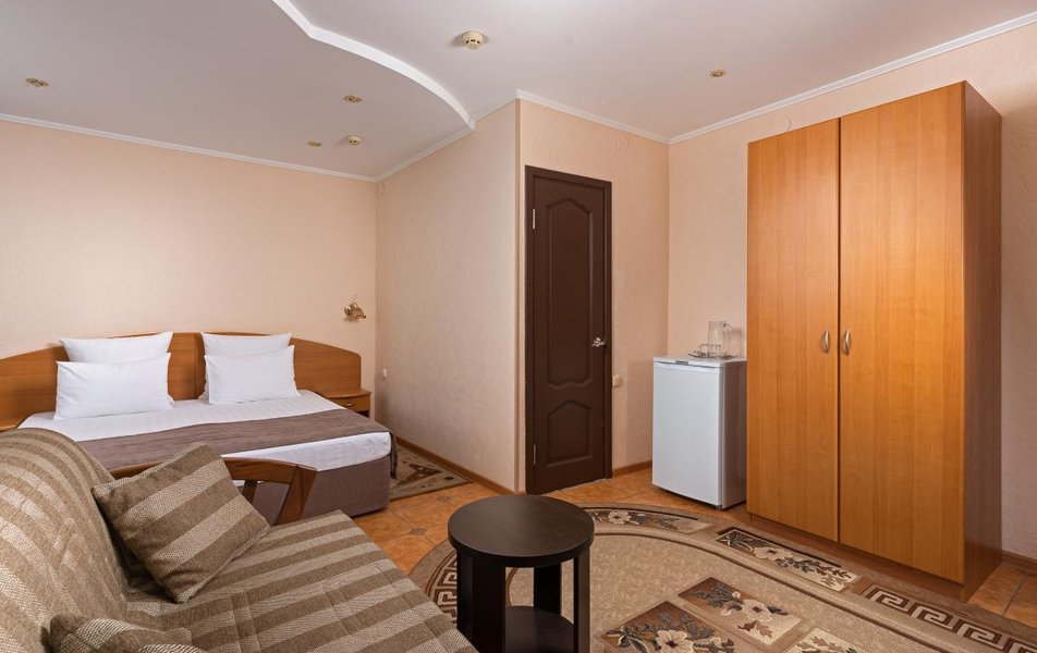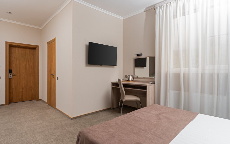Екатерина Сафиуллина Отдыхали семьёй за свой счёт не по путевке. Что хочется сказать из плюсов первое это бассейн и локация. До моря 1 мин. Все остальное сплошной минус. Начнем с номера: окно открыть невозможно, запах канализации невозможный. Полотенец пляжных нет. На телевизоре один канал. Сантехника в ванной о боже ( воду нужно открывать очень тихо, иначе вас так окатит. Жуть. Далее переходим к питанию. Да шведский стол, нооооо! Каждый день на протяжении двух недель: макароны,гречка,рис и тефтели, курица жареная. Компот и морс один и тот же. Ни пюре картофельного, не картошки по деревенски. Один раз были вареники с картошкой если это можно назвать так. Сплошная каша теста в перемешку с картошкой. Это треш. Ни выпечки, ни сладостей, на ужин нет кисломолочной продукции от слова совсем. Обед и ужин одно и то же каждый день в течении 14 дней. За исключением того,что в обед супы. Да оно вкусно, нооооо одно и тоже 14 дней три раза в день. Это через 4 дня до тошноты. Хочется покушать отбивные, пельмени, манты. Выпить чай с пироженкой. Ноо к чаю печенье с начинкой , разрезанное на две или три части каждая Стоимость не малая, мы за 12 дней отдали 270 тысяч на 4 человека. Не рекомендую от слова совсем данный отель за такие деньги. Если за вас оплачивает предприятие, то да. Не обидно будет. Но за свой счёт ни в коем случае. Социальная столовая причем очень социальная за 270 тысяч и запах канализации это ужасно. Вечером ходили в 5 ку и покупали ночной дожор))) . То есть отдай такие деньги и ещё покупай еду. Пансионат больше подходит, чем отель к данному заведению. За стенкой из же столовая, но платная тут вуаля. Разнообразие сразу заметно,ооо платите деньги к тому, что отдали. Вам там и чизкейк и фри детям и соки на выбор. А не морс из вишни 14 дней. Будьте внимательны по брони данного "отеля" .