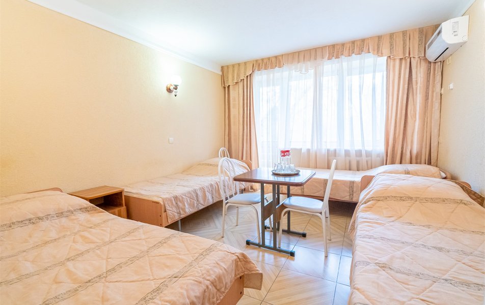 хорошее место для отдыха как всей семьей, так и просто парой. Есть столовая на территории, где хорошо кормят. Пансионат расположен в центре поселка, до моря 5 минут пешком. Есть игровые зоны для детей. 2 жилых корпуса, окна одного из них выходят на горы.