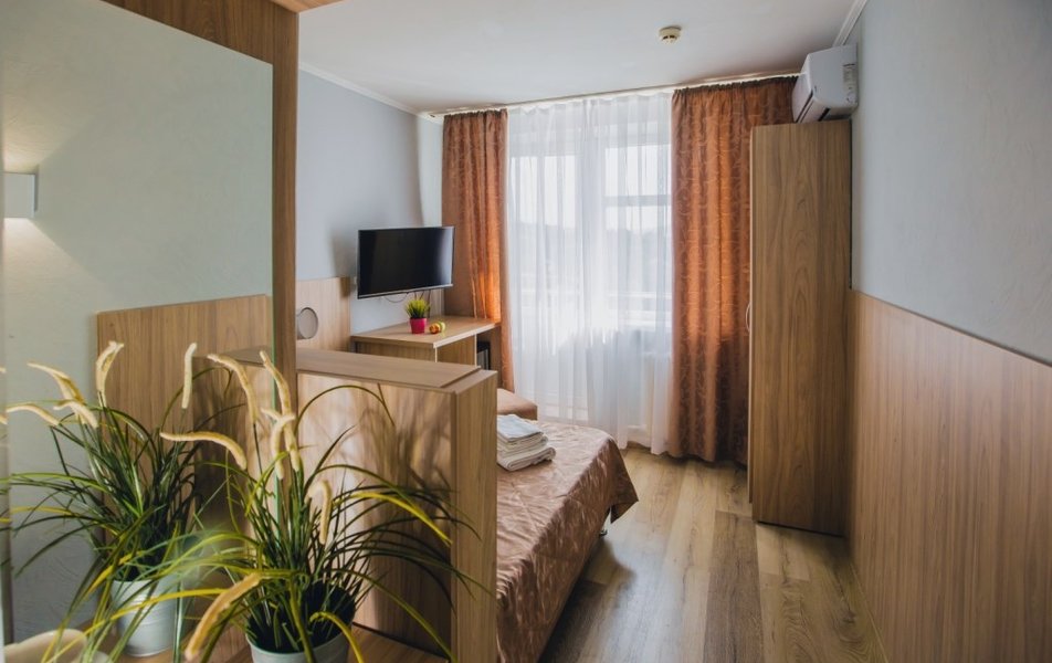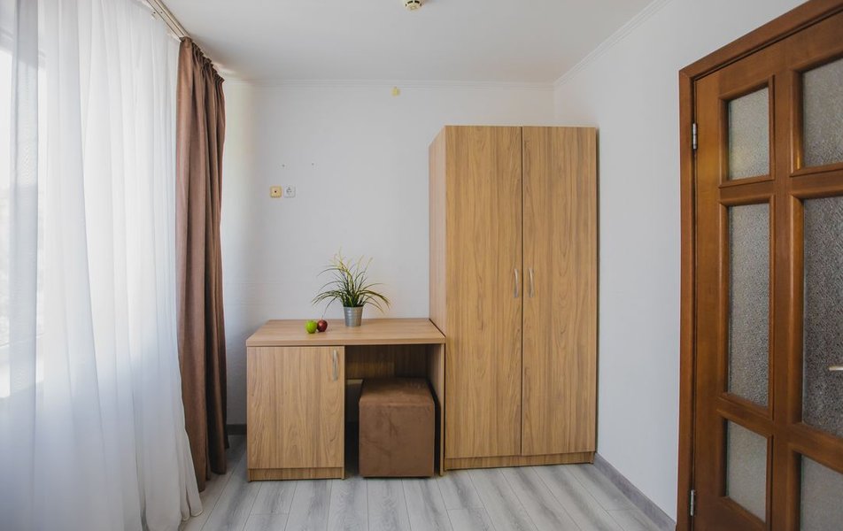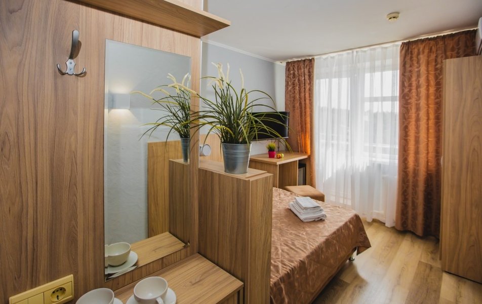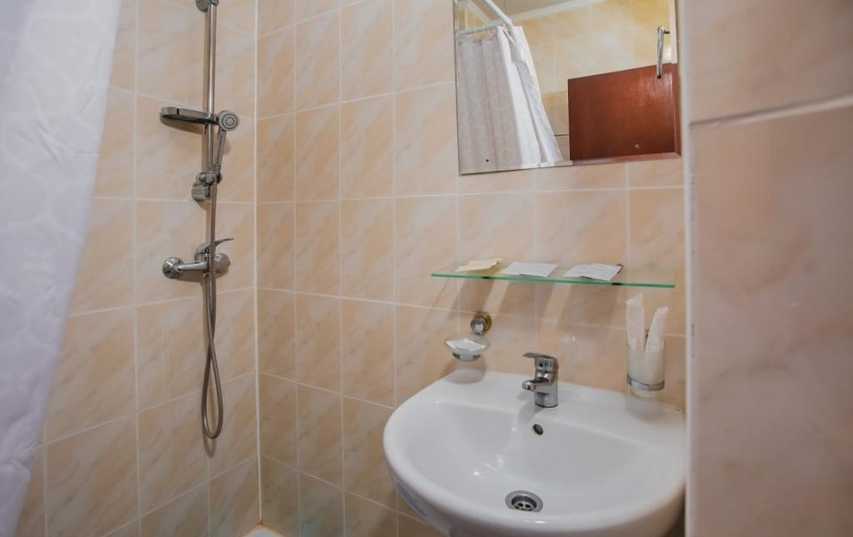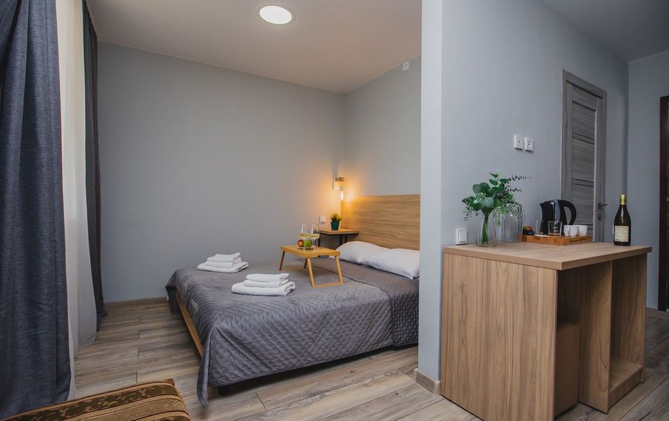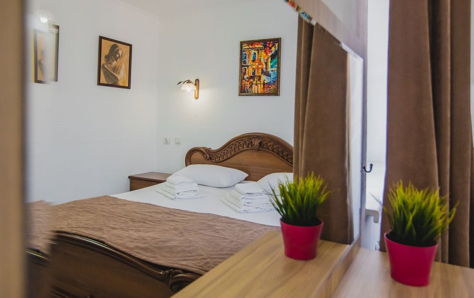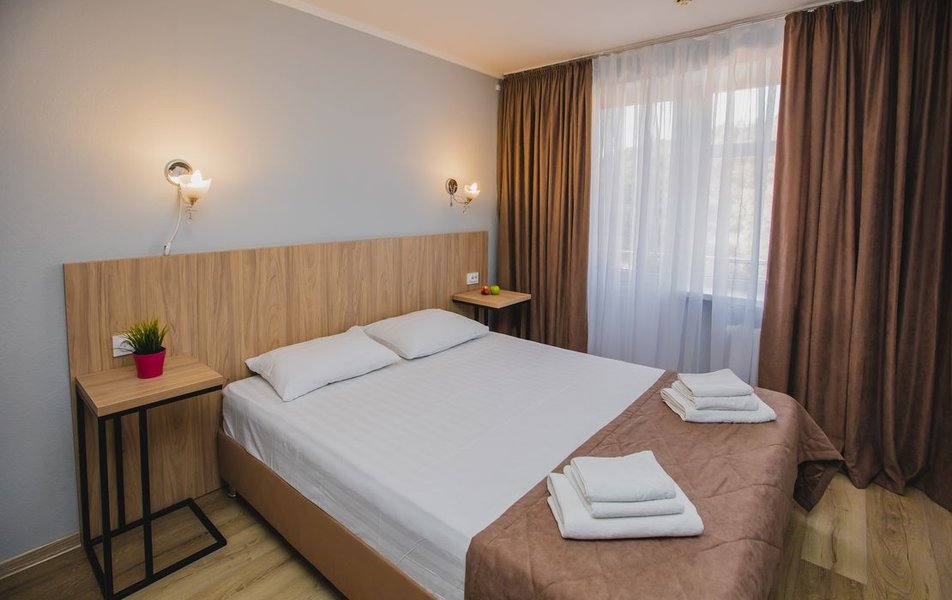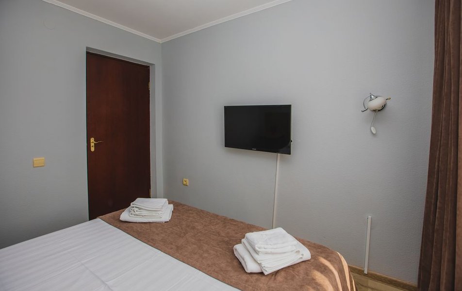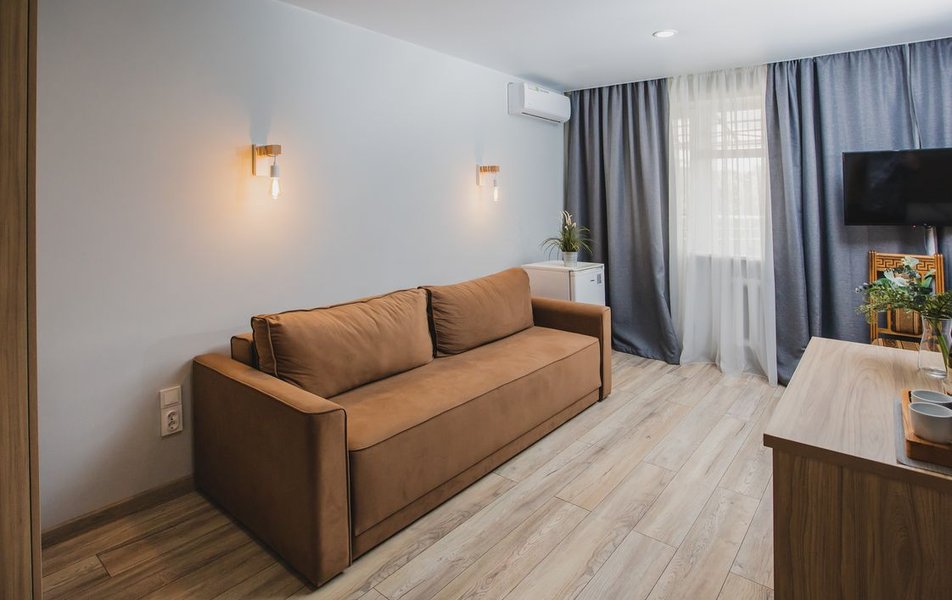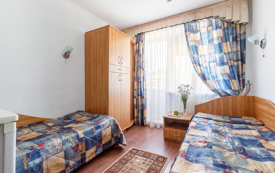 Люкс 2-местный 2-комнатный (вид на горы) Количество комнат: 2-комнатный Тип номера: Люкс Дополнительное место: раскладной диван Вид из номера: на горы Кол-во доп. мест: 2 Кол-во основных мест: 2 Площадь (кв. м): 28 Мебель: вешалка, диван раскладной, зеркало, кресло, кровать двуспальная, прикроватные тумбочки, стол, шкаф Оборудование: сплит-система, телевизор, холодильник, чайный набор посуды, электрочайник Санузел: с душем, туалетные принадлежности, фен Сервис: смена полотенец, смена постельного белья, уборка номера