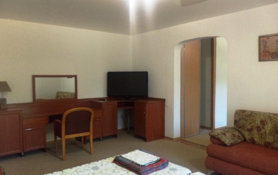 Стандартный 2-местный 2-комнатный Количество комнат: 2-комнатный Тип номера: Стандартный Дополнительное место: диван Кол-во доп. мест: 2 Кол-во основных мест: 2 Площадь (кв. м): 30 Мебель: вешалка, диван раскладной, зеркало, кровать двуспальная, прикроватные тумбочки, стол, стул, шкаф Оборудование: сплит-система, телевизор, холодильник Санузел: с ванной Сервис: Wi-Fi бесплатно, смена полотенец, смена постельного белья, уборка номера