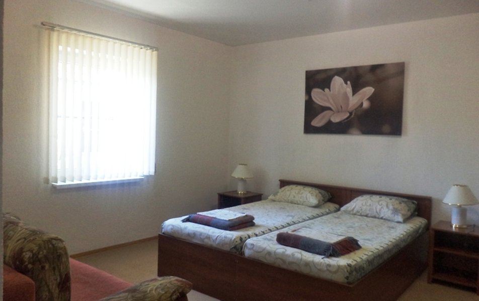 Стандартный 2-местный Количество комнат: 1-комнатный Тип номера: Стандартный Дополнительное место: раскладушка Кол-во доп. мест: 1 Кол-во основных мест: 2 Площадь (кв. м): 15 Мебель: вешалка, зеркало, кровати односпальные: 2, прикроватные тумбочки, стол, стулья, шкаф Оборудование: сплит-система, телевизор, холодильник Санузел: с ванной Сервис: Wi-Fi бесплатно, смена полотенец, смена постельного белья, уборка номера