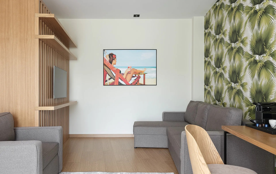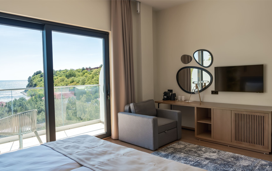 Комфорт 3-местный (вид на море) Количество комнат: 1-комнатный Тип номера: Комфорт Дополнительное место: диван Вид из номера: на море Кол-во доп. мест: 1 Кол-во основных мест: 2 Площадь (кв. м): 25 Мебель: вешалка, зеркало, кровати односпальные /одна двуспальная кровать, прикроватные тумбочки, стол, стул, шкаф Оборудование: мини-холодильник, сейф, система общего кондиционирования, телевизор, чайная станция Санузел: с душем, тапочки, туалетные принадлежности, фен, халат Сервис: Wi-Fi бесплатно, смена полотенец, смена постельного белья, уборка номера