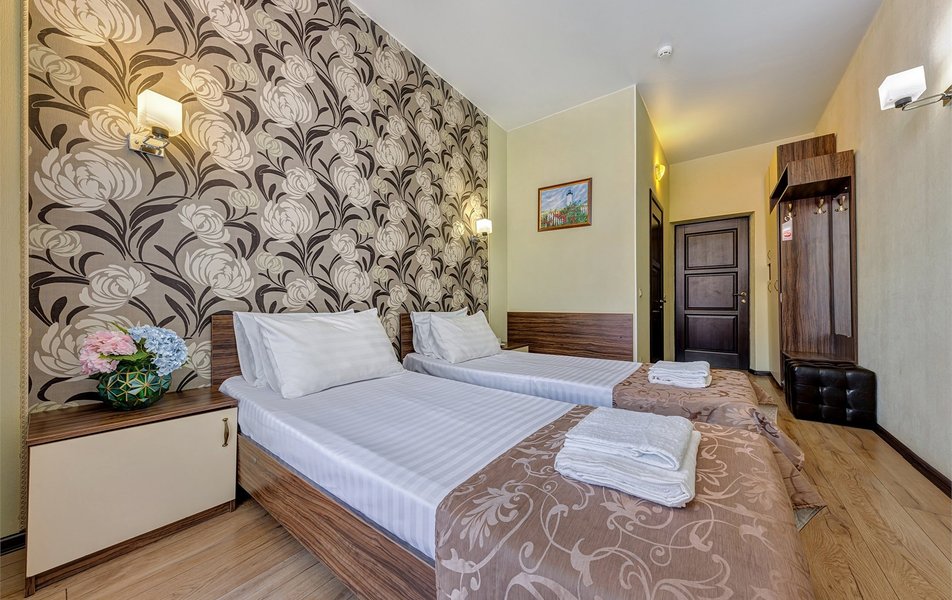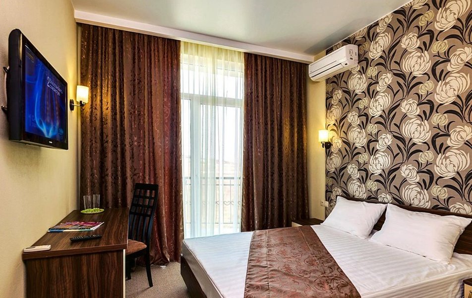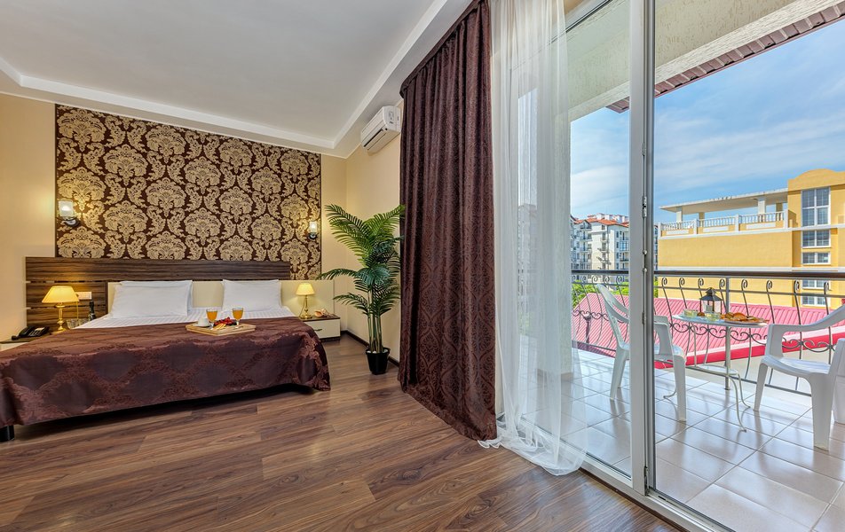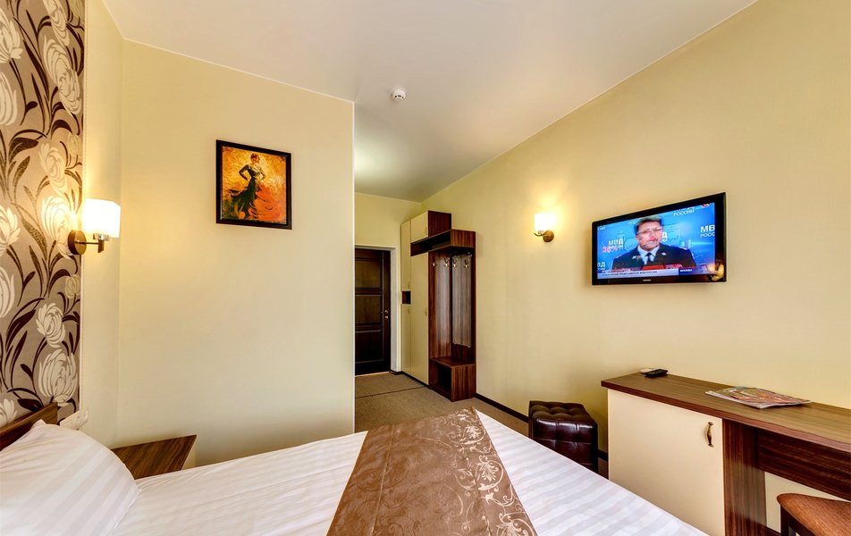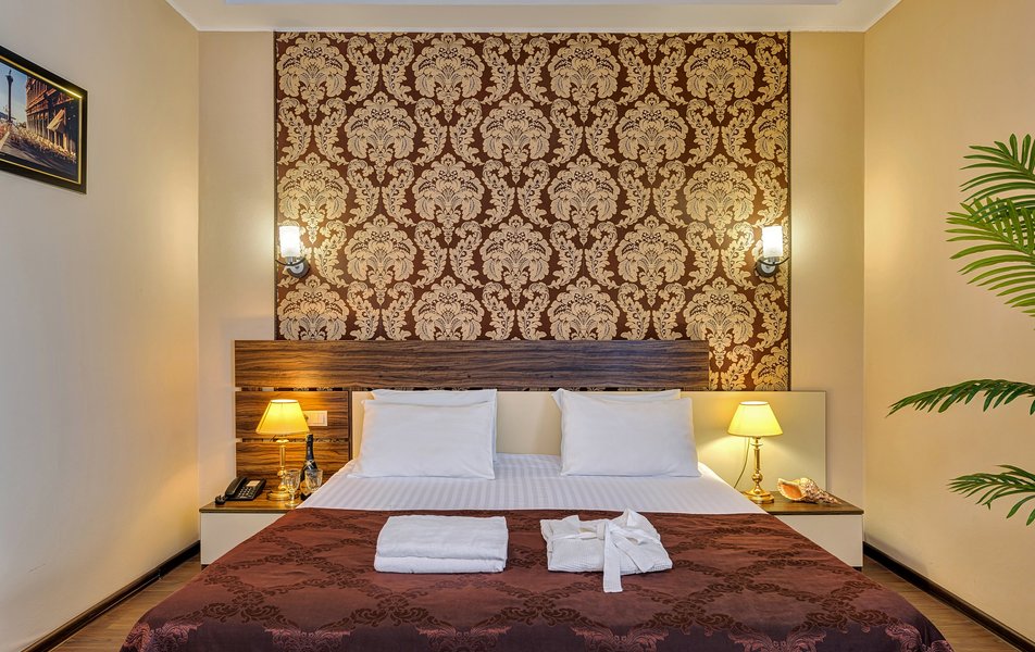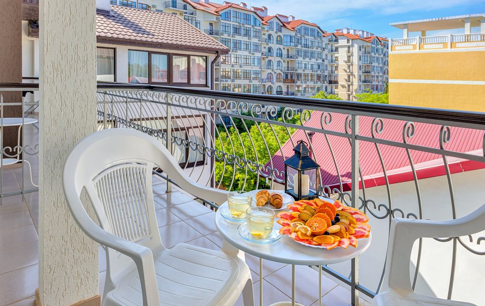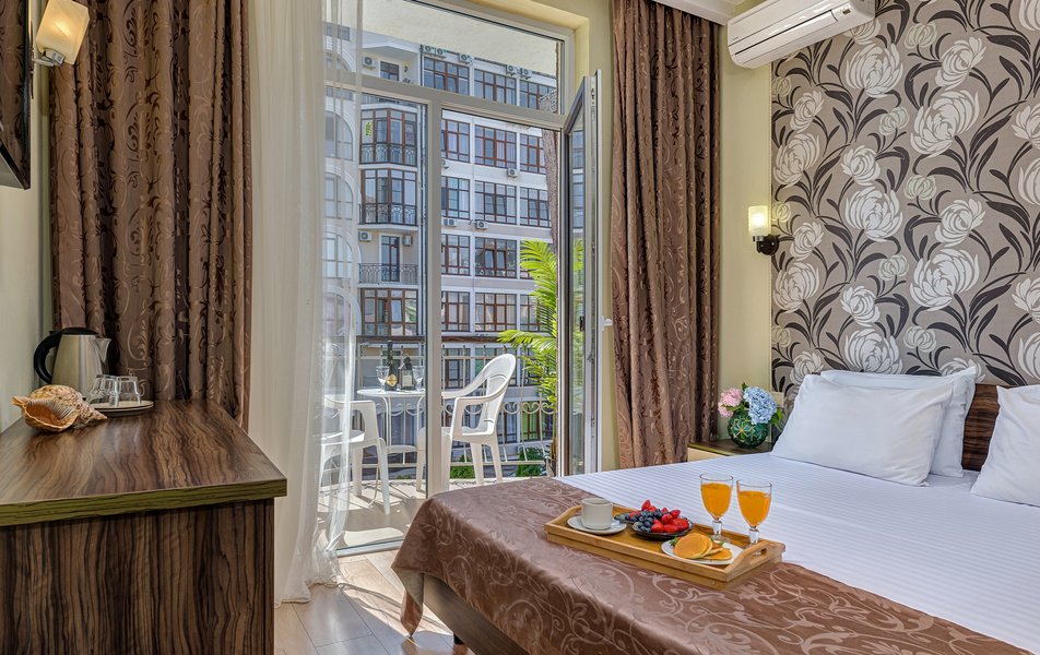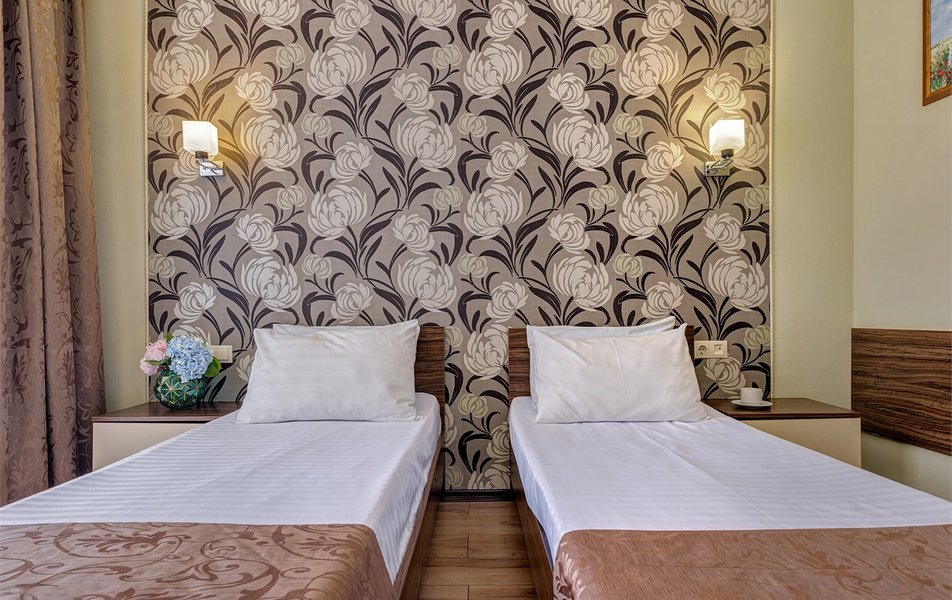 Полулюкс 3-местный Количество комнат: 1-комнатный Тип номера: Полулюкс Дополнительное место: еврораскладушка Кол-во доп. мест: 1 Кол-во основных мест: 3 Площадь (кв. м): 26 Балкон: с мебелью Мебель: вешалка, зеркало, кровать двуспальная: 160х200 см, кровать односпальная, прикроватные тумбочки, стол, стулья, шкаф Оборудование: мини-холодильник, набор посуды, сплит-система, телевизор ЖК, телефон Санузел: с душем, туалетные принадлежности Сервис: Wi-Fi бесплатно, room-сервис, смена полотенец, смена постельного белья, уборка номера