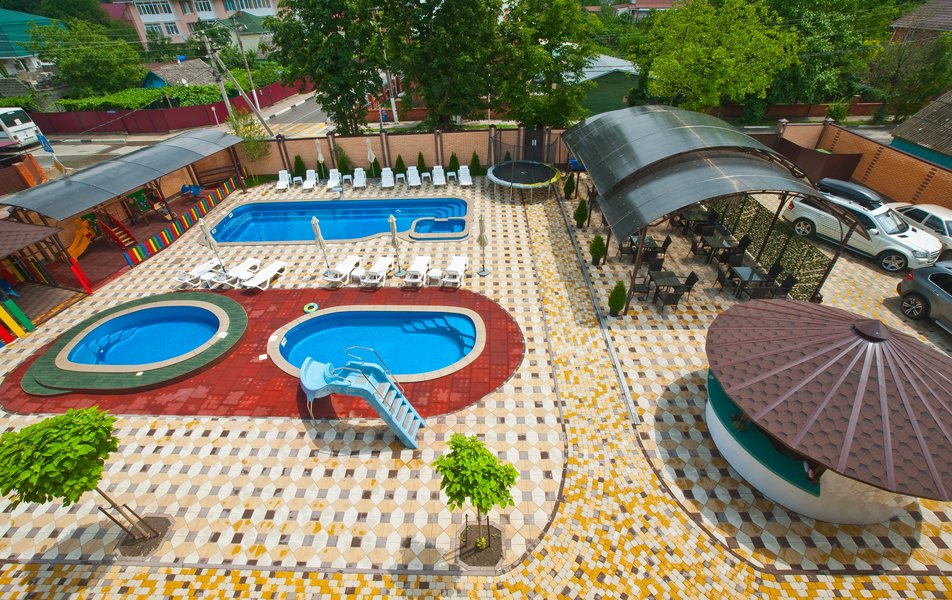 В сей «отель» мы приехали с семьей и друзьями! В ожидании безудержного веселья и анимации для детей, живой музыки вечерами ( повелись на инстаграмм). В итоге, что мы получили: 1) Нас не пустили даже на территорию с пятью уставшими с дороги детьми, так как мы приехали на 4 часа раньше. На вопрос почему, нам ответили, что парковочные места ограничены- погуляйте где нибудь. Хорошо! Но на территорию без машин нельзя было пустить отдохнуть? 2) Номера с « бумажными» стенами, слышимость суперская. 3) На просьбу вечером добавить музыку ( у них колонка возле бассейна) нам отказали: громкость и репертуар только по их усмотрению. 4) Анимация для детей была тихонько и скучновато. 5) Еда так себе, когда платишь 15000 в сутки я считаю еда должна быть более разнообразной. ( не шведский стол). 6) Лица на ресепшене каменные. 7) Владелец, сложилось такое впечатление, что постоянно следит видеонаблюдение. 8) Самое ужасное Бассейны ровно в 21:00 накрываются тентами. Батут тоже по расписанию. Короче Спокойной ночи, малыши и баиньки в 9 ! 9) Живой музыки не было, сказали только в воскресенье, пообещали кино на полотне - и его мы не заслужили! 10) На вопрос хозяину Почему все так? Он ответил Ну вот как то так! Не нравится, уезжайте! Конечно же мы на утро свалили от туда быстрее, благо деньги нам вернули еще в день приезда. И 11-е) У нас вопрос к владельцу! Почему вы так не любите людей и почему не уважаете своих гостей?????