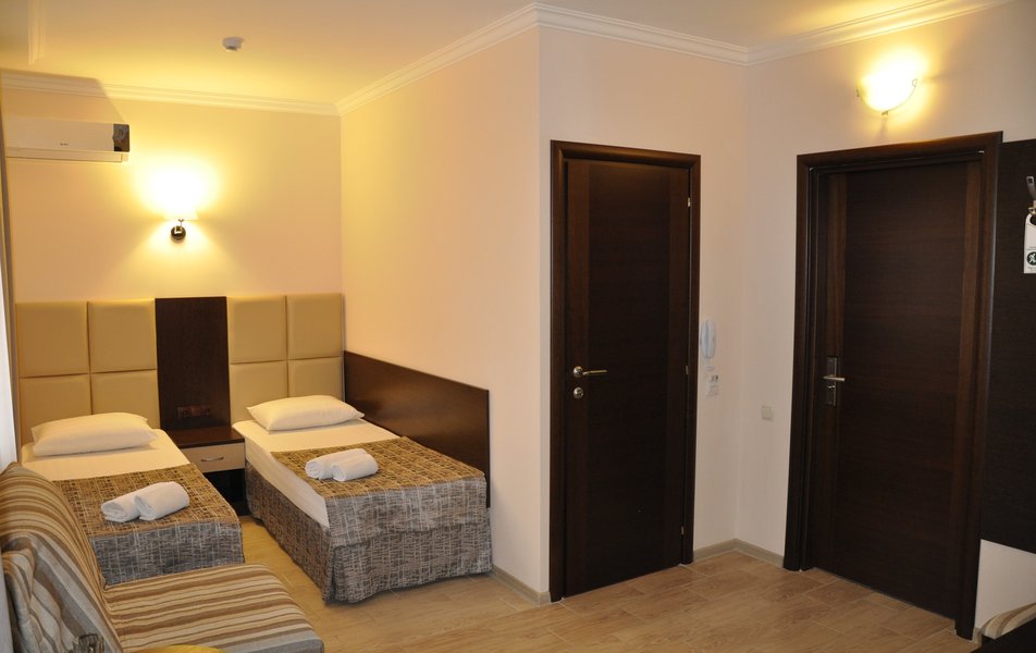 Р-разочарование !!! Номер неоправданно дорогой. Удаленность от моря приличная, несмотря на то, что есть трансфер, имеющий расписание, от которого ты полностью зависишь. Расстояние до центра , где есть цивилизация 2 км. Заселились без проблем. Самое интересное началось при выезде… После сдачи ключей администратору , она осмотрела наш номер ( без нашего присутствия ), буквально через несколько минут горничная стала требовать с нас пропавшую тарелку…, подключила администрацию , выдвинулись версии , что мы её разбили, прихватили с собой и тд… По итогу, тарелка никуда не пропадала , администратор отнесла её в другой номер, где отдыхающим не хватало посуды. Настроение испорчено…, но НИКТО даже НЕ ИЗВИНИЛСЯ!!!! Дальше-больше… На ресепшене нам показали стакан со сколом (якобы из нашего номера), за который нам пришлось заплатить. Все бы ничего , но мы эти стаканы в руки не брали , собственно, как и тарелки, т.к питались за пределами отеля. Вроде бы мелочь, но неприятно. С таким отношением к гостям сталкиваемся впервые!!! Остановиться в данном месте больше желания не возникнет!!!